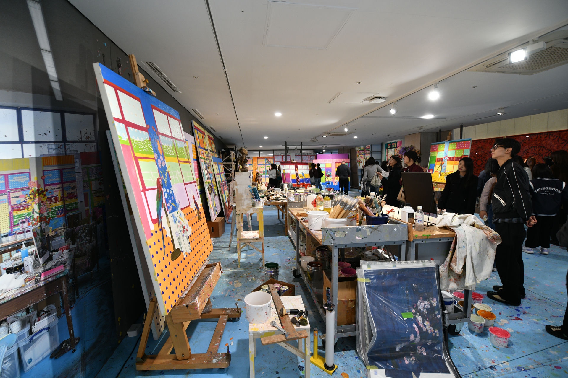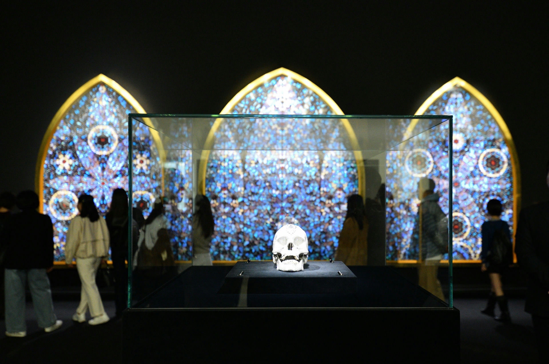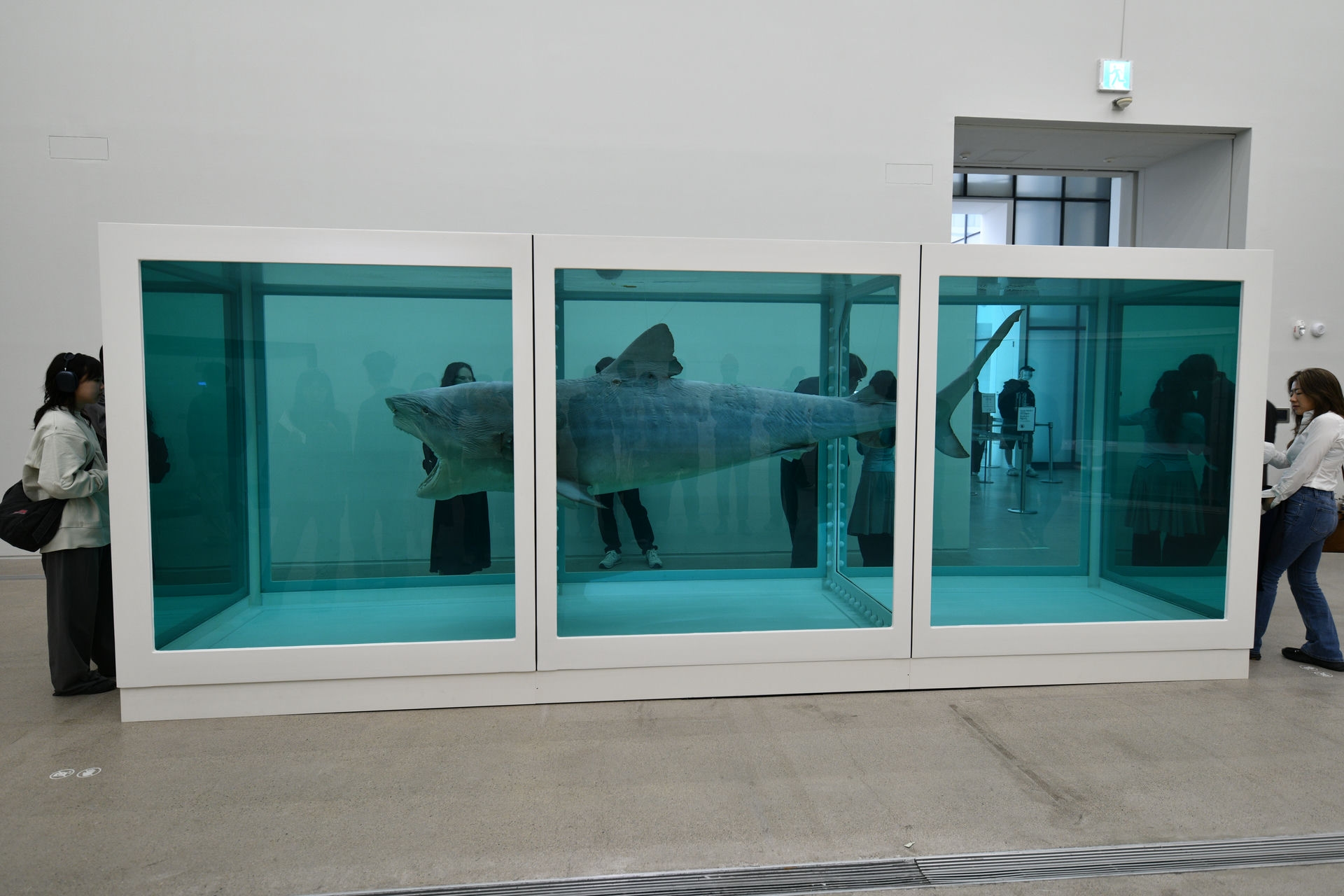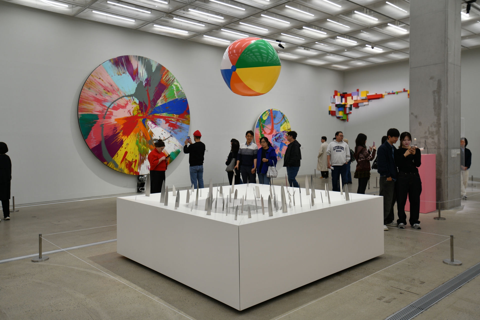 News 국립현대미술관 서울 전시, 데이미언 허스트: 진실은 없어 그러나 모든 것은 가능하지 Exhibition 2026-03-29 Keywords 국립현대미술관서울 데이미언허스트 진실은없어그러나모든것은가능하지 삶과죽음 자화상 우리는모두죽는다 스핀페인팅 사랑의취약성 천년 죽음의공포 살아있는자의마음속죽음의불가능성 수조상어 침묵의사치 영생욕망 초월적믿음 과학맹신 수집과통제 욕망 알약캐비닛 집착 강박 신의사랑을위하여 욕망과무상함 나비날개 영혼과부활 죽음의역설 약국레스토랑 예술처방 리버스튜디오 작업실 리버페인팅 국립현대미술관 서울에서 진행 중인 『데이미언 허스트: 진실은 없어 그러나 모든 것은 가능하지(Damien Hirst: Nothing Is True But Everything Is Possible)』 전시는 깊은 영감의 단초가 되어줄 것이다. 포름알데히드 용액 수조에 잠긴 거대한 상어와 다이아몬드로 빛나는 인간 두개골로 유명한 스타 작가 데이미언 허스트의 깊은 내면 세계를 탐험할 수 있는 전시다. 그는 삶과 죽음이 결코 분리될 수 없음을 깊이 인식하며, 죽음을 단순히 무서운 존재가 아닌, 오히려 삶을 기념하는 독특하고 창의적인 방식으로 표현한다. 이번 전시는 그의 작업이 전시장 내부뿐 아니라 과거에 머무는 한계를 넘어, 유니콘 조각 등 대형 작품들이 서울박스 공간을 가득 메우고, 작업실에서 제작 중인 작품까지 생생하게 공개되어 그 예술적 여정의 현재와 미래를 고스란히 보여준다. 1. 모든 질문에는 의심이 따른다 데이미언 허스트의 20대 작품들로 구성된 첫 번째 섹션에서 그의 중요한 예술 개념과 형성 과정을 확인할 수 있다. 20대 초반부터 세상의 주목을 받은 그는 기존 제도와 고정관념에 도전하며 자신만의 독창적인 예술 세계를 꾸준히 구축해왔다. 1965년 브리스틀에서 태어나 리즈에서 자란 그는, 반항심 가득한 시기에 드로잉이라는 표현의 자유를 유일한 탈출구로 삼았다. 그러던 중 16세 때 미생물학 공부하던 친구 따라 시체 안치소에 갔다가, 잘린 시신 머리 옆에 두고 몰래 사진 찍은 경험은 이후 그의 작업에 죽음에 대한 관심으로 드러나게 된다.[자화상, 1987] 골드스미스 대학교 시절 만든 작품으로, 작가가 자신의 셔츠에 ‘In This Dream’이라는 자수와 서명을 새겨, 철제 옷걸이에 걸어 벽에 설치했다. 이 시기 그는 다양한 조형 실험을 통해 예술적 정체성을 모색했다. [죽은자의 머리와 함께, 1991] 작가는 첫 개인전에서 10년 전 찍은 사진을 소재로 한 작품을 선보였다.[우리는 모두는 죽는다, 1985] 그는 회화에 대한 무력감을 콜라주라는 새로운 표현 방식으로 극복했다. 런던으로 이사한 후, 옆집 노인의 실종을 목격하고는 노인의 빈 집에서 모은 오브제를 콜라주 작품에 사용했고, 이를 통해 죽음으로 향하는 긴 여정을 상징적으로 담아냈다. 전시장 곳곳에서 작품을 감상하던 중, 갑작스러운 ‘펑’ 소리가 울려 퍼져 관람객 모두를 놀라게 했다. 소리가 난 전시장 중앙에 위치한 <사랑의 취약성(2000)> 작품 주위로 관람객들이 자연스럽게 모여들었다. 바로 전까지 공중에 떠 있던 풍선이 아래로 떨어져 날카로운 칼날에 닿아 터진 순간이었다. 그 후 긴 정적이 흘렀고, 작은 기계음과 함께 풍선은 다시 하늘로 떠올라 일상으로 돌아갔다. 작가는 이 퍼포먼스를 통해 삶과 죽음에 맞서는 인간의 복합적인 감정을 관람객이 직접 체험하게 하고, 그 감정을 행동으로 옮기도록 유도했다.2. 우리는 시간 속에 산다 두 번째 세션에는 죽음의 공포와 삶과 죽음의 순환을 강렬하게 시각화한 데이미언 허스트의 대형 설치 작품들이 전시되어 있다. 그는 런던으로 이주해 본격적으로 미술을 공부하기 시작했으며, 골드스미스 대학교 재학 시절인 23세에 직접 기획한 그룹전 <프리즈(1988)>를 통해 대중의 주목을 받았다. 1990년대 초 발표한 <천 년>과 <살아 있는 자의 마음속 죽음의 물리적 불가능성>은 금기에 도전하는 파격적인 소재로, 발표 당시부터 큰 화제를 모은 초기 대표작들이다.인간은 본능적으로 죽음을 두려워하지만, 정작 자신의 죽음에 대해서는 실감하지 못한 채 하루하루를 살아간다. 이 모순적인 심리 속에서 관객은 거대한 유리 구조물 너머로 죽음의 냉혹한 물리적 실체와 마주하며, 공포와 혐오, 호기심과 불편함이 뒤섞인 복합적인 감정을 경험하게 된다. 그는 유리 구조물을 통해 관객이 작품 속을 들여다볼 수 있게 하면서 동시에 직접 개입하지 못하도록 연출한다. 이러한 물리적 경계는 죽음이라는 피할 수 없는 운명을 마주하며 살아가는 인간의 냉정한 현실을 상징적으로 보여준다.[천 년, 1990] 생명이 시작되고 생존을 향한 본능이 반복되는 가운데, 무작위적이며 냉혹한 죽음이 계속되는 자연의 엄혹함을 보여준다. 잘린 소머리와 파리 유충, 살충기로 구성된 이 설치물은 유리장 안에서 부화한 파리들이 흐르는 피를 찾아 이동하지만, 살충기에 걸리면 곧바로 죽음을 맞이하도록 설계되어 있다.[살아있는 자의 마음 속 죽음의 불가능성, 1991] 포름알데히드 용액 수조에 거대한 상어를 넣은 설치미술로, 관객에게 죽음의 공포를 생생히 전하면서도 인간이 죽음을 실감하지 못하는 내면의 역설을 드러낸 