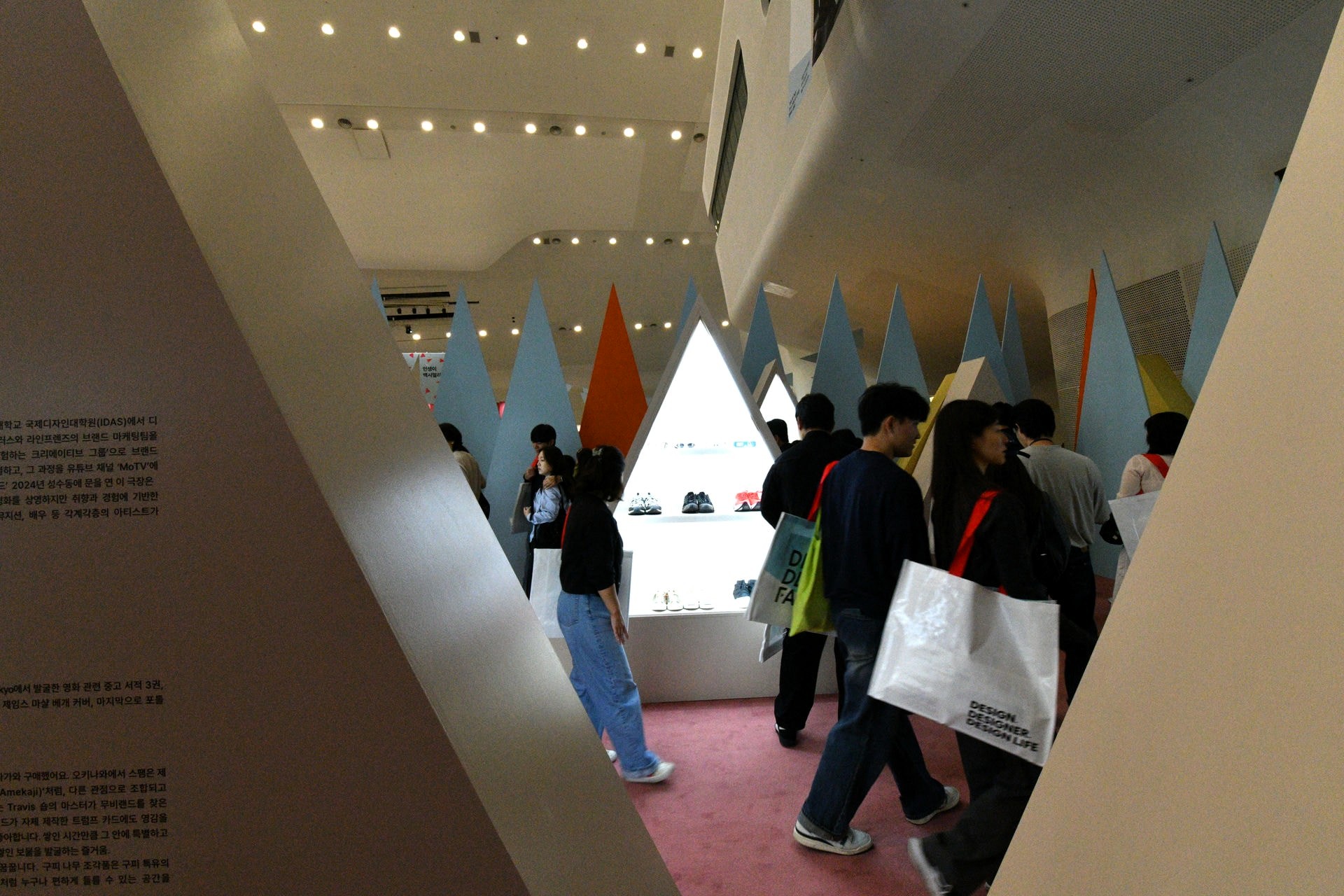 2025 서울디자인위크(Seoul Design Week 2025) 대한민국 최대 디자인 축제인 서울디자인위크가 10월 15일부터 26일까지 DDP(동대문디자인플라자)에서 개최된다. 2014년 DDP 개관과 함께 시작하여 올해로 12회째를 맞이하는 서울디자인위크는 전시, 콘퍼런스, 마켓, 시민 참여 프로그램이 한데 어우러진 도심형 축제이다. 올해의 주제는 ‘디자인, 디자이너, 디자인라이프(Design, Designer, Design Life)’로, 디자이너를 중심으로 디자인이 개인의 삶, 산업, 도시 문화 전반에 어떤 영향을 미치고 어떤 가능성을 만들어 내는지 조명한다. Keywords 트렌드템퍼리쳐 TrendTemperature 2025서울디자인위크 SeoulDesignWeek2025 DDP 동대문디자인플라자 디자인 디자이너 디자인라이프 Design Designer DesignLife DDP디자인페어 영디자이너특별관 시팅서울 어펜딕스 취향 새로운실험의장 주제관 29CM 라이프스타일브랜드 맥시멀리스트 쉼예찬론자 고요한미식가 낭만적실용주의자 경계인에서 향인으로 이간수문전시장 디자인스튜디오 100개의의자 2025 서울디자인위크(Seoul Design Week 2025)는 DDP디자인페어, 영디자이너 특별관 전시, 서울디자인위크 컨퍼런스 등 핵심 프로그램을 통해 디자이너들이 함께 만드는 국제적 디자인 플랫폼으로 도약하고자 한다. 또한 디자인마켓, 서울디자인스폿, 시팅서울, 어펜딕스 등 다채로운 프로그램을 선보이며 시민들의 적극적인 참여를 이끌어내고 있다. 지난해 서울디자인위크가 역대 최다인 133만 명의 방문객을 기록하며 그 규모와 파급력을 입증한 것과 같이, 올해 역시 뜨거운 열기를 이어갔다. 메인 전시장에는 한 시간 가량 긴 줄을 서서 입장해야 했을 정도로 많은 인파가 몰려 축제의 높은 인기를 다시금 실감하게 했다.DDP디자인페어: 물건과 사람, 사람에서 삶까지서울디자인위크의 메인 전시인 올해 <DDP디자인페어>는 ‘취향’을 주제로 새로운 실험의 장을 펼쳤다. 이번 페어는 패션 및 라이프스타일 플랫폼 29CM와 협업하여 디자인 취향이 확실한 라이프스타일 브랜드 70개가 참여해 풍성한 볼거리를 선사했다. 입구에 들어서서 가장 먼저 마주하는 주제관에서는 서울의 디자이너 10명이 각자의 취향이 담긴 물건들로 자신만의 디자인 라이프를 선보였다. 디자이너들의 독창적인 취향이 깃든 브랜드와 제품들은 피라미드 형태의 공간을 채워 방문객들을 맞이했다.다음으로 마주하는 곳은 관람객의 다양한 삶의 방식을 '맥시멀리스트, 쉼 예찬론자, 고요한 미식가, 낭만적 실용주의자'로 존을 나누어, 각자의 취향에 따라 브랜드 전시관을 둘러볼 수 있도록 구성했다. 각 공간에서는 트렌드와 실험, 실용성을 아우르는 다채로운 상품들을 소개하고, 이를 통해 관람객들은 일상과 연결된 디자인의 가치를 폭넓게 경험하게 했다. 이는 단순히 제품을 소비하는 것을 넘어, 자신의 취향을 드러내고 주체적으로 선택하는 경험을 제공한다는 점에서 전시의 차별성이 느껴졌다. ‘경계인에서 취향인으로’라는 서사로 기획된 이번 전시는 나이, 계절, 기분처럼 끊임없이 변하는 취향의 다채로운 결을 탐구하며, 관람객이 자신의 취향을 발견하고 정의할 뿐만 아니라 스스로를 깊이 이해하는 소중한 계기를 선사한다.‘인생이 맥시멀리스트(The Maximalist)’ 존은 개성과 컬러풀한 존재감을 마음껏 드러내고자 하는 이들을 위한 공간이다. 이곳은 화려하고 아기자기한 분위기 속에서 자신만의 다채로운 취향을 자유롭게 표현할 수 있도록 했다. 예를 들어, 프랑스 커트러리 브랜드 사브르(Sabre)는 프랑스에서만 경험할 수 있는 ‘커트러리 커스텀 서비스’를 통해 방문객들이 나만의 취향을 담은 커트러리를 직접 제작하도록 도왔다. 또한, 예술가들이 디자인한 라이프스타일 상품을 선보인 뚜누(Tounon)는 아티스트가 그린 귀여운 그림을 고르고 조합하여 ‘나만의 티셔츠’를 만드는 특별한 체험을 제공하며 큰 호응을 얻었다.‘고요한 미식가(The Serene Epicureans)’ 존은 매일의 집밥과 차분한 식문화를 즐기는 이들을 위한 영역이다. 이곳에서는 절제된 분위기 속에서 제철 음식, 집밥, 정성 어린 살림을 강조하며, ‘먹는 데 진심’인 라이프스타일을 경험할 수 있도록 했다. 다음으로 이어지는 ‘쉼 예찬론자(The Rest Devotee)’ 존은 쉼과 충전을 중시하는 관람객들을 위해 마련된 공간이다. 이 존에서는 휴식, 슬로우 라이프, 그리고 식집사 라이프스타일을 반영한 브랜드들이 모여 여유로운 일상을 제안했다. 일례로 티더블유비(TWB)는 ‘매일 쓰는 거니까 좋은 것을 쓰고 싶어’라는 모토를 바탕으로 클래식한 디자인의 프리미엄 타올을 선보였다. TWB는 원소재를 활용하여 고급스럽고 차분한 분위기를 공간에 연출하였다. 또한, 루메나(Lumena)는 귀여움과 다채로운 컬러감이 돋보이는 휴대용 조명으로 부스를 꾸며 방문객들의 이목을 집중시켰다.‘낭만적 실용주의자(The Romantic Pragmatist)’ 존은 실용적인 소비를 지향하는 동시에 자신만의 취향에 과감히 투자하는 소비자들의 세계를 조명한다. 이곳은 작은 물건에서도 만족을 찾는, 실용적이면서도 감각적인 이들을 위한 공간이다. 그 대표적인 예로, 독창적인 스타일과 감성을 지닌 스틸 오브제 퍼
