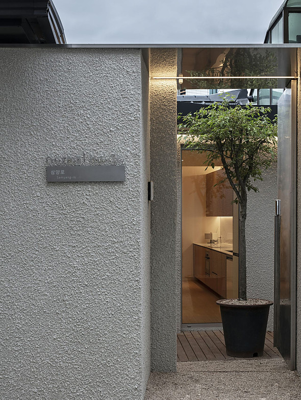 프로젝트 과수원 프로젝트ㅣ소재 건축사사무소 불온전함이 만들어낸 완결의 공간, 과수원 프로젝트 이 프로젝트는 결핍의 조건 속에서 시작되었다. 대지는 물류센터와 차량 흐름에 둘러싸여 있었고, 인적이 드물고 건조한 풍경만이 남아 있었다. 무엇보다도 제한된 예산 안에서 건물을 완성해야 했다. 설계는 무언가를 더하기보다 덜어내는 데 초점을 두었고, 비움을 통해 공간을 조직하고자 했다. Keywords 소재건축사사무소 SojeArchitects 과수원프로젝트 CaféGswProject 불온전함 완결의공간 담장 혼란을걸러내는건축적장치 건축 기능적최소단위 구조화 재료 날것그대로사용 결핍을건축적언어로응축 긴창 자연과느슨한시각적관계 배경의건축 자연풍경의일부 절제된건물 투명한경계 비워진마당 공백의공간 포용 변화에열려있는공간 건물은 도로를 따라 길게 놓였으며, 시선과 소음을 차단하는 담장이 둘러져 있다. 이 담장은 단순한 벽이 아니라, 혼란스러운 주변 맥락을 걸러내어 차분한 내부의 공백을 만들어내는 건축적 장치로 작동한다. 담장 너머 중심에는 비워진 마당이 자리하고, 두 동의 건물이 마당을 둘러싸는 배경으로 존재한다.건축은 기능적 최소 단위로 구조화되었다. 콘크리트 벽 위에는 노출된 철골 트러스가 얹혀 있고, 콘크리트·아연도금 강판·합판 등 경제적인 재료들이 날것 그대로 사용되었다. 이는 비용을 줄이기 위한 선택이자 동시에 프로젝트가 취하는 태도이기도 하다. 구조와 마감은 분리되지 않고 하나로 작동하며, 결핍을 하나의 건축적 언어로서 응축한다.내부는 긴 창을 통해 외부 풍경을 끌어들이며 자연과 느슨한 시각적 관계를 맺는다. 건축은 배경으로 물러서서 자연풍경인 하늘과 바람, 나무를 공간의 일부로 담아낸다. 절제된 건물과 투명한 경계, 그리고 비워진 마당은 사람과 자연, 시간이 개입할 수 있는 공백을 남긴다. 공백의 공간은 비워있음으로해서 그 안에 의도치 않게 펼쳐지는 무수히 많은 행위들을 포용한다. 이 프로젝트는 의도적으로 완성되지 않는 여지의 공간들을 남김으로 인해 사람들의 경험 속에서는 완결되는 공간이며, 언제나 변화에 열려 있는 공간이 되기를 바란다.불온전함이 만들어낸 완결의 공간, 과수원 프로젝트ㅣSOJE ARCHITECTS 2025위 치 | 경기도 이천시 마장면 Majang-myeon, Icheon-si, Gyeonggi-do대지면적 | 1692㎡건축면적 | 215.4㎡주요구조 | 철근콘크리트조, 경량철골조외 장 | 아연도골강판, 노출콘크리트내 장 | 오쿠매합판 위 투명오일스테인설 계 | 소재 건축사사무소 soje architects책임 건축가 | 이현식 Lee hyun sik글 | 소재 건축사사무소 soje architects사진 | 노경 Roh-kyoung