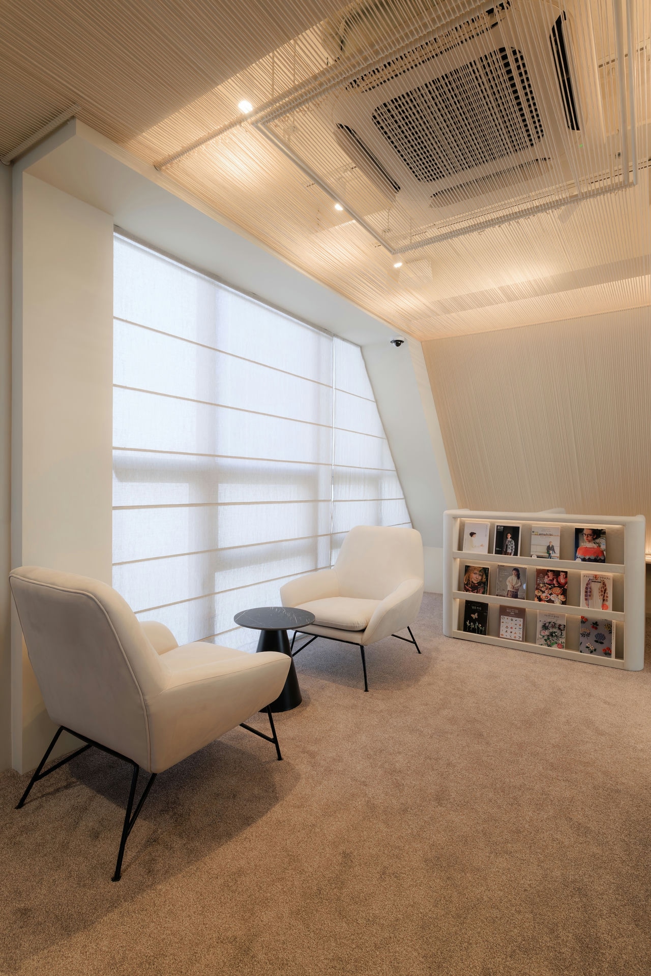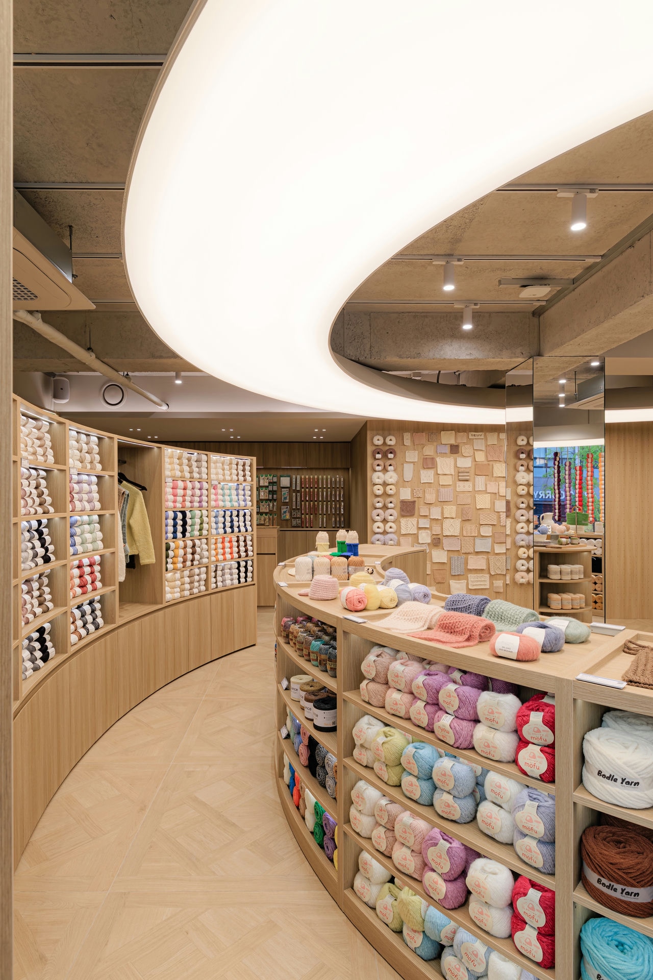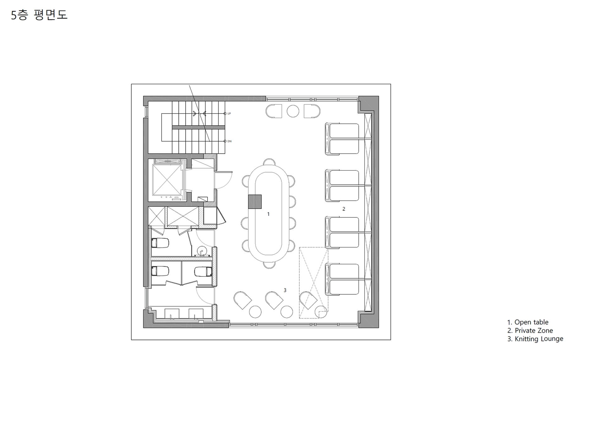 프로젝트 쎄비하우스ㅣ스튜디오캔 건축사사무소 쎄비하우스_성수에서 만나는 뜨개 문화 플랫폼 성수에 자리 잡은 7층 규모의 쎄비하우스는 온라인몰과 유튜브 채널을 통해 뜨개 문화를 확산시켜온 브랜드 쎄비가 오프라인으로 확장하며 만든, 뜨개를 체험하고 공유할 수 있는 복합문화공간이다. 기존에 오피스로 사용되던 건축물을 대수선한 공간으로, 1-2층은 자재스토어, 3층은 팝업갤러리와 디자인랩, 4-7층은 음악과 책, 커피와 간식을 즐기며 뜨개에 몰입할 수 있는 프라이빗 니팅라운지로 구성되었다. Keywords 스튜디오캔건축사사무소 STUDIOCANarchitects SEVYHAUS 쎄비하우스 성수 뜨개문화플랫폼 복합문화공간 팝업갤러리 디자인랩 니팅라운지 뜨개실색감 뜨개실촉감 경험공간 안락하고포근한감성 색감과촉감탐험 일상을잊는경험 비일상적인공간 부티크호텔테마 뮤직룸 세미나실 라이브러리 다양한컨셉좌석 뜨개실바닥카펫 뜨개실천장 마크라메실구조물 블랙터널 낯설음과편안함공존 쎄비하우스는 성수의 빠른 속도감과 다양한 컨텐츠들을 수용하면서도, 편안하고 따뜻한 무드 속에서 뜨개실의 색감과 촉감을 직접 느끼며 시간이 더 느리게 흐르는 듯한 경험 공간으로 만들고자 했다. ‘뜨개’하면 벽장 가득 실이 진열된 동네 사랑방 같은 전형적인 이미지들이 있는데, 뜨개 특유의 안락하고 포근한 감성은 지키면서도 다소 폐쇄적인 이미지에서는 탈피하고자 했다.전면 마당에서 이어지는 입구에는 시즌 쇼윈도를 연출하여 성수동을 오가는 사람들에게 뜨개 생활의 감성을 전하고자 하였다. 1층에서 2층으로 이어지는 자재스토어는 다양한 실들의 색감과 촉감을 탐험하듯 체험할 수 있도록 전시할 제품이나 작품 레이어들을 겹겹이 배치시켰다. 특히 2층은 천장의 커다란 링형태의 조명 구조물 아래로 양파 단면 같은 방사형 가구들을 배치하여 미로정원을 산책하는 듯한 즐거운 쇼핑 경험을 주고자 했다. 시선과 동선의 움직임과 머무름을 면밀히 검토하여 매대의 높낮이를 조정했으며, 전체 조도는 물론 매대 조명의 색온도와 그림자까지 고려해 실의 색감이 가장 잘 보이도록 세심히 조율했다. 3층 팝업 갤러리는 쎄비와 협업하는 작가들과 신진작가들의 판매와 홍보, 유통을 지원하는 상생구조로 운영되는 창작물 경험의 장이다.4층부터 6층까지 이어지는 니팅라운지는 뜨개하는 시간 동안 분주한 일상을 잊고 잠시나마 여행감성을 누릴 수 있도록 비일상적인 공간으로 기획하여 '부티크 호텔'을 테마로 디자인된 공간이다. 니터들이 선호하는 뜨개환경과 뜨개포즈를 고려하여 프라이빗존, 오픈테이블, 라운지체어, 뮤직룸, 세미나실, 라이브러리 등 다양한 컨셉의 좌석들을 배치하여 개인들의 취향을 존중하고 선택할 수 있는 재미를 주었다. 뜨개를 하지 않는 동행인도 편안하게 누릴 수 있는 아늑한 공간이다.5층과 6층은 뜨개실로 바닥 카펫과 천장을 가득 메우고 각 층마다 컨셉 구조물을 달아 매어 공간 자체를 거대한 뜨개 작품처럼 느껴지도록 했다. 5층 벽과 천장을 가득 메운 마크라메 실 구조물이 오프닝을 통해 6층으로 상승하며 이어지고, 기둥을 타고 회오리치며 하강하기도 한다. 계단을 타고 6층에 도착하면 바닥-벽-천장의 색상이 상대적으로 어둡고 좁은 복도에는 시선과 손이 쉽게 닿는 곳에 라이브러리가 조성되어 있다. 블랙터널은 삼각형태의 높은 천장의 공간감을 극대화하며, 벽을 타고 천장까지 가득 메운 마크라메 실 구조물 사이 부유하는 달조명들 아래 고품질 오디오로 음악 감상을 할 수 있다. 공간을 뜨개하고, 뜨개한 공간 속에서 뜨개하는 재미있는 상상의 결과물이다.뜨개에 대한 아이디어로 가득 찬 공간이 주는 낯설음과 편안함이 공존하는 곳에서의 체험을 통해 뜨개에 대한 호기심과 인식을 높이고자 하는 바람이 있었기에 가능한 일이었다.쎄비하우스ㅣSTUDIOCAN Architects 2025위 치 | 서울시 성동구 성수동2가 Seongsu 2-ga, Seongdong-gu, Seoul연면적 | 492.79㎡디자인 | ㈜스튜디오캔 건축사사무소 STUDIO CAN Architects책임 건축가 | 나애나 Aena Na, 최정석 Jeongseok Choi팀 원 | 최빈 Bin Choi, 한석원 Han Seokwon, 최한중 Choi Hanjoong, 정혜원 Jung Hyewon, 이다현 Lee Dahyun글 | ㈜스튜디오캔 건축사사무소 STUDIO CAN Architects사 진 | 제리그라퍼 Jerry Grapher
