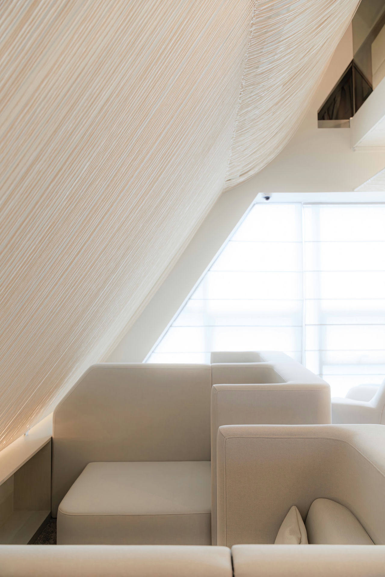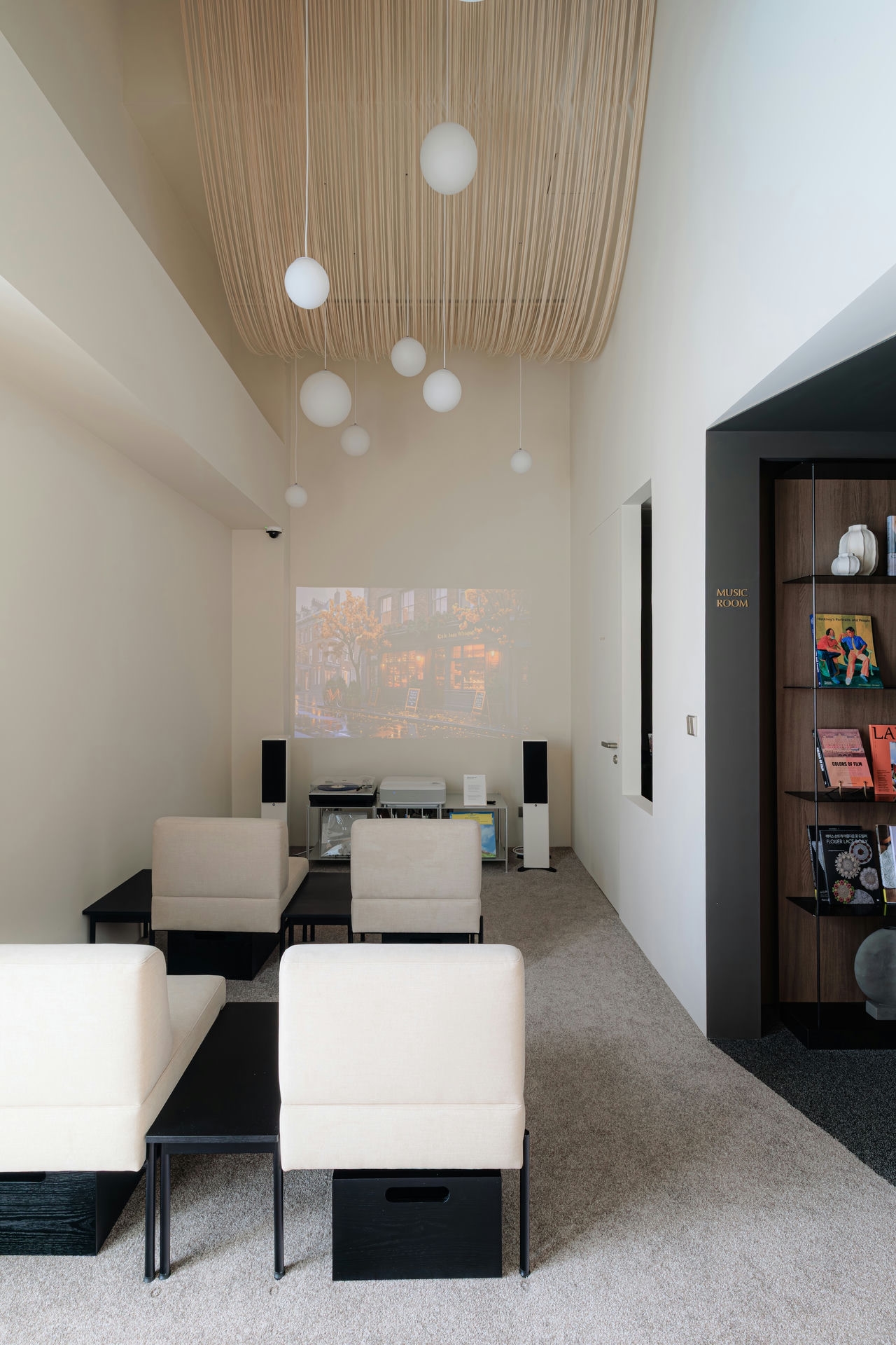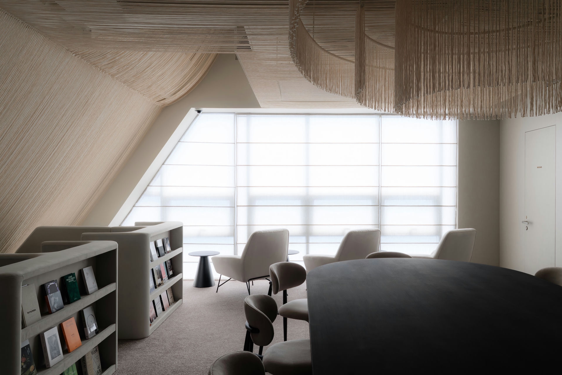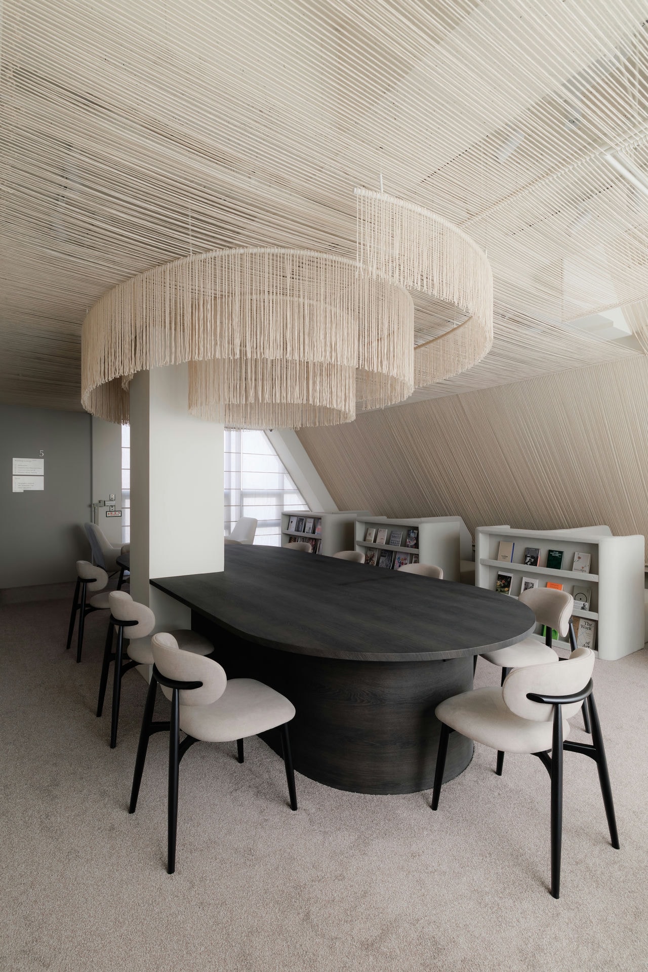 프로젝트 쎄비하우스ㅣ스튜디오캔 건축사사무소 쎄비하우스_성수에서 만나는 뜨개 문화 플랫폼 성수에 자리 잡은 7층 규모의 쎄비하우스는 온라인몰과 유튜브 채널을 통해 뜨개 문화를 확산시켜온 브랜드 쎄비가 오프라인으로 확장하며 만든, 뜨개를 체험하고 공유할 수 있는 복합문화공간이다. 기존에 오피스로 사용되던 건축물을 대수선한 공간으로, 1-2층은 자재스토어, 3층은 팝업갤러리와 디자인랩, 4-7층은 음악과 책, 커피와 간식을 즐기며 뜨개에 몰입할 수 있는 프라이빗 니팅라운지로 구성되었다. Keywords 스튜디오캔건축사사무소 STUDIOCANarchitects SEVYHAUS 쎄비하우스 성수 뜨개문화플랫폼 복합문화공간 팝업갤러리 디자인랩 니팅라운지 뜨개실색감 뜨개실촉감 경험공간 안락하고포근한감성 색감과촉감탐험 일상을잊는경험 비일상적인공간 부티크호텔테마 뮤직룸 세미나실 라이브러리 다양한컨셉좌석 뜨개실바닥카펫 뜨개실천장 마크라메실구조물 블랙터널 낯설음과편안함공존 쎄비하우스는 성수의 빠른 속도감과 다양한 컨텐츠들을 수용하면서도, 편안하고 따뜻한 무드 속에서 뜨개실의 색감과 촉감을 직접 느끼며 시간이 더 느리게 흐르는 듯한 경험 공간으로 만들고자 했다. ‘뜨개’하면 벽장 가득 실이 진열된 동네 사랑방 같은 전형적인 이미지들이 있는데, 뜨개 특유의 안락하고 포근한 감성은 지키면서도 다소 폐쇄적인 이미지에서는 탈피하고자 했다.전면 마당에서 이어지는 입구에는 시즌 쇼윈도를 연출하여 성수동을 오가는 사람들에게 뜨개 생활의 감성을 전하고자 하였다. 1층에서 2층으로 이어지는 자재스토어는 다양한 실들의 색감과 촉감을 탐험하듯 체험할 수 있도록 전시할 제품이나 작품 레이어들을 겹겹이 배치시켰다. 특히 2층은 천장의 커다란 링형태의 조명 구조물 아래로 양파 단면 같은 방사형 가구들을 배치하여 미로정원을 산책하는 듯한 즐거운 쇼핑 경험을 주고자 했다. 시선과 동선의 움직임과 머무름을 면밀히 검토하여 매대의 높낮이를 조정했으며, 전체 조도는 물론 매대 조명의 색온도와 그림자까지 고려해 실의 색감이 가장 잘 보이도록 세심히 조율했다. 3층 팝업 갤러리는 쎄비와 협업하는 작가들과 신진작가들의 판매와 홍보, 유통을 지원하는 상생구조로 운영되는 창작물 경험의 장이다.4층부터 6층까지 이어지는 니팅라운지는 뜨개하는 시간 동안 분주한 일상을 잊고 잠시나마 여행감성을 누릴 수 있도록 비일상적인 공간으로 기획하여 '부티크 호텔'을 테마로 디자인된 공간이다. 니터들이 선호하는 뜨개환경과 뜨개포즈를 고려하여 프라이빗존, 오픈테이블, 라운지체어, 뮤직룸, 세미나실, 라이브러리 등 다양한 컨셉의 좌석들을 배치하여 개인들의 취향을 존중하고 선택할 수 있는 재미를 주었다. 뜨개를 하지 않는 동행인도 편안하게 누릴 수 있는 아늑한 공간이다.5층과 6층은 뜨개실로 바닥 카펫과 천장을 가득 메우고 각 층마다 컨셉 구조물을 달아 매어 공간 자체를 거대한 뜨개 작품처럼 느껴지도록 했다. 5층 벽과 천장을 가득 메운 마크라메 실 구조물이 오프닝을 통해 6층으로 상승하며 이어지고, 기둥을 타고 회오리치며 하강하기도 한다. 계단을 타고 6층에 도착하면 바닥-벽-천장의 색상이 상대적으로 어둡고 좁은 복도에는 시선과 손이 쉽게 닿는 곳에 라이브러리가 조성되어 있다. 블랙터널은 삼각형태의 높은 천장의 공간감을 극대화하며, 벽을 타고 천장까지 가득 메운 마크라메 실 구조물 사이 부유하는 달조명들 아래 고품질 오디오로 음악 감상을 할 수 있다. 공간을 뜨개하고, 뜨개한 공간 속에서 뜨개하는 재미있는 상상의 결과물이다.뜨개에 대한 아이디어로 가득 찬 공간이 주는 낯설음과 편안함이 공존하는 곳에서의 체험을 통해 뜨개에 대한 호기심과 인식을 높이고자 하는 바람이 있었기에 가능한 일이었다.쎄비하우스ㅣSTUDIOCAN Architects 2025위 치 | 서울시 성동구 성수동2가 Seongsu 2-ga, Seongdong-gu, Seoul연면적 | 492.79㎡디자인 | ㈜스튜디오캔 건축사사무소 STUDIO CAN Architects책임 건축가 | 나애나 Aena Na, 최정석 Jeongseok Choi팀 원 | 최빈 Bin Choi, 한석원 Han Seokwon, 최한중 Choi Hanjoong, 정혜원 Jung Hyewon, 이다현 Lee Dahyun글 | ㈜스튜디오캔 건축사사무소 STUDIO CAN Architects사 진 | 제리그라퍼 Jerry Grapher