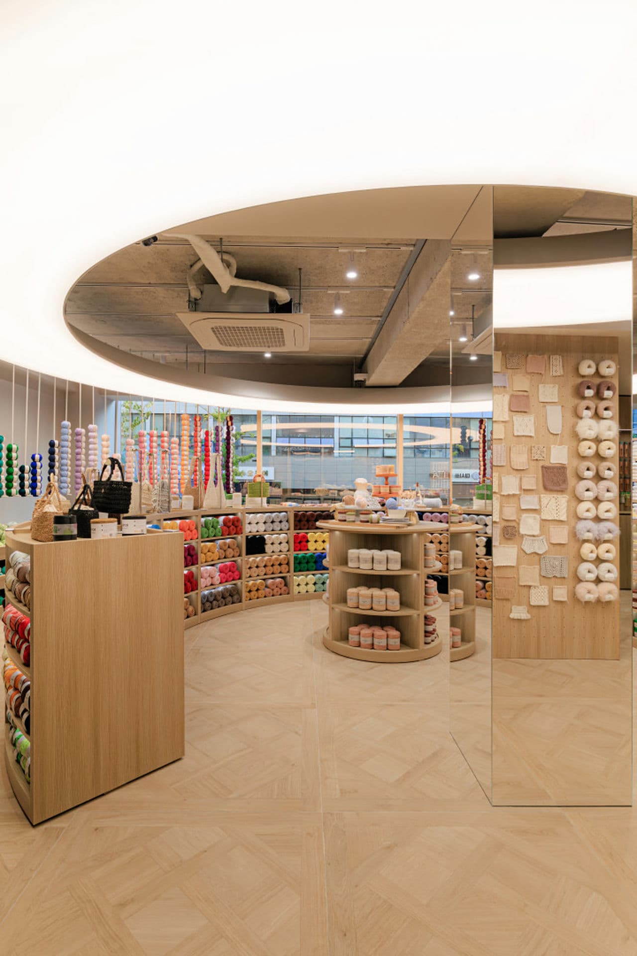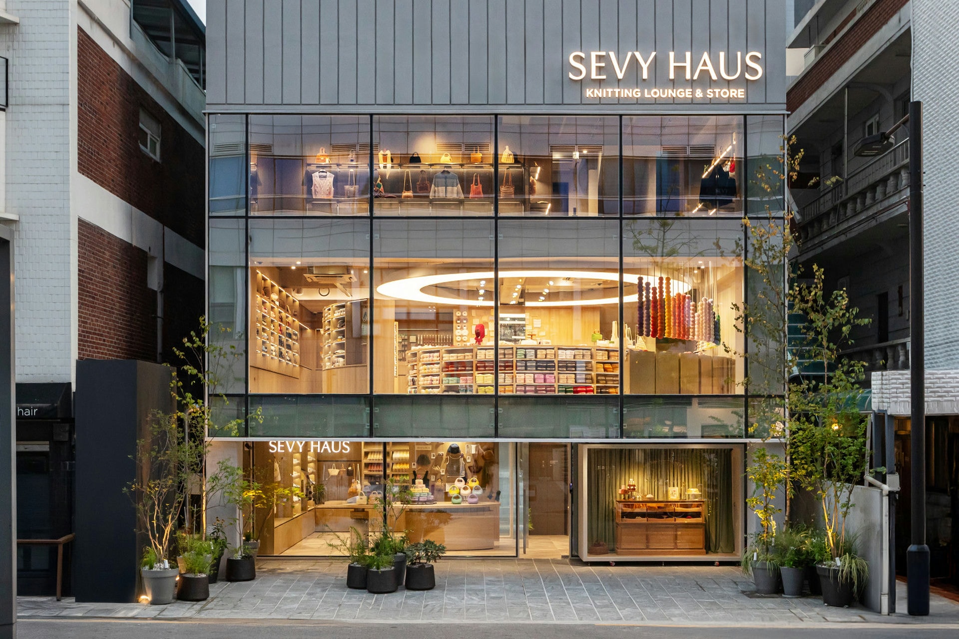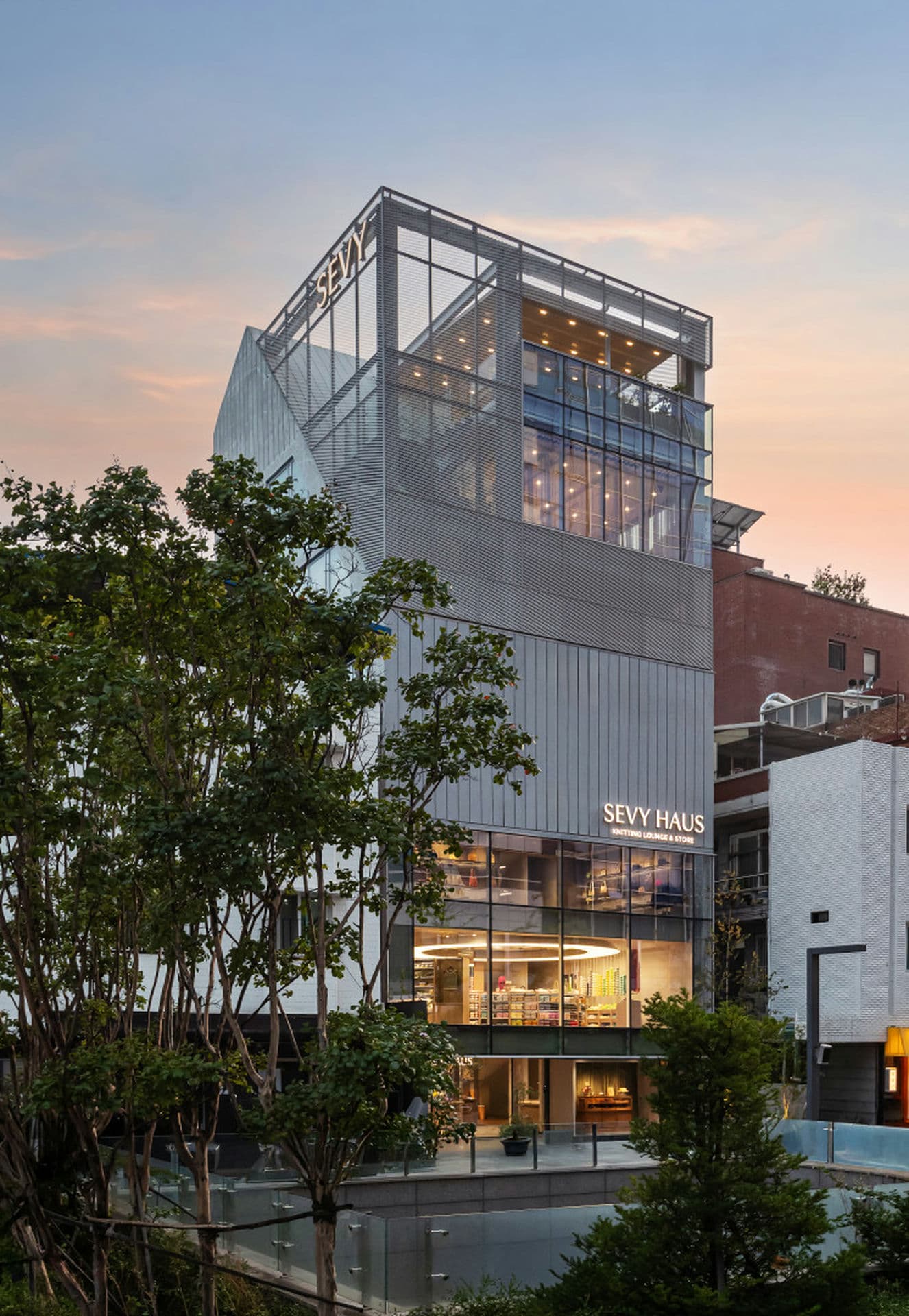 프로젝트 쎄비하우스ㅣ스튜디오캔 건축사사무소 쎄비하우스_성수에서 만나는 뜨개 문화 플랫폼 성수에 자리 잡은 7층 규모의 쎄비하우스는 온라인몰과 유튜브 채널을 통해 뜨개 문화를 확산시켜온 브랜드 쎄비가 오프라인으로 확장하며 만든, 뜨개를 체험하고 공유할 수 있는 복합문화공간이다. 기존에 오피스로 사용되던 건축물을 대수선한 공간으로, 1-2층은 자재스토어, 3층은 팝업갤러리와 디자인랩, 4-7층은 음악과 책, 커피와 간식을 즐기며 뜨개에 몰입할 수 있는 프라이빗 니팅라운지로 구성되었다. Keywords 스튜디오캔건축사사무소 STUDIOCANarchitects SEVYHAUS 쎄비하우스 성수 뜨개문화플랫폼 복합문화공간 팝업갤러리 디자인랩 니팅라운지 뜨개실색감 뜨개실촉감 경험공간 안락하고포근한감성 색감과촉감탐험 일상을잊는경험 비일상적인공간 부티크호텔테마 뮤직룸 세미나실 라이브러리 다양한컨셉좌석 뜨개실바닥카펫 뜨개실천장 마크라메실구조물 블랙터널 낯설음과편안함공존 쎄비하우스는 성수의 빠른 속도감과 다양한 컨텐츠들을 수용하면서도, 편안하고 따뜻한 무드 속에서 뜨개실의 색감과 촉감을 직접 느끼며 시간이 더 느리게 흐르는 듯한 경험 공간으로 만들고자 했다. ‘뜨개’하면 벽장 가득 실이 진열된 동네 사랑방 같은 전형적인 이미지들이 있는데, 뜨개 특유의 안락하고 포근한 감성은 지키면서도 다소 폐쇄적인 이미지에서는 탈피하고자 했다.전면 마당에서 이어지는 입구에는 시즌 쇼윈도를 연출하여 성수동을 오가는 사람들에게 뜨개 생활의 감성을 전하고자 하였다. 1층에서 2층으로 이어지는 자재스토어는 다양한 실들의 색감과 촉감을 탐험하듯 체험할 수 있도록 전시할 제품이나 작품 레이어들을 겹겹이 배치시켰다. 특히 2층은 천장의 커다란 링형태의 조명 구조물 아래로 양파 단면 같은 방사형 가구들을 배치하여 미로정원을 산책하는 듯한 즐거운 쇼핑 경험을 주고자 했다. 시선과 동선의 움직임과 머무름을 면밀히 검토하여 매대의 높낮이를 조정했으며, 전체 조도는 물론 매대 조명의 색온도와 그림자까지 고려해 실의 색감이 가장 잘 보이도록 세심히 조율했다. 3층 팝업 갤러리는 쎄비와 협업하는 작가들과 신진작가들의 판매와 홍보, 유통을 지원하는 상생구조로 운영되는 창작물 경험의 장이다.4층부터 6층까지 이어지는 니팅라운지는 뜨개하는 시간 동안 분주한 일상을 잊고 잠시나마 여행감성을 누릴 수 있도록 비일상적인 공간으로 기획하여 '부티크 호텔'을 테마로 디자인된 공간이다. 니터들이 선호하는 뜨개환경과 뜨개포즈를 고려하여 프라이빗존, 오픈테이블, 라운지체어, 뮤직룸, 세미나실, 라이브러리 등 다양한 컨셉의 좌석들을 배치하여 개인들의 취향을 존중하고 선택할 수 있는 재미를 주었다. 뜨개를 하지 않는 동행인도 편안하게 누릴 수 있는 아늑한 공간이다.5층과 6층은 뜨개실로 바닥 카펫과 천장을 가득 메우고 각 층마다 컨셉 구조물을 달아 매어 공간 자체를 거대한 뜨개 작품처럼 느껴지도록 했다. 5층 벽과 천장을 가득 메운 마크라메 실 구조물이 오프닝을 통해 6층으로 상승하며 이어지고, 기둥을 타고 회오리치며 하강하기도 한다. 계단을 타고 6층에 도착하면 바닥-벽-천장의 색상이 상대적으로 어둡고 좁은 복도에는 시선과 손이 쉽게 닿는 곳에 라이브러리가 조성되어 있다. 블랙터널은 삼각형태의 높은 천장의 공간감을 극대화하며, 벽을 타고 천장까지 가득 메운 마크라메 실 구조물 사이 부유하는 달조명들 아래 고품질 오디오로 음악 감상을 할 수 있다. 공간을 뜨개하고, 뜨개한 공간 속에서 뜨개하는 재미있는 상상의 결과물이다.5층과 6층은 뜨개실로 바닥 카펫과 천장을 가득 메우고 각 층마다 컨셉 구조물을 달아 매어 공간 자체를 거대한 뜨개 작품처럼 느껴지도록 했다. 5층 벽과 천장을 가득 메운 마크라메 실 구조물이 오프닝을 통해 6층으로 상승하며 이어지고, 기둥을 타고 회오리치며 하강하기도 한다. 계단을 타고 6층에 도착하면 바닥-벽-천장의 색상이 상대적으로 어둡고 좁은 복도에는 시선과 손이 쉽게 닿는 곳에 라이브러리가 조성되어 있다. 블랙터널은 삼각형태의 높은 천장의 공간감을 극대화하며, 벽을 타고 천장까지 가득 메운 마크라메 실 구조물 사이 부유하는 달조명들 아래 고품질 오디오로 음악 감상을 할 수 있다. 공간을 뜨개하고, 뜨개한 공간 속에서 뜨개하는 재미있는 상상의 결과물이다.쎄비하우스ㅣSTUDIO CAN Architects 2025위 치 | 서울시 성동구 성수동2가 Seongsu 2-ga, Seongdong-gu, Seoul연면적 | 492.79㎡디자인 및 시공 | (주)스튜디오캔 건축사사무소 STUDIO CAN Architects책임 건축가 | 나애나 Aena Na, 최정석 Jeongseok Choi팀 원 | 최빈 Cui bin, 한석원 Han Seokwon, 최한중 Choi Hanjoong, 정혜원 Jung Hyewon, 이다현 Lee Dahyun브랜딩 및 콘텐츠 | ㅣ플로스튜디오 Flowstudio글 | 주)스튜디오캔 건축사사무소 STUDIO CAN Architects 사 진 | 제리그래퍼 Jerry Grapher
