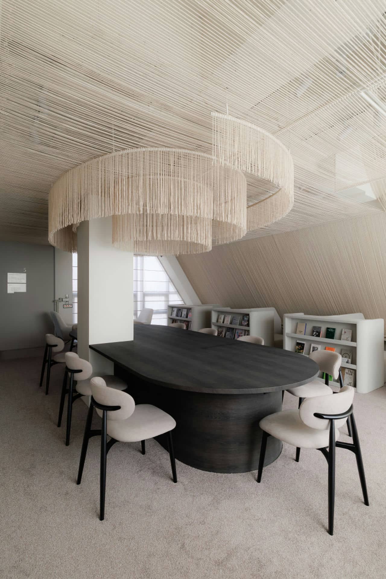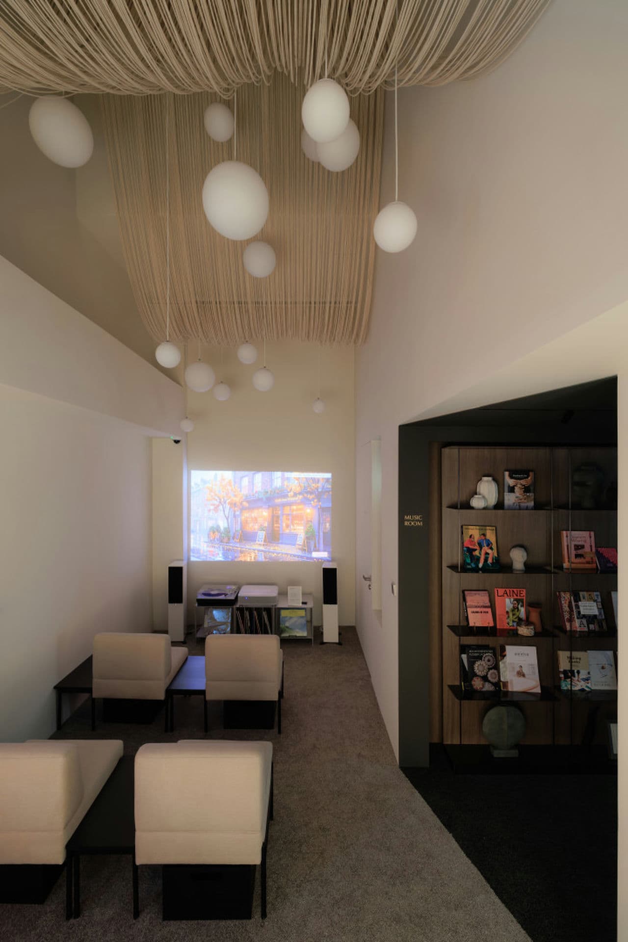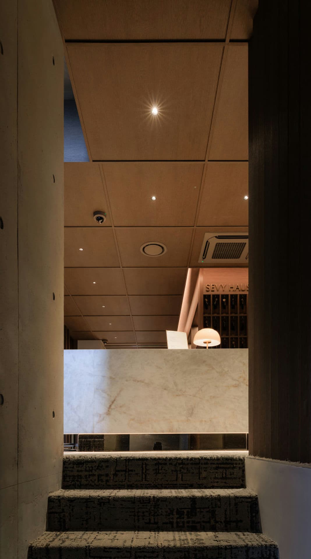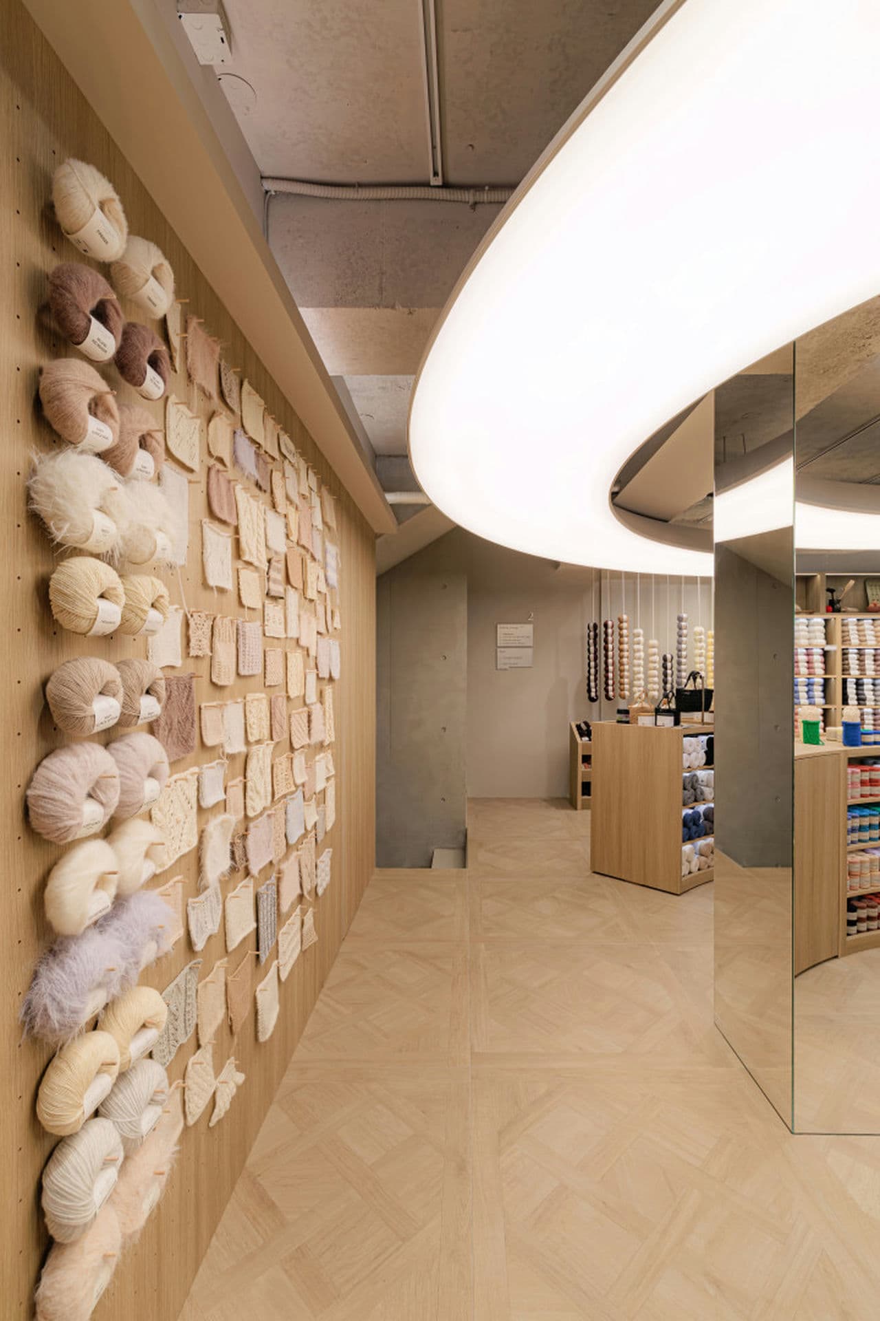 프로젝트 쎄비하우스ㅣ스튜디오캔 건축사사무소 쎄비하우스_성수에서 만나는 뜨개 문화 플랫폼 성수에 자리 잡은 7층 규모의 쎄비하우스는 온라인몰과 유튜브 채널을 통해 뜨개 문화를 확산시켜온 브랜드 쎄비가 오프라인으로 확장하며 만든, 뜨개를 체험하고 공유할 수 있는 복합문화공간이다. 기존에 오피스로 사용되던 건축물을 대수선한 공간으로, 1-2층은 자재스토어, 3층은 팝업갤러리와 디자인랩, 4-7층은 음악과 책, 커피와 간식을 즐기며 뜨개에 몰입할 수 있는 프라이빗 니팅라운지로 구성되었다. Keywords 스튜디오캔건축사사무소 STUDIOCANarchitects SEVYHAUS 쎄비하우스 성수 뜨개문화플랫폼 복합문화공간 팝업갤러리 디자인랩 니팅라운지 뜨개실색감 뜨개실촉감 경험공간 안락하고포근한감성 색감과촉감탐험 일상을잊는경험 비일상적인공간 부티크호텔테마 뮤직룸 세미나실 라이브러리 다양한컨셉좌석 뜨개실바닥카펫 뜨개실천장 마크라메실구조물 블랙터널 낯설음과편안함공존 쎄비하우스는 성수의 빠른 속도감과 다양한 컨텐츠들을 수용하면서도, 편안하고 따뜻한 무드 속에서 뜨개실의 색감과 촉감을 직접 느끼며 시간이 더 느리게 흐르는 듯한 경험 공간으로 만들고자 했다. ‘뜨개’하면 벽장 가득 실이 진열된 동네 사랑방 같은 전형적인 이미지들이 있는데, 뜨개 특유의 안락하고 포근한 감성은 지키면서도 다소 폐쇄적인 이미지에서는 탈피하고자 했다.전면 마당에서 이어지는 입구에는 시즌 쇼윈도를 연출하여 성수동을 오가는 사람들에게 뜨개 생활의 감성을 전하고자 하였다. 1층에서 2층으로 이어지는 자재스토어는 다양한 실들의 색감과 촉감을 탐험하듯 체험할 수 있도록 전시할 제품이나 작품 레이어들을 겹겹이 배치시켰다. 특히 2층은 천장의 커다란 링형태의 조명 구조물 아래로 양파 단면 같은 방사형 가구들을 배치하여 미로정원을 산책하는 듯한 즐거운 쇼핑 경험을 주고자 했다. 시선과 동선의 움직임과 머무름을 면밀히 검토하여 매대의 높낮이를 조정했으며, 전체 조도는 물론 매대 조명의 색온도와 그림자까지 고려해 실의 색감이 가장 잘 보이도록 세심히 조율했다. 3층 팝업 갤러리는 쎄비와 협업하는 작가들과 신진작가들의 판매와 홍보, 유통을 지원하는 상생구조로 운영되는 창작물 경험의 장이다.4층부터 6층까지 이어지는 니팅라운지는 뜨개하는 시간 동안 분주한 일상을 잊고 잠시나마 여행감성을 누릴 수 있도록 비일상적인 공간으로 기획하여 '부티크 호텔'을 테마로 디자인된 공간이다. 니터들이 선호하는 뜨개환경과 뜨개포즈를 고려하여 프라이빗존, 오픈테이블, 라운지체어, 뮤직룸, 세미나실, 라이브러리 등 다양한 컨셉의 좌석들을 배치하여 개인들의 취향을 존중하고 선택할 수 있는 재미를 주었다. 뜨개를 하지 않는 동행인도 편안하게 누릴 수 있는 아늑한 공간이다.5층과 6층은 뜨개실로 바닥 카펫과 천장을 가득 메우고 각 층마다 컨셉 구조물을 달아 매어 공간 자체를 거대한 뜨개 작품처럼 느껴지도록 했다. 5층 벽과 천장을 가득 메운 마크라메 실 구조물이 오프닝을 통해 6층으로 상승하며 이어지고, 기둥을 타고 회오리치며 하강하기도 한다. 계단을 타고 6층에 도착하면 바닥-벽-천장의 색상이 상대적으로 어둡고 좁은 복도에는 시선과 손이 쉽게 닿는 곳에 라이브러리가 조성되어 있다. 블랙터널은 삼각형태의 높은 천장의 공간감을 극대화하며, 벽을 타고 천장까지 가득 메운 마크라메 실 구조물 사이 부유하는 달조명들 아래 고품질 오디오로 음악 감상을 할 수 있다. 공간을 뜨개하고, 뜨개한 공간 속에서 뜨개하는 재미있는 상상의 결과물이다.5층과 6층은 뜨개실로 바닥 카펫과 천장을 가득 메우고 각 층마다 컨셉 구조물을 달아 매어 공간 자체를 거대한 뜨개 작품처럼 느껴지도록 했다. 5층 벽과 천장을 가득 메운 마크라메 실 구조물이 오프닝을 통해 6층으로 상승하며 이어지고, 기둥을 타고 회오리치며 하강하기도 한다. 계단을 타고 6층에 도착하면 바닥-벽-천장의 색상이 상대적으로 어둡고 좁은 복도에는 시선과 손이 쉽게 닿는 곳에 라이브러리가 조성되어 있다. 블랙터널은 삼각형태의 높은 천장의 공간감을 극대화하며, 벽을 타고 천장까지 가득 메운 마크라메 실 구조물 사이 부유하는 달조명들 아래 고품질 오디오로 음악 감상을 할 수 있다. 공간을 뜨개하고, 뜨개한 공간 속에서 뜨개하는 재미있는 상상의 결과물이다.쎄비하우스ㅣSTUDIO CAN Architects 2025위 치 | 서울시 성동구 성수동2가 Seongsu 2-ga, Seongdong-gu, Seoul연면적 | 492.79㎡디자인 및 시공 | (주)스튜디오캔 건축사사무소 STUDIO CAN Architects책임 건축가 | 나애나 Aena Na, 최정석 Jeongseok Choi팀 원 | 최빈 Cui bin, 한석원 Han Seokwon, 최한중 Choi Hanjoong, 정혜원 Jung Hyewon, 이다현 Lee Dahyun브랜딩 및 콘텐츠 | ㅣ플로스튜디오 Flowstudio글 | 주)스튜디오캔 건축사사무소 STUDIO CAN Architects 사 진 | 제리그래퍼 Jerry Grapher