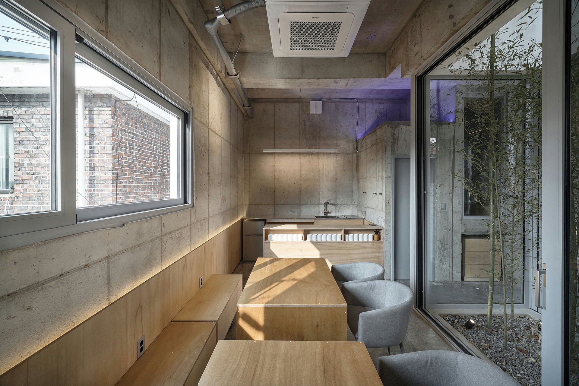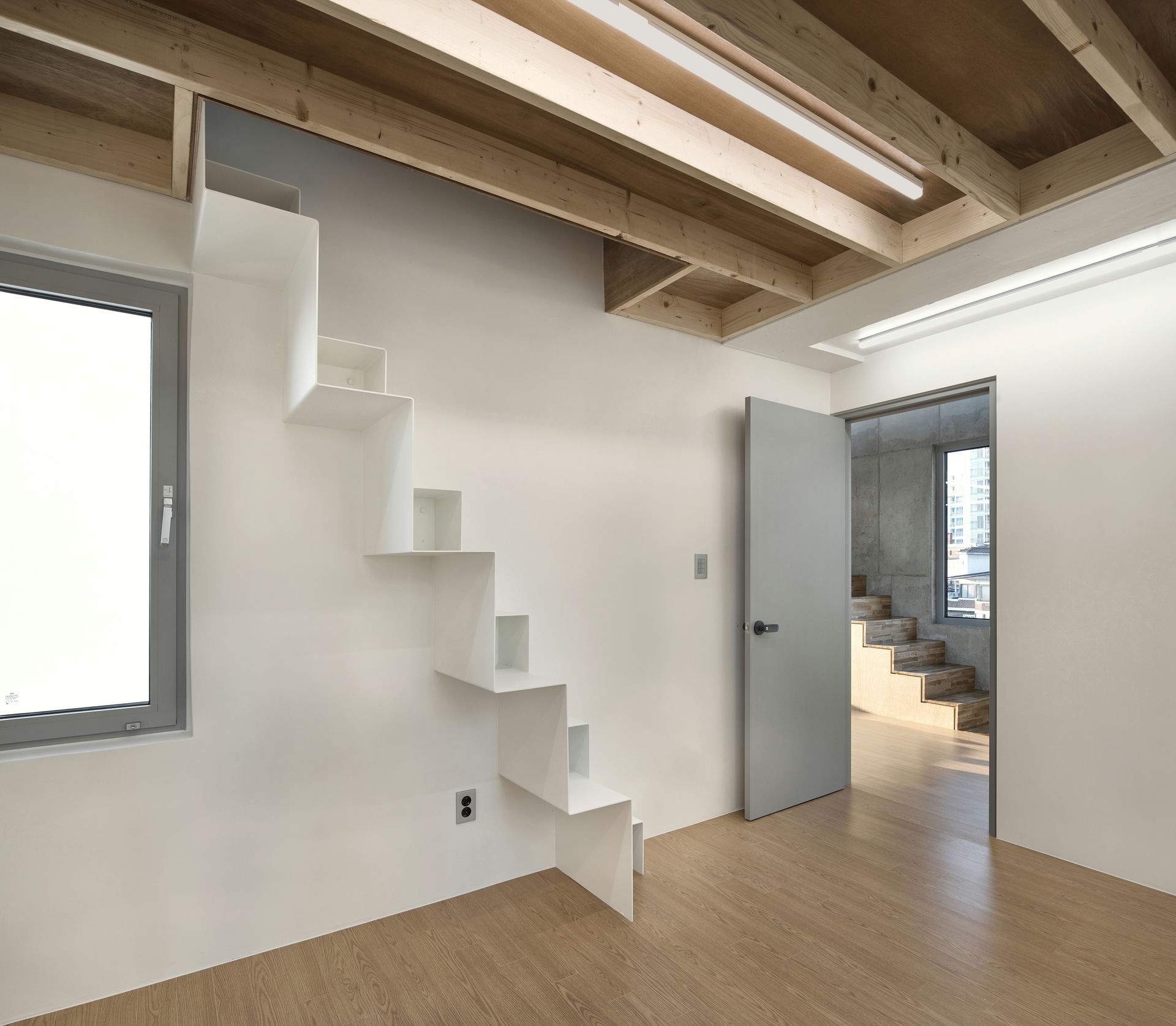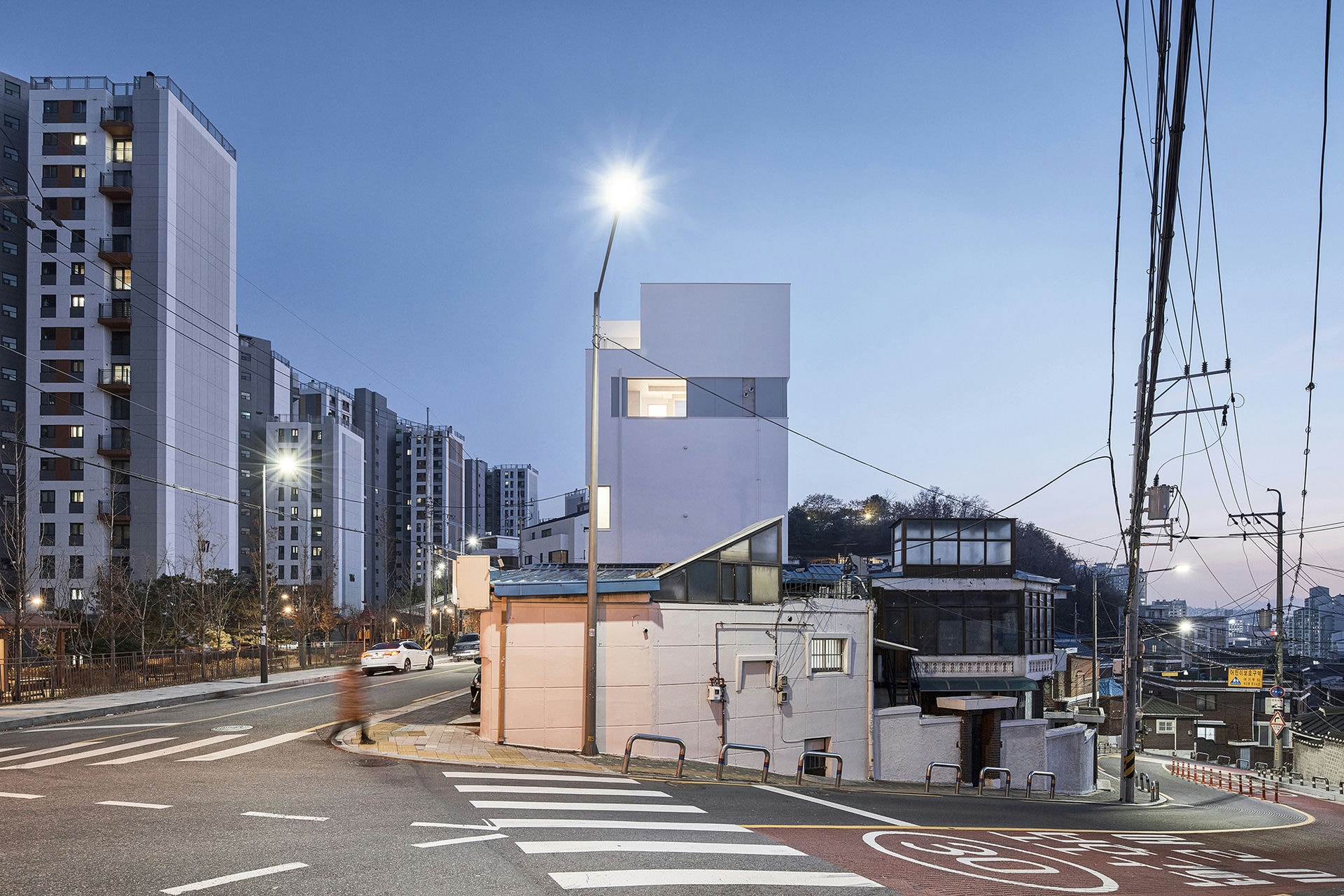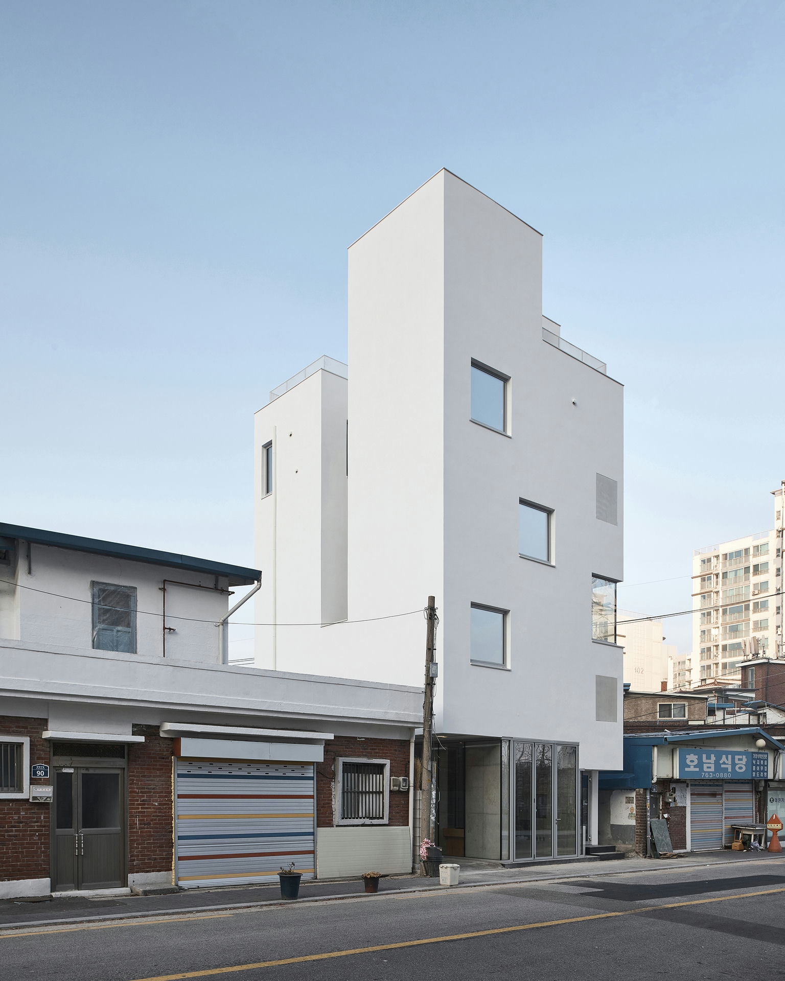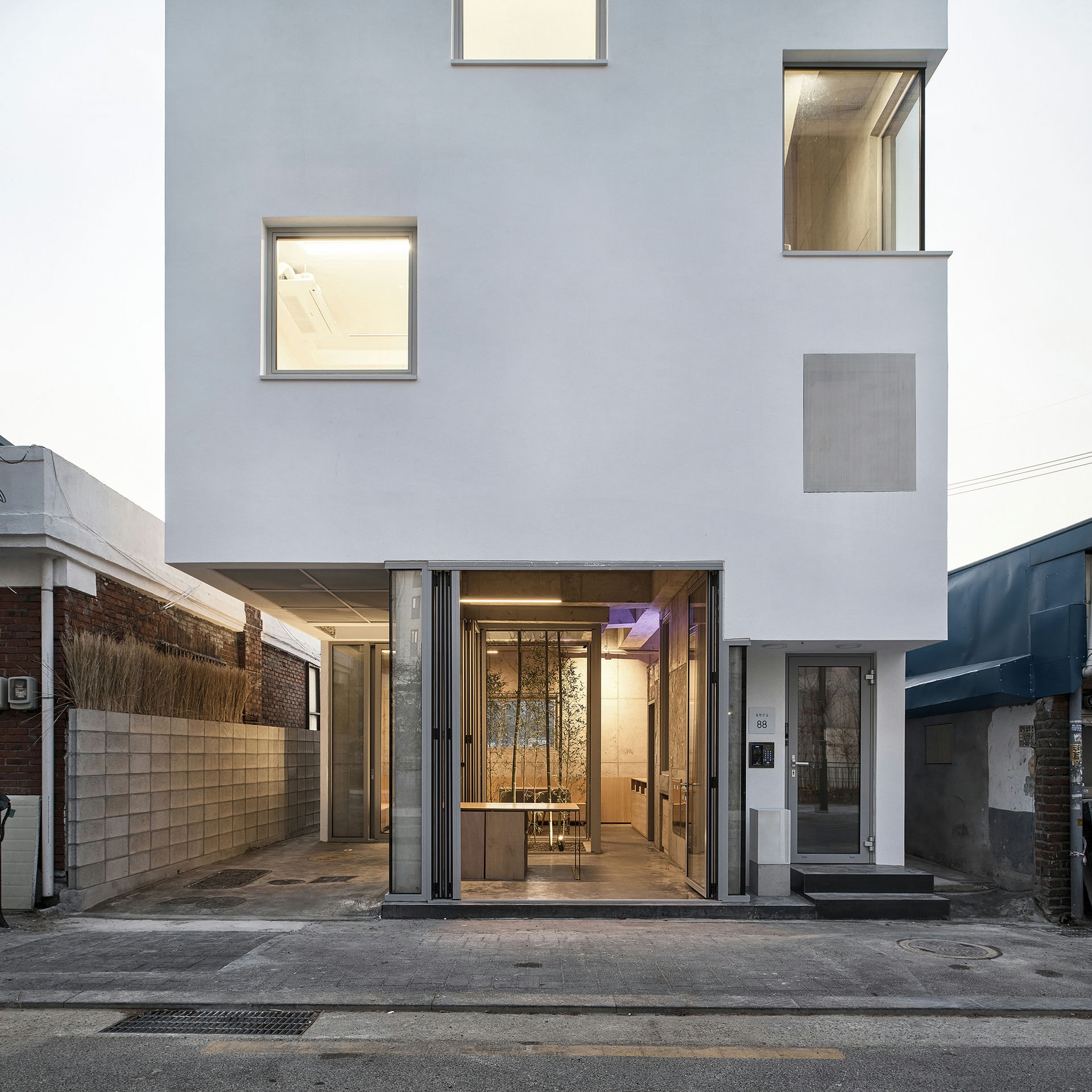 프로젝트 숭인공간ㅣ스페이스매터 건축사사무소 숭인공간 건축소묘 공유주택은 경제적 이유로 생겨난 주거 유형이다. 물론, 완전히 새로운 방식의 주거 유형은 아니다. 공유주택의 모태는 과거 셋방살이다. 현재의 공유주택 역시 과거 셋방살이처럼 최소 주거 단위의 방을 임대한다. 경제적 이유 때문이다. 하지만 현재의 공유주택은, 과거 셋방살이와 달리, 삶의 최소면적 확보 이상의 질적 배려를 담보해야 한다. 삶의 질에 대한 의식 수준이 상향 평준화되고 있기 때문이다. 하지만 대부분의 공유 주거는 아파트나 다세대주택 같은 기존의 주거 공간에 담겨 그 요구에 제대로 부응하지 못하는 실정이다. ‘숭인공간’은 이에 대한 고민의 결과를 담은 공유주택이다. Keywords SpaceMatterArchitects 스페이스매터건축사사무소 SunginSpace 숭인공간 공유주거 질적배려 삶의질 작은개입 공유공간 스터디모임 친목모임 청년공유주택 사적인성격의공유 내밀한쉼터 협소주택 대나무중정 독립된공간 개별통풍 풍경과채광 선택적참여가쉬운공유주택 공유공간 ‘숭인공간’의 1층은 소정의 이용료만 부담하면 누구나 이용할 수 있는 공유공간이다. 이곳에선 스터디 모임부터 친목 모임까지 다양한 모임을 할 수 있다. 가로(소공원)를 향해 열리는, 1층의 공유공간은 외지인과 더불어 공유주택 입주민의 사용을 염두에 두고 조성한 공간이다. 상층부 공유주택에는 입주민을 위한 공유공간이 있다. 4, 5층에 남산이 보이는 주방과 테라스가 달린 미니 거실이 있다. 1층의 공유공간과 더불어 상층부의 공유공간은 모니터링 대상이다. 새로운 라이프스타일의 작동법을 관찰한다면, 더 나은 공유주택 모델을 도출하는 데 도움될 것이다.따로 또 같이 공유주택의 호실은 최대한 사적인 성격을 지녀야 한다. 내밀한 쉼터가 있어야 공유공간에서 어울릴 여유를 가질 수 있기 때문이다. 협소주택임에도, 대나무 중정으로 건물(평면)을 나누어 호실을 독립된 공간처럼 만든 이유다. 덕분에 각 호실은 문의 개폐 없이 개별 통풍이 가능하고, 풍경과 채광도 두 배로 늘어난다.협소한 부지(23평) 덕에, 호실은 층(단면)으로도 분리된다. 호실은 3개 층에 걸쳐 분리되고, 공유공간은 지층과 4~5층에 위치하여 호실과 층으로 분리된다. ‘숭인공간’은 선택적 참여가 쉬운 공유주택을 지향한다. 숭인공간 SUNGIN SPACEㅣSPACE MATTER Architects 2020위 치 | 서울시 종로구 숭인동 Sungin-dong, Jongno-gu, Seoul대지면적 | 76.70㎡건축면적 | 45.34㎡연 면 적 | 153.90㎡구 조 | 철근 콘크리트구조디자인 | 스페이스매터 건축사사무소 SPACE MATTER Architects설 계 자 | 건축사 전상현 Sanghyun Jeon글 | 스페이스매터 건축사사무소 SPACE MATTER Architects사 진 | 최진보 Jin Bo Choi