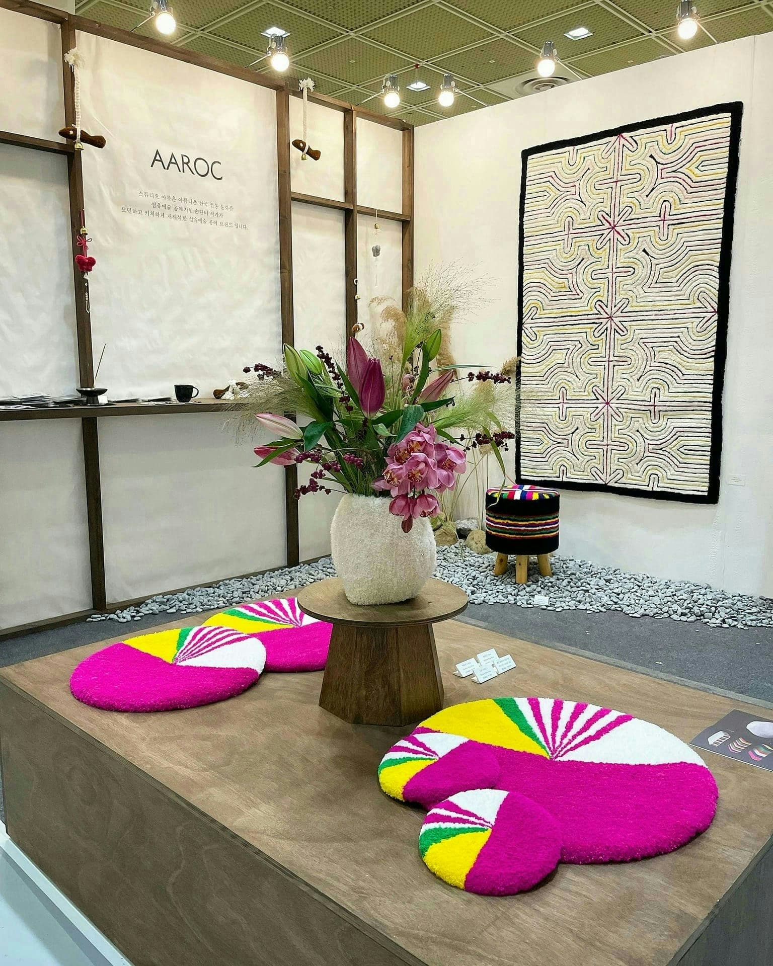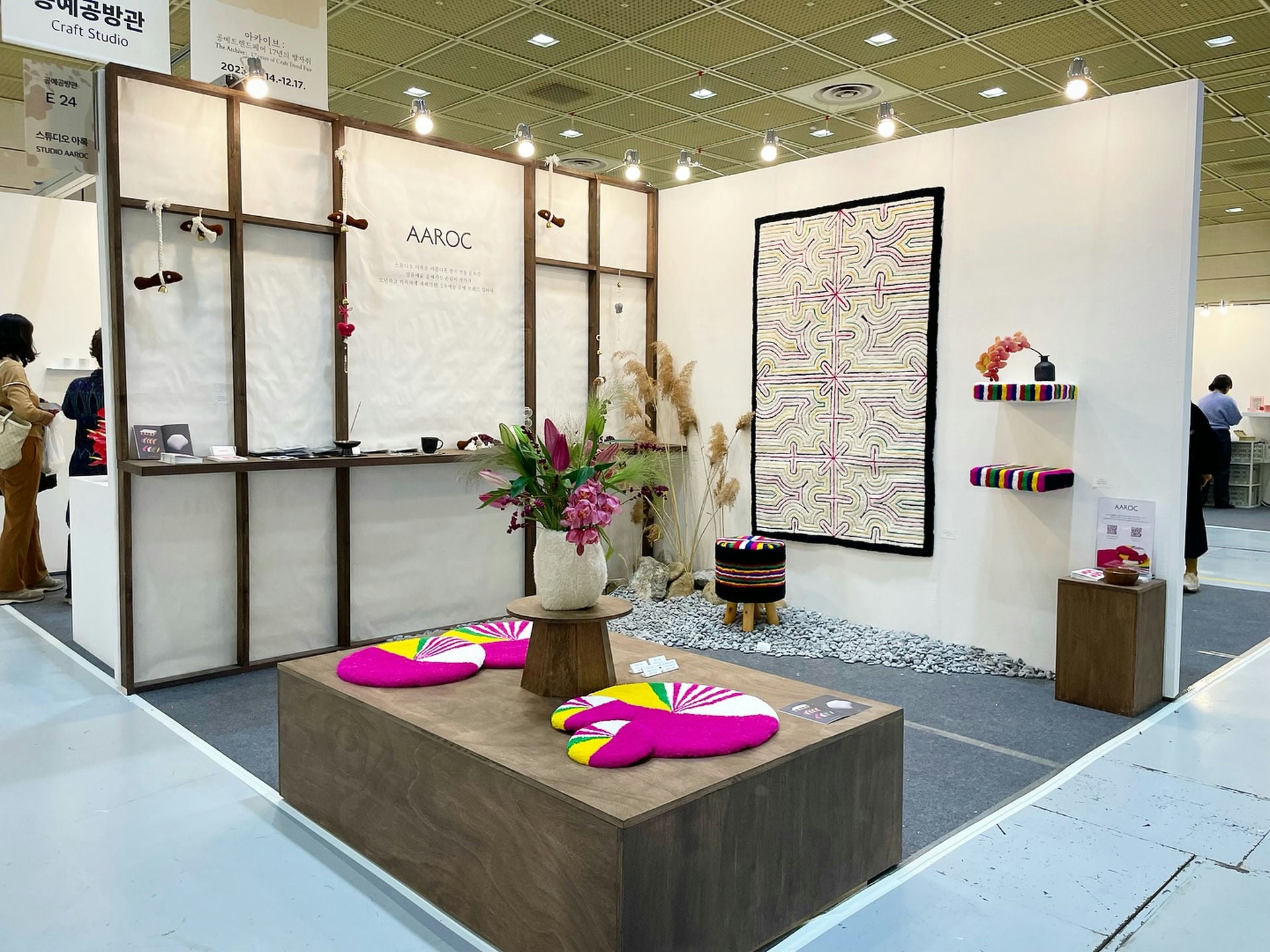 Okchun Series┃AAROC Textile Artist 손단비 Son Danbee / 대표 아록(婀祿)은 “아름다운 한국 전통을 즐기며 행복을 느끼다”라는 철학을 바탕으로, 한국의 전통미를 현대적 감각으로 재해석하는 섬유예술 공예 브랜드입니다. 아름다운 한국 전통을 손단비 작가만의 고유한 감각을 통해 키치하면서도 현대적으로 재해석해 친근하지만 신선한 방식으로 여러분께 다가갑니다. 아록은 한국 전통이 가지고 있는 본질적인 아름다움과 시대를 초월한 미적 가치를 담아 한국 전통의 가능성을 확장합니다. 이를 통해 오늘날의 일상에서 한국의 전통과 아름다움을 더 가깝게 느끼고 즐길 수 있도록 합니다. 과거의 전통이 현재를 통해 미래로 이어지는 “오래된 미래”는 아록이 꿈꾸는 모습입니다. Keywords AAROC 스튜디오아록 한국전통 섬유예술공예브랜드 손단비작가 SonDanbee Okchun 옥춘 한국전통사탕 OkchunRug 옥춘러그 OkchunPouch 옥춘작은손가방 자수기법 한국의사계절 OkchunPillow 옥춘누빔모시베개 MyeongjuBukeo 명주북어 DaenggiMyeongjuBukeoBell 댕기명주실북어 MyeongjuBukeoBell 명주실북어풍경 CeramicTurtleBookmarker 도자거북끈갈피 매화도자키링 MaehwaCeramicKeyring LeatherMaedeupTumblerBag 가죽매듭텀블러백 패션아이템 꾸꾸꾸문화 “잊혀져 가는 아름다운 한국의 전통을 재발견해서 일상에서 즐길 수 있게 만들어보자!” - AAROC OKCHUN SERIES┃옥춘 시리즈 한국의 전통 사탕인 옥춘은 아름다운 구슬과 화사한 봄을 상징합니다. 빨간색, 흰색, 노란색, 초록색 등 다채로운 색상으로 만들어진 옥춘은 큰 잔치나 기쁜 날을 기념하는데 사용되며, 사랑하는 이의 길을 환하게 밝혀준다는 의미를 담고 있습니다. OKCHUN RUG (옥춘 러그)<옥춘 러그>는 옥춘에서 모티브를 얻어 사랑하는 이들의 매일이 화사한 봄이길 바라는 마음을 담아 디자인 되었습니다. 옥춘의 발랄한 컬러는 다양한 소품과 함께 인테리어에 활용하기에 매력적인 디자인 러그입니다. 일상생활 속에서도 활용도 높게 사용 가능하도록 터프팅 전용 원사와 손바느질로 제작되어 세탁기 및 건조기 사용이 가능한 작품입니다.Size : D 18cm / D 40cm / D 50cmMaterial : BCFOKCHUN POUCH (옥춘 작은 손가방)옥춘의 이미지에서 영감을 받은 <옥춘 작은 손가방>은 한국의 사계절을 옥춘의 색채와 이미지를 통해 표현합니다. 빨강, 초록, 노랑 등 알록달록한 옥춘 색상들은 봄과 여름을 상징하는 모시 소재로 표현되었고, 가을과 겨울을 상징하는 누빔 소재와 섬세한 자수기법이 조화롭게 조합되어 색다른 매력을 발산합니다. 전통적인 옥춘의 이미지를 현대적으로 재해석하고, 한국의 아름다운 사계절을 내 손 안에 간직할 수 있는 제품으로 탄생하였습니다. <옥춘 작은 손가방>은 신용카드, 에어팟, 립스틱 등 작은 소품을 담을 수 있는 크기로, 일상적인 외출 시 편리하게 사용하실 수 있습니다.Size : W 10.5cm × D 10.5cm × H 1cmMaterial : [겉감] 누빔, 모시 [안감] 나일론 트윌지OKCHUN PILLOW (옥춘 누빔/모시 베개)<옥춘 누빔/모시 베개>는 옥춘의 이미지에서 영감을 받았습니다. 옥춘의 다채로운 색채와 이미지를 통해 한국의 사계절을 표현합니다. 평상시에는 누빔/모시 베개 커버만 사용하시면 누빔/모시 소재의 고유한 매력을 더욱 잘 느끼실 수 있습니다. 베개로 사용하실 때는 동봉된 면 커버를 씌우시면 더욱 위생적으로 사용하실 수 있습니다.Size : W 18cm × D 18cm × H 50cmMaterial : [누빔/모시 베개커버] 누빔, 모시 [면커버] 면 [베개솜] 솜MYEONGJU BUKEO SERIES┃명주 북어 시리즈북어는 길상의 의미를 담고 있습니다. 길(吉)은 선(善)한 것, 상(祥)은 아름답고 기쁜 일의 징조로, 좋은 기운을 줄 것으로 믿는 대상들을 생활 속에 상징적으로 표현하며, 삶의 행복을 기원하는 마음입니다. 명주실 실타래는 긴 실과 같이 오래 살기(장수·長壽)와 일이 술술 풀리기를 의미하고, 말린 명태인 북어는 액을 막아주는 의미로 제사나 고사에서 제물로 사용됩니다. 전통적으로 명주실 북어는 액을 막아주고 복을 불러오길 바라는 의미를 담고 있습니다.DAENGGI MYEONGJU BUKEO BELL (댕기 명주실 북어)명주실 북어에서 영감을 받은 <댕기 명주실 북어>는 작가만의 감성으로 원화의 느낌을 재구성하여, 멀게만 느껴졌던 한국의 전통을 일상에서 편히 경험할 수 있도록 했습니다. 길상의 의미를 담은 이 풍경은 주물로 제작된 종이 행운을 가져다 주는 맑고 청아한 소리를 내어줍니다. 댕기머리같이 길게 땋여진 명주실이 둘러진 <댕기 명주실 북어>는 길게 땋은 댕기의 모양으로 즐기실 수도 있고, 조선시대 가채처럼 틀어 올린 스타일로도 즐기실 수 있습니다.Size : W 17cm × D 5cm x H 40cmMaterial : Wool, Bell, Silk threadMYEONGJU BUKEO BELL (명주실 북어 풍경)<명주실 북어 풍경>은 길상의 의미를 담은 한국 전통 공예상품입니다. 햇빛을 받으면 오색으로 빛나는 유리구슬로 꿰어진 <명주실 북어 풍경>은 모든 일이 늘 순조롭게 풀리고 선물 받은 분이 언제나 빛나기를 바라는 마음을 전합니다.Size : W 13cm × D 4cm x H 34~37cm Material : Acrylic, Wood, Bell, BeadsCERAMIC TURTLE BOOKMARKER┃도자 거북 끈갈피스튜디오 아록의 <도자 거북 끈갈피>는 한국 전통 문화 속 거북이의 섬세함과 아름다움을 현대적으로 재해석한 
