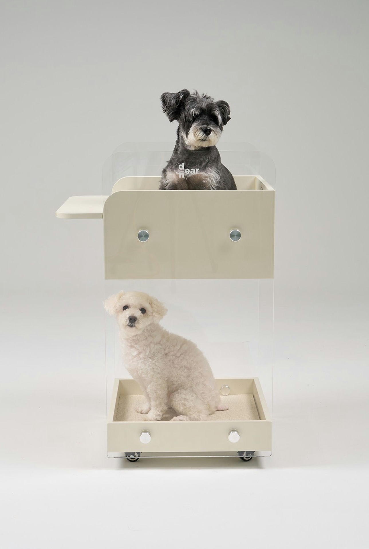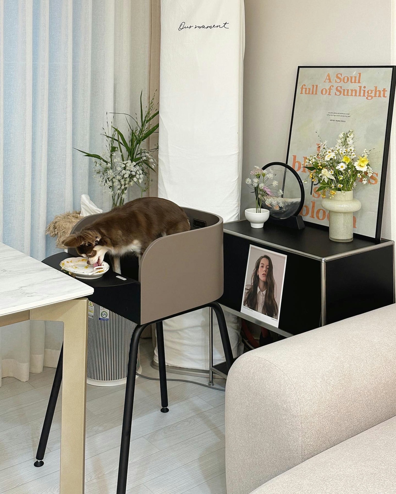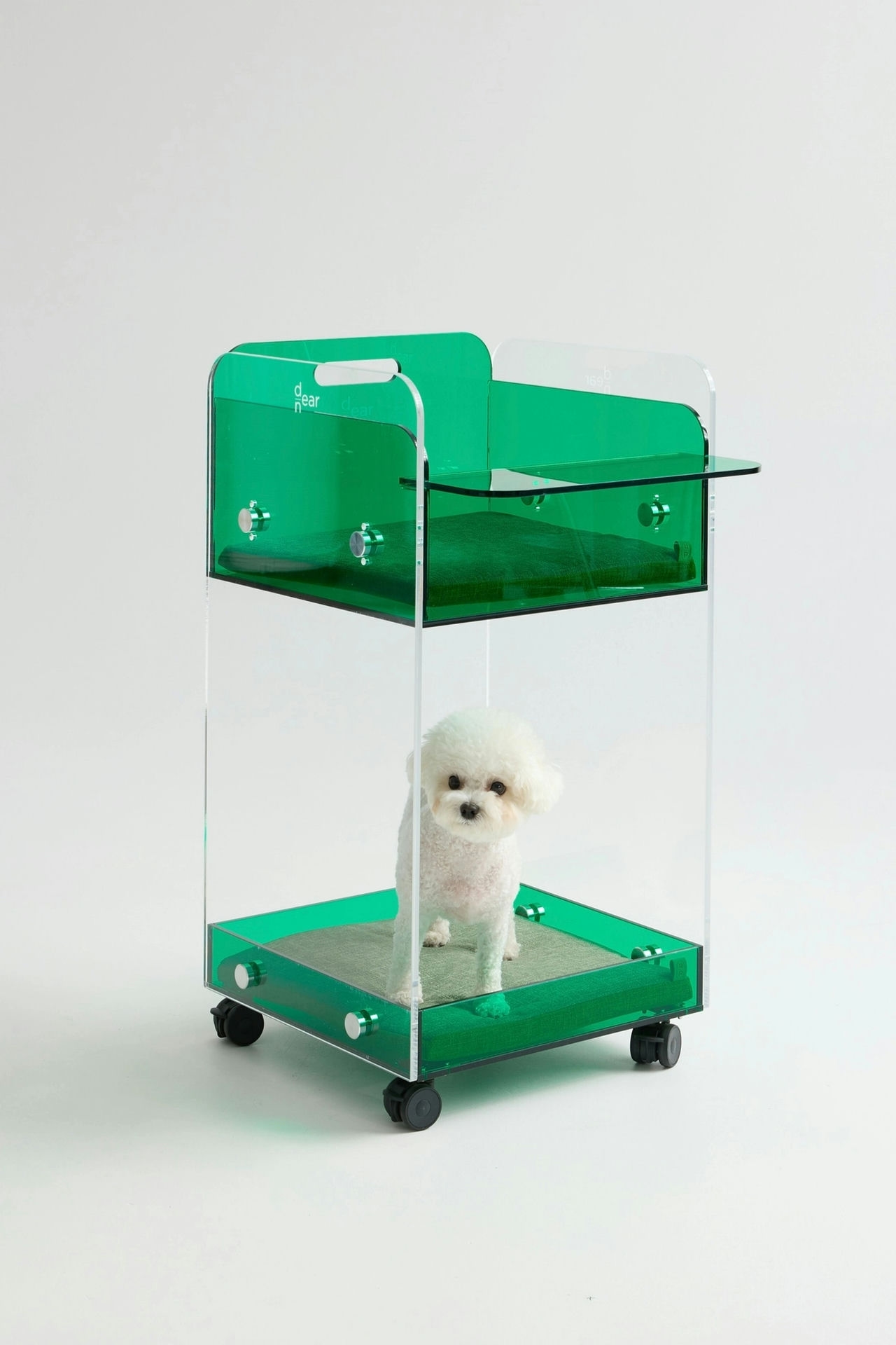 Premium Pet Chair #1┃D.NEAR D.NEAR┃디니어 혹시, 우리 강아지에게도 자리를 만들어주고 싶었던 적 있으세요? 가족들이 웃고 떠들며 둘러앉은 시간, 우리 강아지는 늘 식탁 아래에서 올려다보고 있었어요. 어느 날은 그런 저희 강아지 써니의 하루를 생각하게 되었죠. 써니의 시간은 우리보다 3배나 빠르지만, 대부분의 일상을 우리를 기다리거나 관찰하며 보내고 있었어요. '같이 앉을 수는 없을까? 굳이 올려다보지 않아도 되도록.. 우리가 식탁에 둘러앉아 있을 때, 혼자 아래에서 얼마나 궁금했을까?' 그 마음이 디니어의 시작이었어요. 2020년 당시, '강아지 식탁의자'를 찾아보기 힘들었고, 그래서 직접 만들었습니다. 써니가 식탁 아래에서 보냈던 시간들을 떠올리며 편안한 높이와 안전한 구조를 실험하고, 디자인을 계속 보완하며 강아지와 보호자가 함께 눈을 맞출 수 있는 의자를 만들기 시작했죠. 그렇게 만들어진 첫 의자에 써니를 앉혀주고, 나란히 눈을 마주치며 느낀 따뜻함에 눈물이 핑 돌았어요. 상상보다 더 좋았거든요. 그 후로 저희는 함께 자리에 앉아 수다도 떨고, 생일 파티도 하고, 조금씩 더 다양한 시간을 공유하게 되었어요. 사실 디니어는 단지 의자를 만드는 브랜드가 아니에요. 그저 '우리 강아지에게도 자리를 마련해 주고 싶었던 보호자의 마음'에서 시작된, 가족의 풍경이자, 다정한 제안이랍니다. 서로의 시선이 머무는 자리에, 디니어가 함께하겠습니다. Keywords DNEAR 디니어 프리미엄펫체어 PremiumPetChair 반려동물동반공간 머무를수있는자리 보호자와의시선교감 펫테리어라이프스타일 OriginalChair 오리지널체어 자작나무컬러 기본에충실한디자인 안정적인바퀴 둥근모서리 CrystalChair 크리스탈체어 투명아크릴 개방감 오브제같은장식효과 ModernChair 모던체어 심플미니멀디자인 ModernChairSofa 모던체어소파 애착의자컨셉 부드러운촉감 편안함 “반려동물 동반 공간에서 중요한 것은 ‘자유’가 아니라 ‘머무를 수 있는 자리’라고 생각합니다. 디니어는 반려동물이 공간 안에서 안정적으로 머무르도록 돕고, 보호자와의 시선 교감을 통해 공간 경험의 질을 높이는 가구입니다.”MODERN CHAIR┃심플 & 미니멀 디자인 체어 사람의 식탁의자를 착안하여 만든 가장 심플한 모던체어입니다. 심플한 디자인과 높은 내구성으로 반려동물들이 모이는 카페, 호텔, 식당 등 어디나 잘 어울립니다. 특유의 밝고 따뜻한 자작나무 컬러와 부드러운 곡선 라인은 집 안의 방, 거실, 다이닝 공간까지 어떤 곳에도 잘 어울려 공간을 한층 더 아늑하게 만들어줘요. 탈부착 가능한 식판이 세로로 고정되어 약을 먹이거나 미용할 때 좀 더 가까이에서 편리하게 케어할 수 있어요. 잠시 떨어져 있을 때도 안전하게 보호할 수 있답니다.MODERN CHAIR SOFA | 모던함과 편안함의 완벽한 조화모던체어 소파는 세련된 디자인을 살리면서 강아지의 편안함을 최우선으로 고려했습니다. 안정적인 체어의 하부와 상부의 조화, 부드러운 느낌을 주기 위해 고도의 벤딩 작업을 진행하고, 패브릭으로 포근한 반려동물 자리를 만들었습니다. 모던체어 소파는 함께 오래 사용할 수 있도록 견고하고 내구성 강한 펫프랜들리(Pet-Friendly) 소재를 사용해, 여러분의 반려동물에게 ‘애착 의자’가 되어줄 거예요. 게다가 100% 국내에서 제조되어 MADE IN KOREA의 품질과 자부심을 담았답니다.ORIGINAL CHAIR┃자작나무 색감의 아날로그 체어디니어는 2020년에 가족과 반려동물 간의 소중한 유대감을 위해 첫 시제품을 만들면서 시작했어요. 심플하지만 탄탄한 베이직 체어가 지금은 편안함과 내구성을 더한 오리지널 체어로 업그레이드되었습니다. 자연스러운 자작나무 컬러와 기본에 충실한 디자인은 어느 공간에 두어도 반려동물과 사람이 함께하는 ‘펫테리어’ 라이프스타일에 꼭 맞는 아이템이에요. 안정적인 구조에 4개의 바퀴가 있어 어디든 옮겨서 사용할 수 있고 브레이크로 고정이 가능합니다. 모든 모서리를 둥글게 마감하여 반려동물이 다치지 않도록 안전성을 높였습니다.CRYSTAL CHAIR┃투명 아크릴로 빛나는 자유로운 개방감마치 의자가 공중에 떠 있는 듯한 감각적인 디자인으로 기분이 한층 가벼워져요. 탁월한 개방감 덕분에 오브제 같은 장식 효과를 극대화할 수 있으며, 필요에 따라 식탁과 분리해 다양한 방식으로 활용할 수 있답니다. 투명한 소재가 공간을 가리지 않아 좁은 곳에서도 답답함 없이 쾌적한 분위기를 만들어줘요. 세련된 감성을 더하는 크리스탈 체어, 특별한 공간을 위한 완벽한 선택이에요!Size : W 470mm x D 553mm x H 820mm (내부: W 400mm x D 400mm)CRYSTAL CHAIR Blue & Green Edition┃힙하게 빛나는 크리스탈 체어크리스탈 체어 블루 & 그린 에디션은 탁월한 개방감으로 오브제 같은 장식 효과를 극대화하며, 필요에 따라 식탁과 분리해 자유롭게 활용할 수 있어요. 선명한 컬러가 공간에 활력을 불어넣고, 청량하면서도 힙한 무드가 인테리어에 생기를 더하죠. 명품 가구에 쓰이는 고급 휠 덕분에 조용하고 부드럽게 이동할 수 있으며, 다시 디자인된 손잡이는 편리함과 안정감을 한층 높여줘요. 안전끈은 필요에 따라 쉽게 탈착 가능하고, 높아진 시트 벽