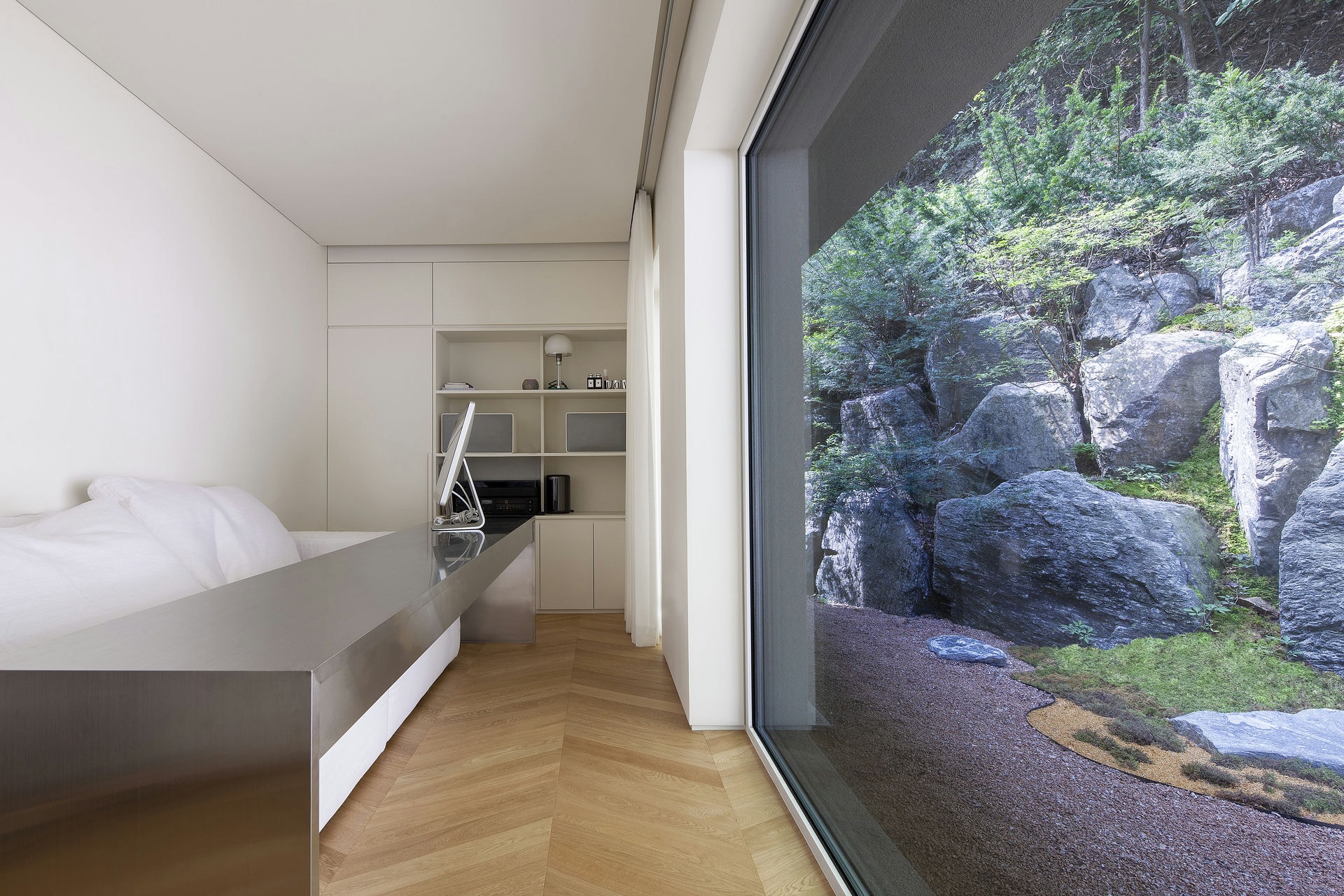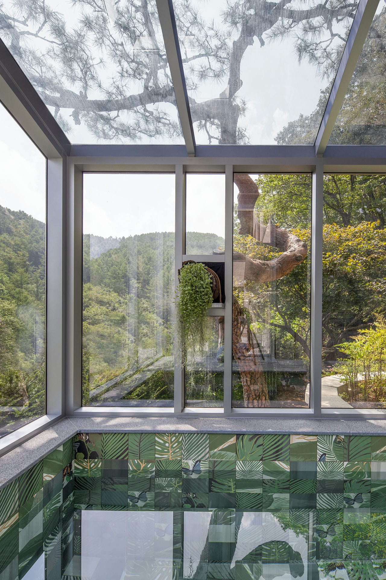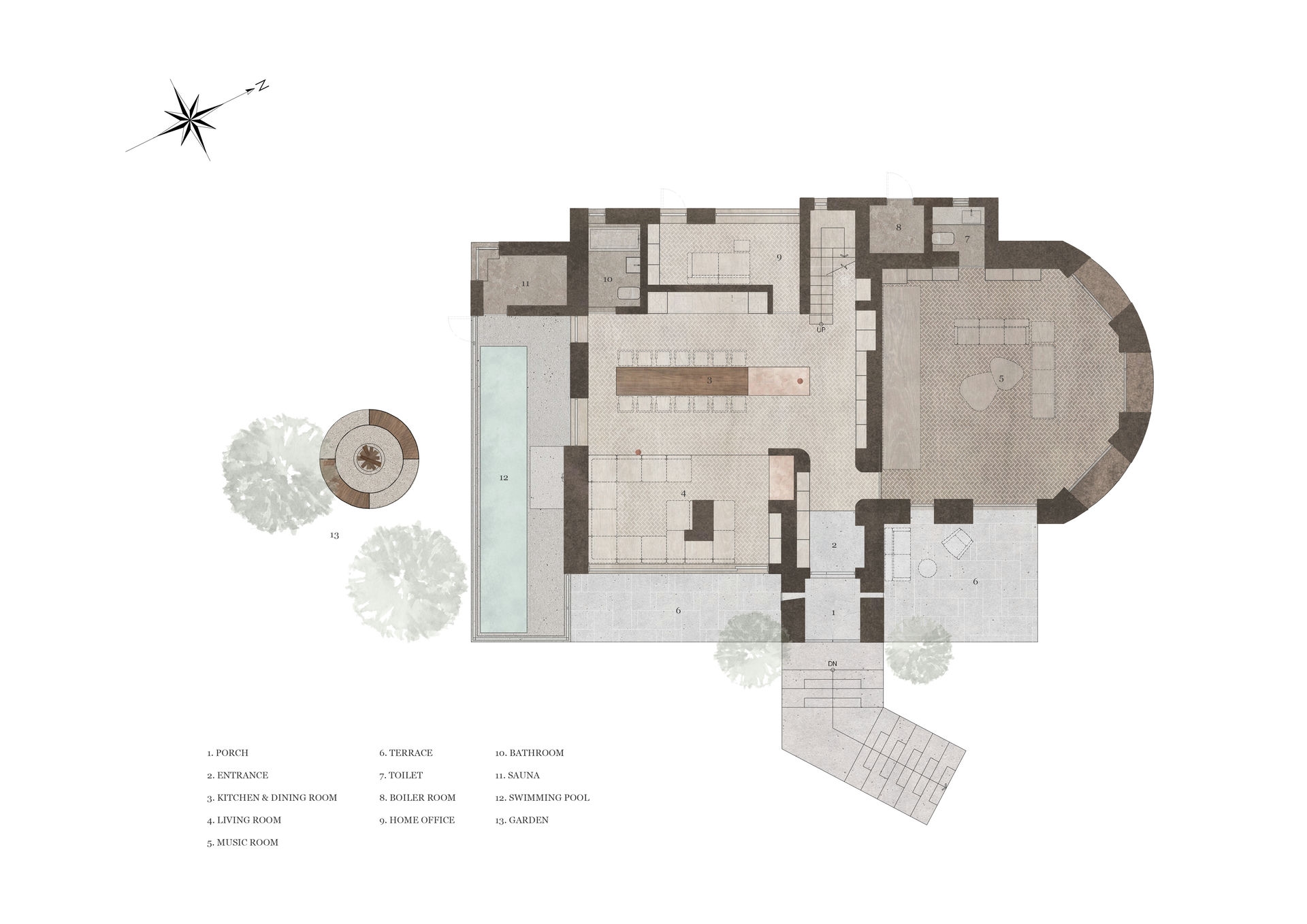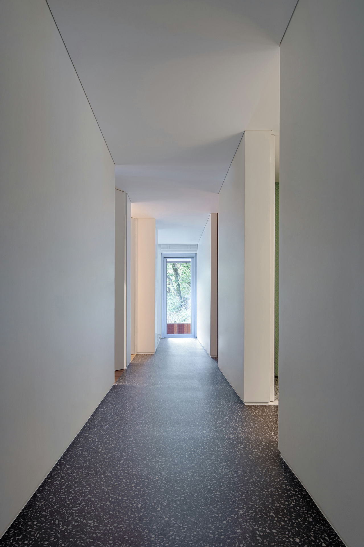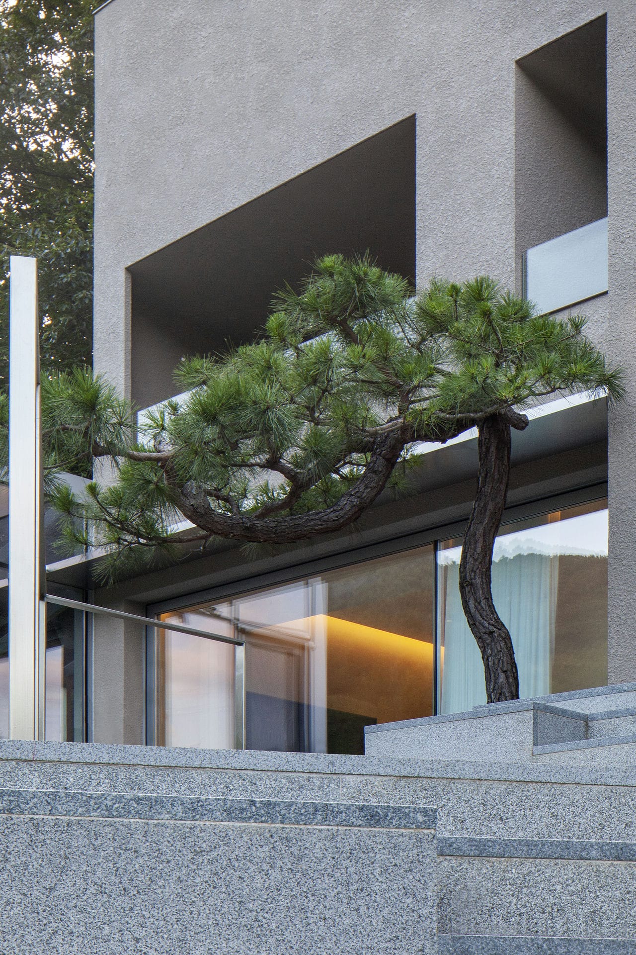 프로젝트 빌라렌토ㅣ백에이어소시에이츠 서울 근교, 번잡하고 산만한 것들을 여과하는 긴 산길을 따라 오르다 보면 깊고 고요한 마을 끝에 다다른다. 바쁘고 버거웠던 도시의 템포가 잊히는 장소이다. 우리는 예술과 자연을 아낌없이 찬미하는 이들의 느리고 안녕한 시간의 흐름을 되찾아줄 서정의 공간, 빌라렌토를 이 곳에 구축했다. Keywords 100Aassociates 100A 백에이어소시에이츠 백에이 안광일건축가 박솔하건축가 VILLALENTO 빌라렌토 고요한마을 도시의템포가잊히는장소 술과자연 느리고안녕한시간 서정의공간 자연과여가를사유할수있는공간 휴양공간 유럽의한적한마을 자연의빛깔투영 여가의공간 사적인휴식 수영과사우나 음악실 빈티지 자쿠지 필란드식사우나 독립된베란다 서울에 거주하고 있는 클라이언트는 서울근교에 자연과 여가를 사유할 수 있는 공간이자 그들의 소중한 사람들과 공유할 수 있는 휴양공간을 필요로 했고, 산머리에 숲을 등지고 주변을 한눈에 조망할 수 있는 약 20년 정도 된 주택을 구입했다. 우리는 건축을 올려다보며 진입해야 하는 진입방식과 기존 건축의 형태 그리고 클라이언트의 취향을 고려해 유럽의 한적한 마을 어딘가에 있을법한 작은 저택을 상상하며 요란했던 형태를 단순하게 다듬고 시간의 깊이가 더해질 질감과 색감들을 입히면서 자연의 빛깔을 투영하기를 바랐다.두 개의 층으로 나누어진 공간은 함께 여가를 나눌 수 있는 층과 사적인 휴식을 음미할 수 있는 층으로 나누었다. 1층 여가의 공간은 함께 음식을 나누고 대화하며 음악을 듣고 수영과 사우나를 즐길 수 있는 공간으로 창을 통해 내부로 들어오는 자연의 아름다움을 해치지 않도록 낮고 단순한 형태를 갖게 하되 유니크한 요소들을 배치하여 클라이언트의 취향을 반영했다. 빈티지 스피커와 LP를 수집하는 클라이언트의 음악실은 기존 거실로 사용되었던 공간으로 (빈티지 스피커에서 영감을 받아) 촌스럽지만 독특한 천장의 형태를 그대로 사용하고 붉은 목재를 사용해 어수룩하고 투박한 분위기에서 섬세한 음향으로 음악을 즐길 수 있도록 했다. 2층 휴식의 공간은 복도를 중심으로 4개의 침실, 자쿠지와 필란드식 사우나를 포함한 공용욕실 2개가 있는데 각 공간마다 창과 독립된 작은 베란다를 배치해 자연을 조망하며 사적인 휴식을 충분히 음미할 수 있도록 했다.그는 소년과 같은 마음으로 이 공간의 과정을 관찰하고 기록하고 질문했다. 매 순간 호기심 어린 눈으로 바라보던 그의 총기는 지독하게 소란스럽고 산만한 우리를 반성하게 했다. 우리는 단순하게 여가와 휴식을 사유하는 공간이 아니라 그들에게 안녕한 시간의 흐름을 되찾아줄 공간이 되길 바라면서 이 공간에 빌라렌토라는 이름을 남긴다.빌라렌토 VILLA LENTOㅣ100A associates 2021 위 치 | 경기도 광주시 퇴촌면 Gwangju-si, Gyeonggi-do면 적 | 313.80㎡외 벽 | 치장벽돌, 테라코 사하라 마감바 닥 | 고흥석, 원목마루, 타일, LVT 마감 벽 | 템버보드, 타일, 도장 마감천 정 | 도장 마감창 호 | 시스템 창호설계 | 백에이어소시에이츠 100A associates대표 건축가 | 안광일 Kwangil An, 박솔하 Solha Park글 | 백에이어소시에이츠 100A associates사진 | 김재윤 Jaeyoun Kim