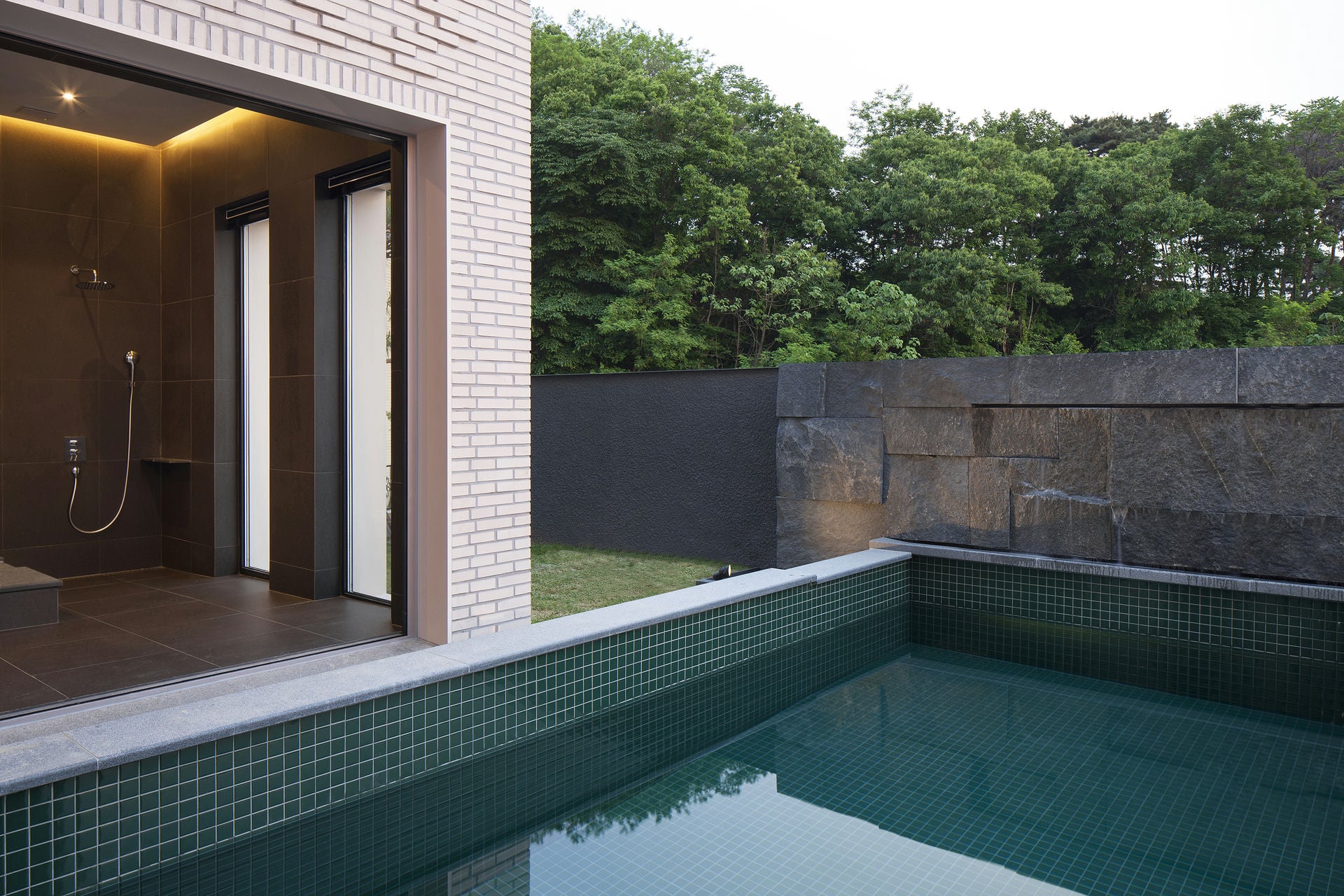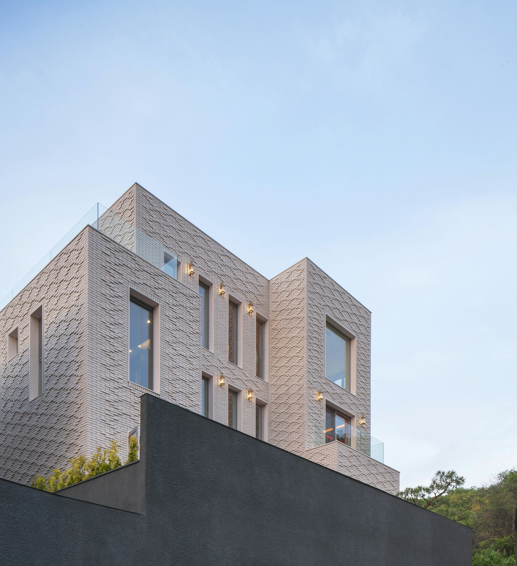 프로젝트 까사 카바나ㅣ백에이어소시에이츠 Casa Cabana (까사 카바나) 는 서울 근교에 위치한 개인 주택으로, 두 자녀를 둔 부부의 보금자리이다. 여행을 좋아하는 이들은 해외의 수많은 여행지와 호텔을 다니며 자신들이 원하는 집에 대한 아이디어를 축적해 왔다. 이들이 원하는 공간은 도심 속 휴양지와 같은 공간이 되어 여행을 다니는 듯한 느낌을 주어야 했다. Keywords 100Aassociates 100A 백에이어소시에이츠 백에이 안광일건축가 박솔하건축가 CASACABANA 까사 카바나 개인주택 도심속휴양지같은공간 부티크호텔 다양한소재와색감 벽돌을쌓으며만들어낸독특한패턴 건축주의개성 호텔의엔터테인먼트체험 주차장 자동차쇼룸 다이닝룸 수영장 자쿠지 벽천 100A associates는 설계에 앞서 그들만을 위한 부티크 호텔을 상상했다. 따라서 최소한의 요소로만 표현하는 것을 지향했던 기존 성향과는 달리 다양한 소재와 색감을 사용했다. 특히, 단순한 형태의 외관에 벽돌을 쌓으며 만들어낸 독특한 패턴은 자연과 조화를 이루면서도 건축주의 개성을 고스란히 드러낸다. 공간은 총 4개 층으로 구성된다. 호텔 리셉션처럼 연출된 지하 1층, 연회장과 같은 1층, 부부의 침실과 라운지 바가 있는 2층, 그리고 자녀들의 방이 있는 3층이다. 이러한 층별 구성은 마치 로비에 들어서서 호텔의 엔터테인먼트를 체험하고 객실에 머무는 것과 같은 느낌을 선사한다.공간에 진입하자마자 마주하게 되는 곳은 주차장이다. 입구에서 현관까지 향하는 길 양쪽에 위용을 드러내는 주차공간이 마련되어 있다. 집이 아닌 자동차 쇼룸처럼 보였으면 좋겠다는 클라이언트의 바람이 반영된 것이다. 계단을 한 층 올라 들어서게 되는 공간에는 더욱 다채로운 색상과 재료들이 적용되었다. 지인들을 초대하여 함께 식사할 수 있는 다이닝룸, 부부의 휴식을 위한 수영장, 자쿠지, 벽천 등은 이들의 생활을 더욱 극명하게 보여준다. 까사 카바나는 국내의 주거 형태에서는 좀처럼 볼 수 없는 공간 양식이다. 다소 생소하게 다가오기도 하지만, 휴식을 취할 수 있는 공간임을 직관적으로 느낄 수 있다. 고급스러운 호텔처럼 정돈된 공간이 주는 안락함은 건축주가 삶의 즐거움을 맛보며 에너지를 얻을 수 있는 원천이 될 것이다.CASA CABANAㅣ100A associates 2018 위 치 | 경기도 용인시 기흥구 서천동 Yongin-si, Gyeonggi-do면 적 | 108.39 ㎡외 벽 | 스페인 수입 벽돌 마감바 닥 | 타일, 석재, 원목 마루 마감 벽 | 테라코사하라, 도장, 벽돌, 타일 마감천 정 | 도장 마감창 호 | 시스템 창호설계ㆍ시공 | 백에이어소시에이츠 100A associates대표 건축가 | 안광일 Kwangil An, 박솔하 Solha Park글 | 백에이어소시에이츠 100A associates사진 | 김재윤 Jaeyoun Kim