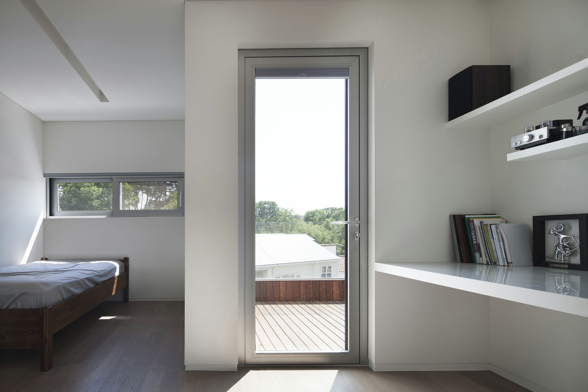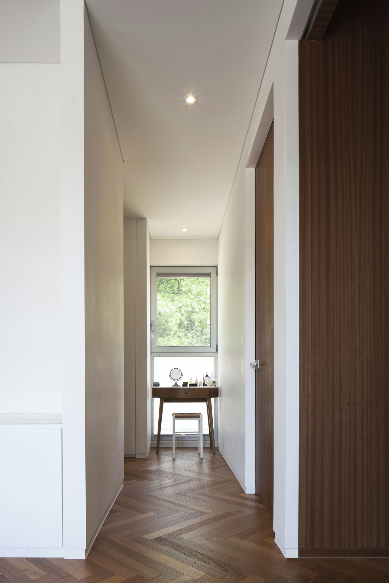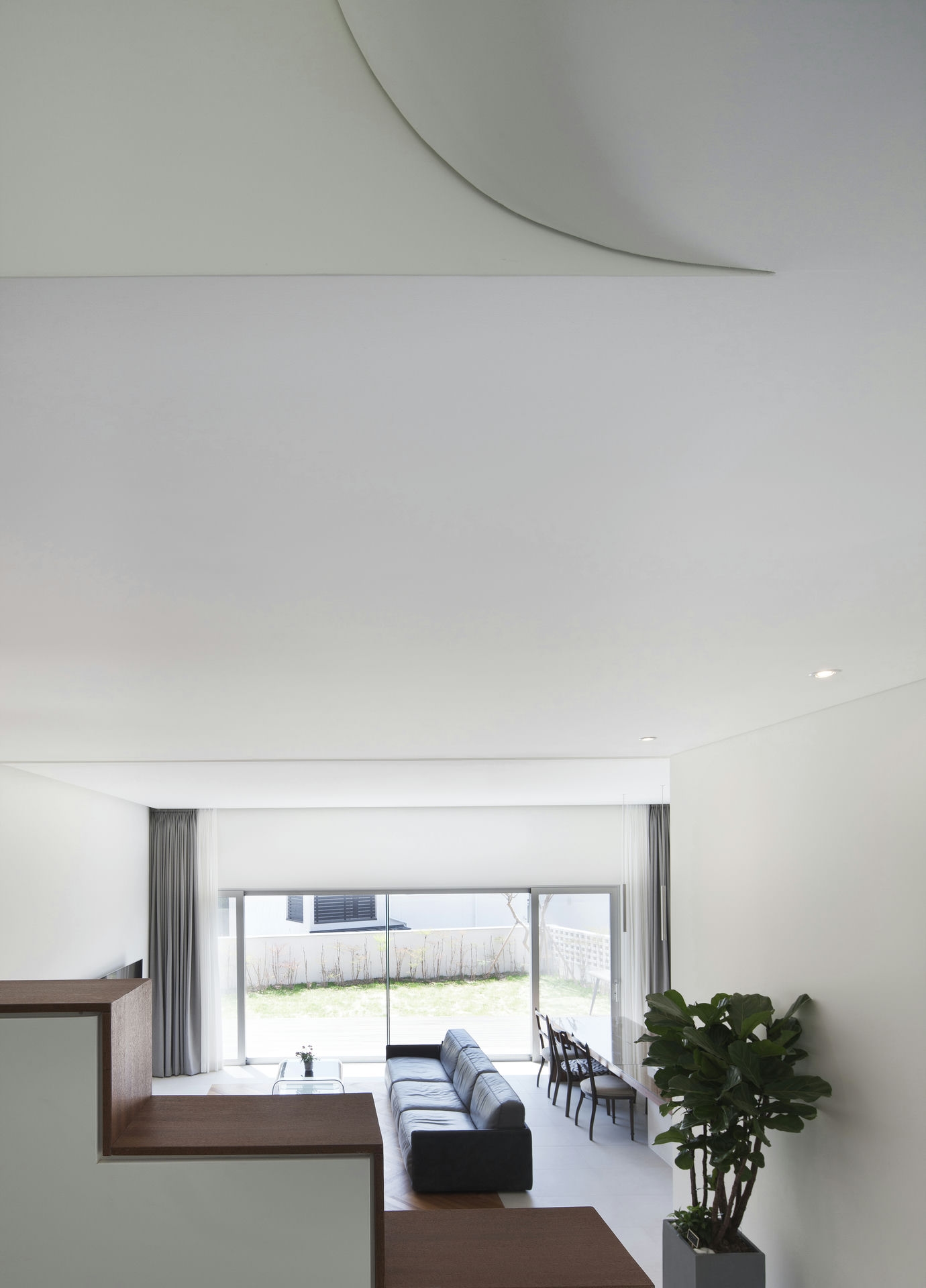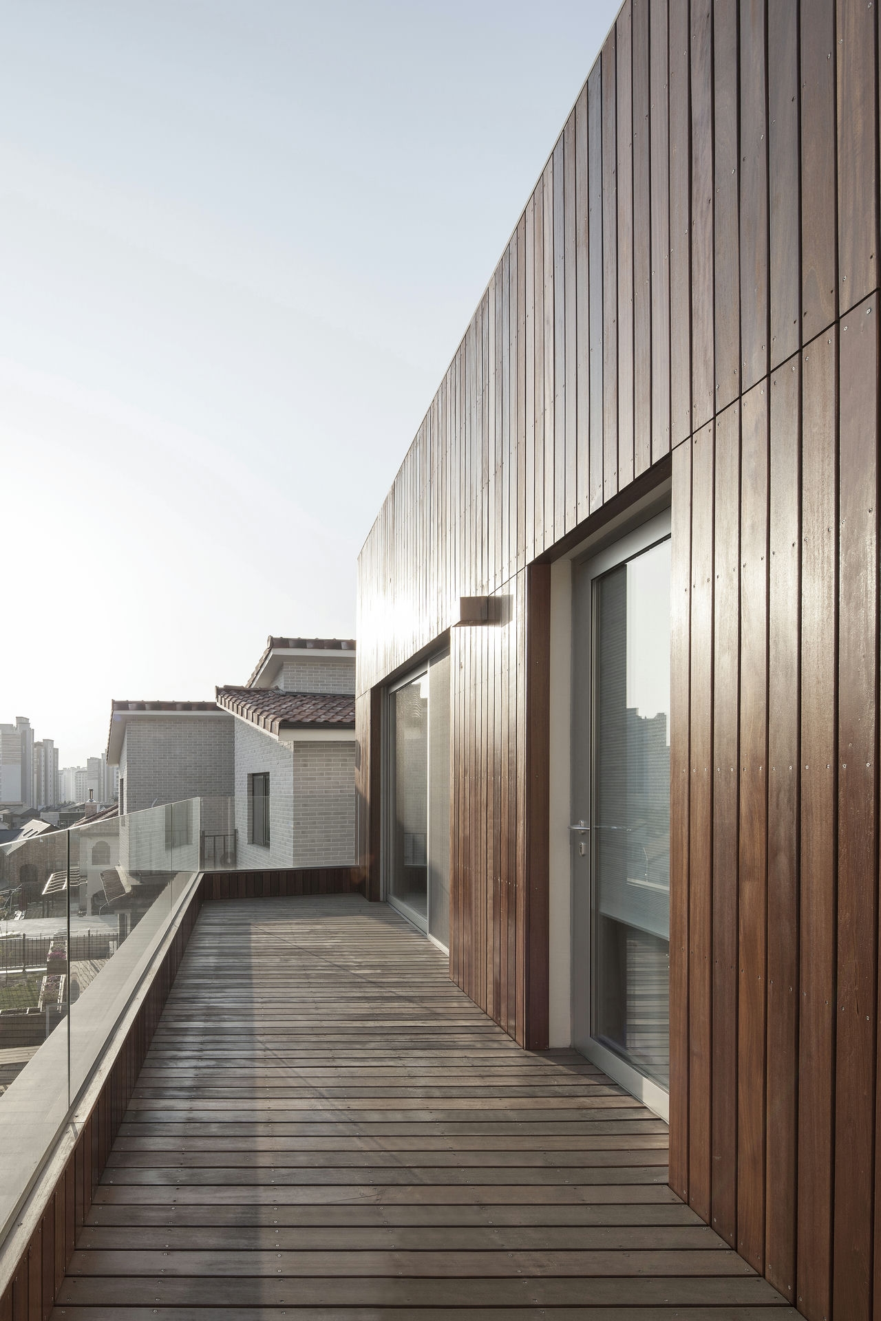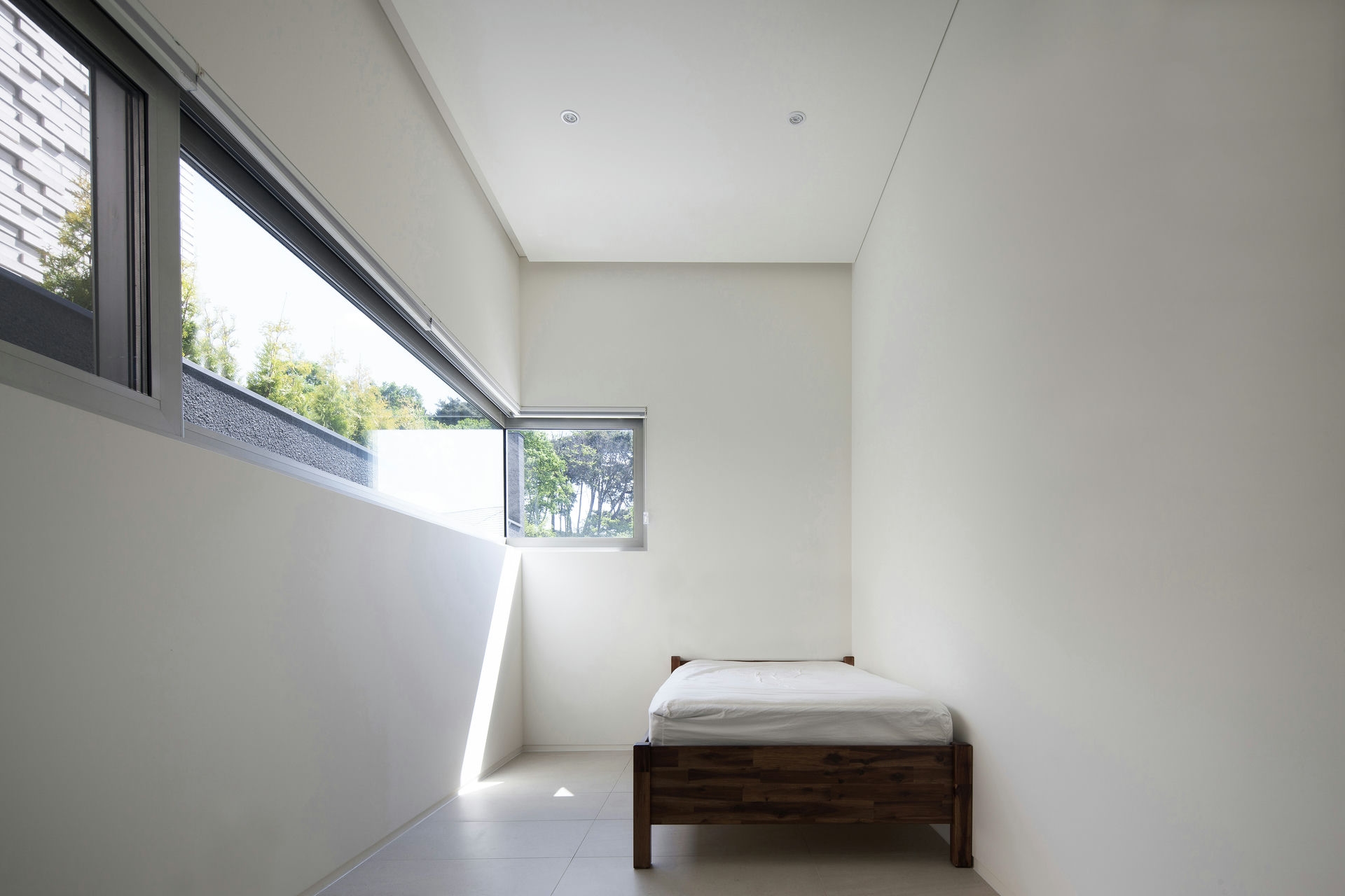 프로젝트 시그니처 하우스ㅣ백에이어소시에이츠 우리는 이 공간의 이름을 애둘러 표현하지 않고 직설적으로 시그니처 하우스라 정했다. 강렬했던 첫 만남의 인상을 가감 없이 드러냈기 때문이다. 전체 육십 평의 이 공간은 오십 대 사업가 부부가 노년을 보내기 위해 설계를 의뢰했다. 대화를 이어가면서 그들의 생각(집에 대한 의견들과 취향)을 이해하는 과정은 그들이 사는 모습 자체가 이 집의 형식을 구성하는 결정적인 단서가 되도록 했다. 단순함의 무게를 갖되 그 안에 온기를 품고 있는 공간이어야 했다. 밀집된 아파트 단지 사이, 숨구멍처럼 낮은 산으로 둘러싸인 마을에 위치한 대지는 마을 안쪽을 향한 남서쪽은 빛을 받기 좋고 마을 바깥쪽으로 향한 북동쪽은 근경으로 녹지를 조망할 수 있는 형태의 땅이었다. 대지를 경계로 마을 안쪽과 바깥쪽의 높이 차가 약 5미터, 지하층을 두어 마을 안쪽의 집들보다 높은 대지레벨을 계획할 수 있어 시각적 확장을 얻을 수 있는 조건이었다. Keywords 100Aassociates 100A 백에이어소시에이츠 백에이 안광일건축가 박솔하건축가 SIGNATUREHOUSE 시그니처하우스 용인전원주택 사는모습자체가집의형식을구성 온기를품은공간 시각적확장 계단 전이공간 심리적안정감 공간의흐름 외강내유 삶의축적 마을에 진입하여 마주하는 건축의 지하층에 해당하는 매스는 나란히 나열된 이웃집들과 위화감 없이 어우러지게 하되, 마을의 바깥쪽에서 마주하는 건축의 형태는 될수록 단순하게 하여 콘크리트의 무게만을 두어 주위와 대립시켰다. 앞마당의 면적을 최대로 확보하기 위해 내부공간을 뒤로 물리고 높은 벽 사이의 좁은 계단을 통해 진입하도록 하여 전이공간으로서 심리적 긴장감을 갖도록 했다. 이 긴장감을 안고 내부공간에 들어섰을 때 마주하는 농밀한 온기는 심리적 안정감을 준다. 공간과 공간의 조직을 가능한 단순하게 하고 크고 작은 프레임을 통해 다시 공간의 흐름을 갖게 함으로써 섬세한 균형을 이루는 공간이 되도록 했다. 결과적으로 이 공간은 주인으로부터 얻은 단서를 표면으로 드러내는 과정을 통해서 外剛內柔한 공간으로 구축된 셈이다. 주거공간은 결국 공간과 그곳에서 삶을 영위해 나아갈 사람만 남는다. 흥미로운 것은 그들의 사고와 삶의 방식을 이해하고 그것들을 공간에 담았을 때 비로서 그들의 삶이 담기어지기 시작한다는 것이다. 이 공간 또한 앞으로 그들의 삶이 축적되어 그들이 사는 모습 자체의 공간이 되길 바란다.SIGNATURE HOUSEㅣ100A associates 2018 위 치 | 경기도 용인시 기흥구 서천동 Yongin-si, Gyeonggi-do면 적 | 110.19㎡외 벽 | 노출콘크리트 위 발수코팅, 멀바우 데크재, 테라코사하라바 닥 | 포세린타일, 원목마루벽 | 도장, 무늬목천 정 | 도장창 호 | 시스템 창호설계ㆍ시공 | 백에이어소시에이츠 100A associates대표 건축가 | 안광일 Kwangil An, 박솔하 Solha Park글 | 백에이어소시에이츠 100A associates사진 | 김재윤 Jaeyoun Kim
