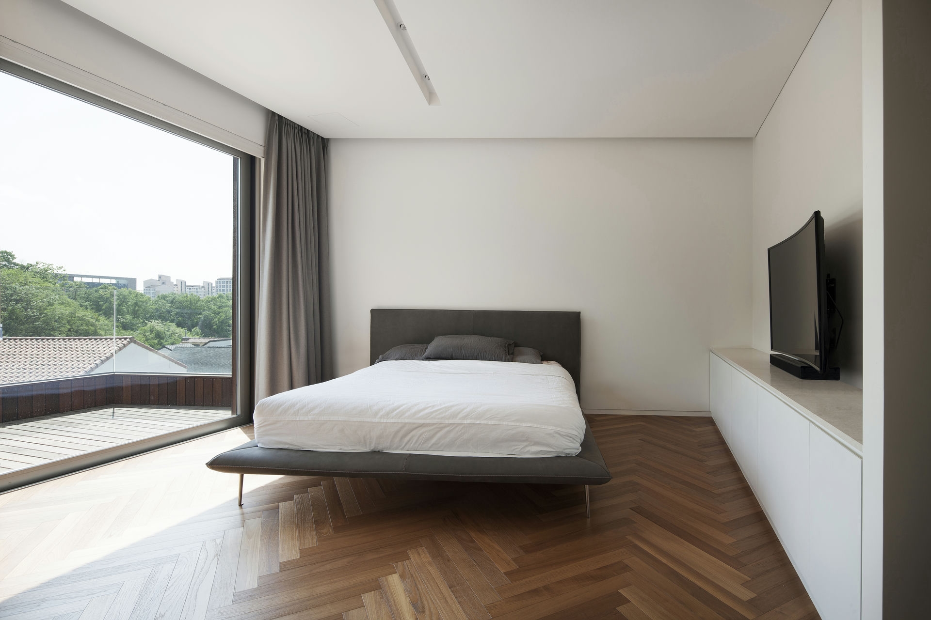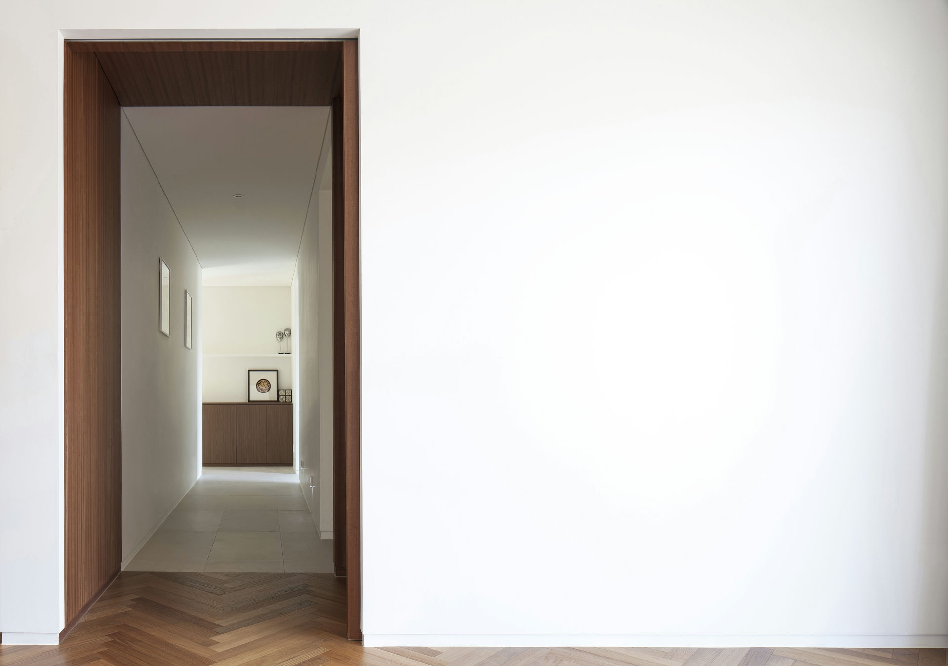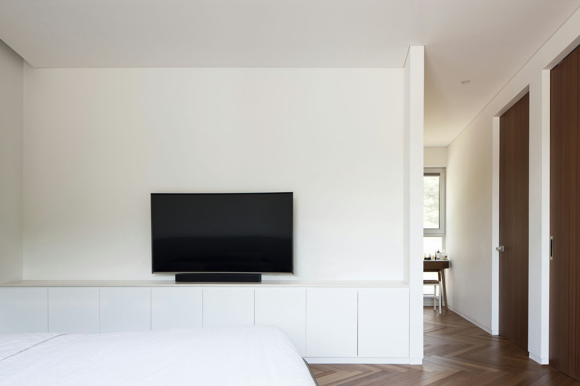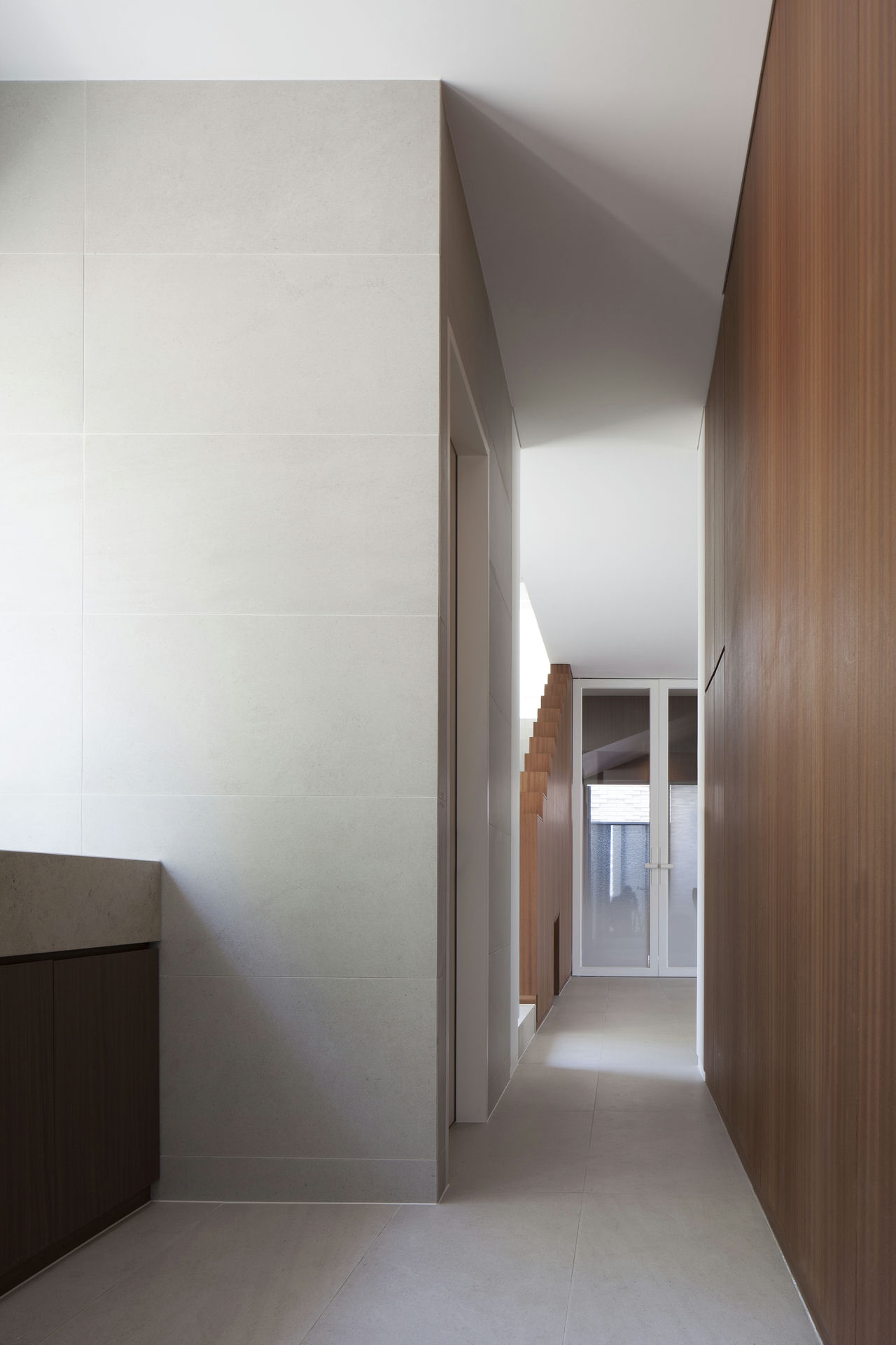 프로젝트 시그니처 하우스ㅣ백에이어소시에이츠 우리는 이 공간의 이름을 애둘러 표현하지 않고 직설적으로 시그니처 하우스라 정했다. 강렬했던 첫 만남의 인상을 가감 없이 드러냈기 때문이다. 전체 육십 평의 이 공간은 오십 대 사업가 부부가 노년을 보내기 위해 설계를 의뢰했다. 대화를 이어가면서 그들의 생각(집에 대한 의견들과 취향)을 이해하는 과정은 그들이 사는 모습 자체가 이 집의 형식을 구성하는 결정적인 단서가 되도록 했다. 단순함의 무게를 갖되 그 안에 온기를 품고 있는 공간이어야 했다. 밀집된 아파트 단지 사이, 숨구멍처럼 낮은 산으로 둘러싸인 마을에 위치한 대지는 마을 안쪽을 향한 남서쪽은 빛을 받기 좋고 마을 바깥쪽으로 향한 북동쪽은 근경으로 녹지를 조망할 수 있는 형태의 땅이었다. 대지를 경계로 마을 안쪽과 바깥쪽의 높이 차가 약 5미터, 지하층을 두어 마을 안쪽의 집들보다 높은 대지레벨을 계획할 수 있어 시각적 확장을 얻을 수 있는 조건이었다. Keywords 100Aassociates 100A 백에이어소시에이츠 백에이 안광일건축가 박솔하건축가 SIGNATUREHOUSE 시그니처하우스 용인전원주택 사는모습자체가집의형식을구성 온기를품은공간 시각적확장 계단 전이공간 심리적안정감 공간의흐름 외강내유 삶의축적 마을에 진입하여 마주하는 건축의 지하층에 해당하는 매스는 나란히 나열된 이웃집들과 위화감 없이 어우러지게 하되, 마을의 바깥쪽에서 마주하는 건축의 형태는 될수록 단순하게 하여 콘크리트의 무게만을 두어 주위와 대립시켰다. 앞마당의 면적을 최대로 확보하기 위해 내부공간을 뒤로 물리고 높은 벽 사이의 좁은 계단을 통해 진입하도록 하여 전이공간으로서 심리적 긴장감을 갖도록 했다. 이 긴장감을 안고 내부공간에 들어섰을 때 마주하는 농밀한 온기는 심리적 안정감을 준다. 공간과 공간의 조직을 가능한 단순하게 하고 크고 작은 프레임을 통해 다시 공간의 흐름을 갖게 함으로써 섬세한 균형을 이루는 공간이 되도록 했다. 결과적으로 이 공간은 주인으로부터 얻은 단서를 표면으로 드러내는 과정을 통해서 外剛內柔한 공간으로 구축된 셈이다. 주거공간은 결국 공간과 그곳에서 삶을 영위해 나아갈 사람만 남는다. 흥미로운 것은 그들의 사고와 삶의 방식을 이해하고 그것들을 공간에 담았을 때 비로서 그들의 삶이 담기어지기 시작한다는 것이다. 이 공간 또한 앞으로 그들의 삶이 축적되어 그들이 사는 모습 자체의 공간이 되길 바란다.SIGNATURE HOUSEㅣ100A associates 2018 위 치 | 경기도 용인시 기흥구 서천동 Yongin-si, Gyeonggi-do면 적 | 110.19㎡외 벽 | 노출콘크리트 위 발수코팅, 멀바우 데크재, 테라코사하라바 닥 | 포세린타일, 원목마루벽 | 도장, 무늬목천 정 | 도장창 호 | 시스템 창호설계ㆍ시공 | 백에이어소시에이츠 100A associates대표 건축가 | 안광일 Kwangil An, 박솔하 Solha Park글 | 백에이어소시에이츠 100A associates사진 | 김재윤 Jaeyoun Kim