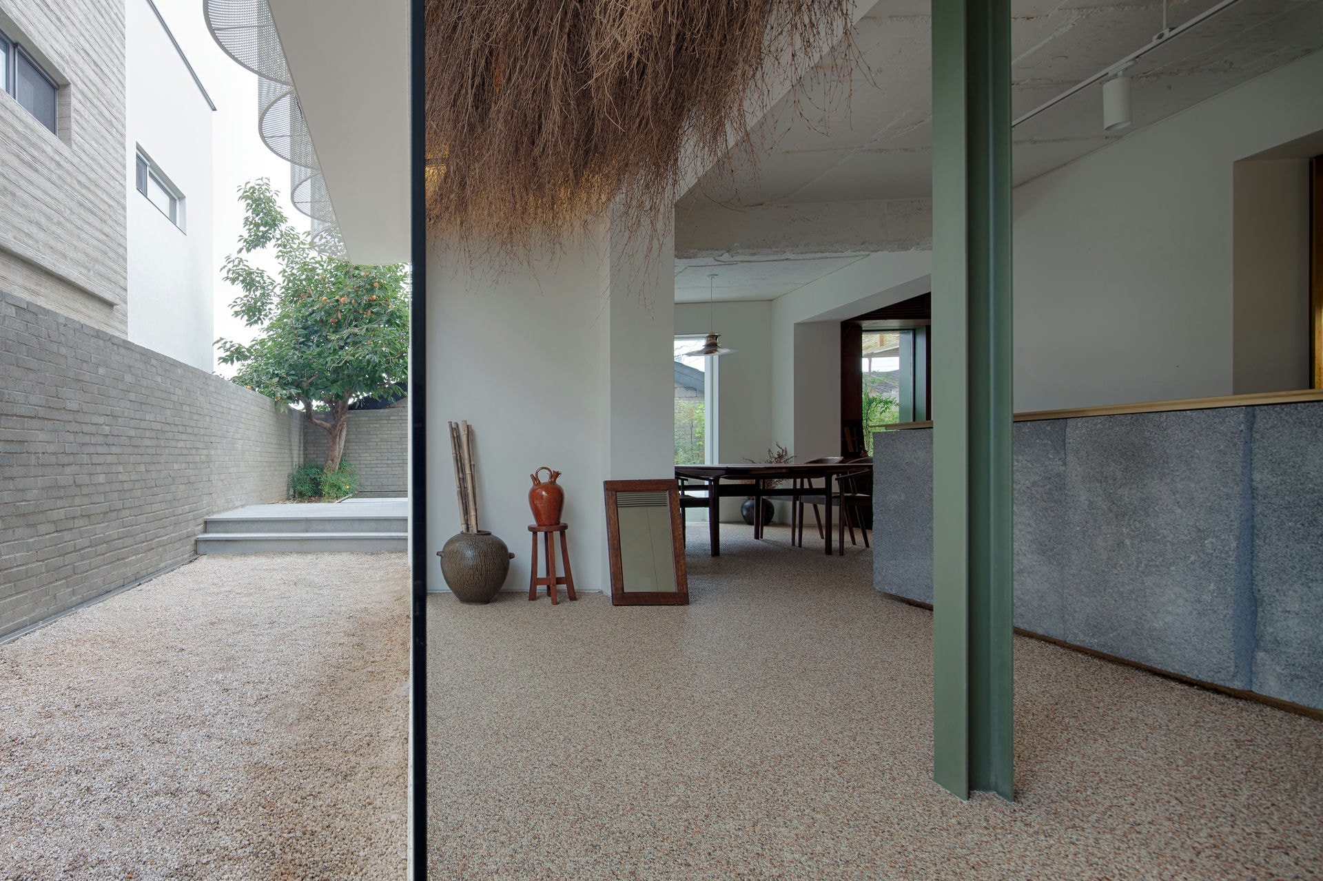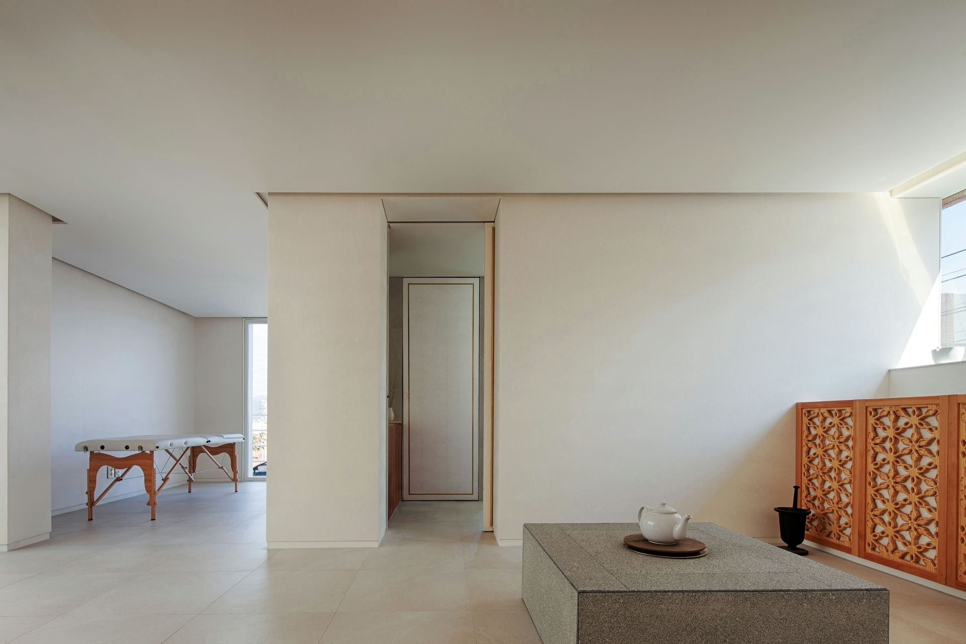 프로젝트 향심재ㅣ백에이어소시에이츠 향심재의원은 대구에 위치한 가정의학과와 피부과가 결합된 형태의 의원으로 기존의 의원 혹은 병원의 일반적인 형태와는 다른 진보적인 서비스를 제공하는 130평방미터의 공간이다. 우리는 클라이언트가 이 공간에서 이루어 나가고자 하는 생각과 목표 혹은 미래에 대하여 대화하고 공유함으로서 공간 디자인의 개념들을 순차적으로 구축해 나갔다. 클라이언트는 이 공간을 찾아오는 사용자들에게 단순한 진료의 프로그램이 아닌 개별적, 지속적, 포괄적 진료를 목표에 두었고 이를 위해서 그들과 친밀감, 신뢰, 대화의 공간을 필요로 했다. 이는 단순하게 외치에만 집중하는 것이 아닌 질병의 예방과 보기의 발견, 의사와 환자의 친밀한 관계를 통한 심리치료를 병행함으로서 ‘주치의’로서 환자의 외치와 내치 모두 집중하기 위함이다. 이러한 서비스를 제공하기 위해 여러 사람의 접근성을 제한하고 공간에 머무르는 사용자의 수를 제한한 사유 공간의 분위기를 조성하여 휴식과 치유의 공간으로 구축했다. 또한 소수의 사용자들이 공간에 머무는 시간동안 충분한 휴식과 빛 등의 자연요소를 사유할 수 있도록 편안하고 친밀함을 유도하는 운영 프로그램에 대해 고민했다. Keywords 100Aassociates 100A 백에이어소시에이츠 백에이 안광일건축가 박솔하건축가 HYANGSIMJAE CLINIC 향심재 향심재의원 대구 진보적인서비스 개별적지속적포괄적진료 친밀감신뢰대화의공간 사유공간 휴식치유의공간 자연요소 투박하고검박한외관 수작업으로가공 예술적인질감 금속과유리 도시성반영 시간의분위기 부엌 의사의마음을먼저보이는공간 나누고싶은것들로채워진공간 건강한식사 대접하는집 사유공간 진정한치유와휴식을경험 우리는 외관을 디자인하면서 혼란스러운 도시와 대조적인 태도로 투박하고 검박한 외관을 만들고자 했는데 이 투박한 질감을 위해 수작업으로 가공하여 예술적인 질감을 얻을 수 있었다. 투박한 질감에서 디테일한 소재로 적용된 금속과 유리의 선택은 도시성을 반영한다. 굳게 닫힌 대문을 열고 아주 천천히 정원을 따라 공간으로 진입하는 동선을 계획했는데, 처음 마주하게 되는 정원은 빛뿐만 아니라 자연, 날씨, 시간의 흐름과 같은 ‘시간의 분위기’를 담은 공간이다. 이 ‘시간의 분위기’는 혼란스런 도시와 대조되는 분위기의 연속성으로 진정한 휴식과 여유 그리고 환영을 의미한다. 또한 동선을 계획하면서 공간에 들어설 때 향심재의원의 특별함을 가장 먼저 볼 수 있는 곳에 배치하는 것을 중요하게 생각했다. 그렇게 우리가 공간에서 가장 먼저 볼 수 있도록 배치한 것은 ‘부엌’이다. 재미있는 의원이지 않은가. 공간 초입에 부엌이 보이는 의원이라는 것이! 이에 대한 이야기는 클라이언트가 의원을 운영하고자 하는 철학에서 비롯되었다. 하얀 가운을 입고 작은 책상에서 환자의 얼굴을 흘깃 한번 보고 빠르게 진료가 끝나는 것이 아닌, 앞치마를 두르고 차 혹은 커피 한 잔 가끔 직접 구워내는 쿠키나 빵을 곁들이면서 의사와 환자가 아닌 서로 눈을 맞추고 안색을 살피며 사람과 사람과의 대화를 하기 위해서이다. 때로는 그들을 위해 간단한 식사를 대접하기도 하고 그들이 스스로 건강한 식사를 할 수 있도록 식자재나 음식을 만드는 방법을 교육하기도 한다. 향심재의원의 ‘부엌’은 이곳을 찾는 이들과 마음을 나누기 위해서 의사의 마음을 먼저 보이는 공간으로 그가 좋아하는 것. 아름답다고 생각하는 것, 나누고 싶은 것들로 채워진 공간이다. 치료에 집중하기 위한 공간은 기존의 고전적인 요소가 필요하지만 이를 간결하고 최소한으로 구성, 곳곳에서 의사의 정원과 마음을 볼 수 있게 함으로서 고전적인 분위기가 아닌 그의 사유공간에서 진정한 치유와 휴식을 경험할 수 있도록 했다. 돌이켜 생각해 보니 클라이언트와 우리는 이 공간을 담담하게 만들어 나갔던 것 같다. 그럼에도 불구하고 이 공간을 독특하게 만드는 점은 향심재의원의 이름처럼 마음을 다해 생각하고 대접하는 집(鄕心.齋)이기 때문이다.향심재 HYANGSIMJAE CLINICㅣ100A associates 2020위 치 | 대구광역시 수성구 만촌동 Suseong-gu, Daegu면 적 | 130㎡외 벽 | 볏집, 칼라서스, 타일 철거면, 테라코사하라 마감바 닥 | 콩자갈, 타일 마감벽 | 도장, 한지벽지 마감천 정 | 도장 마감창 호 | 현장 제작설계ㆍ시공 | 백에이어소시에이츠 100A associates대표 건축가 | 안광일 Kwangil An, 박솔하 Solha Park글 | 백에이어소시에이츠 100A associates사진 | 김재윤 Jaeyoun Kim