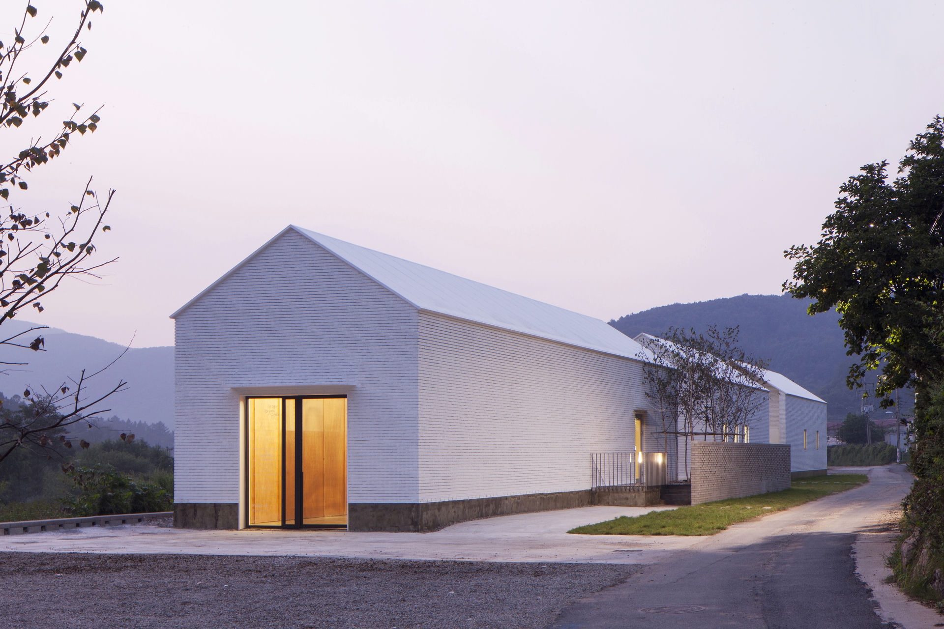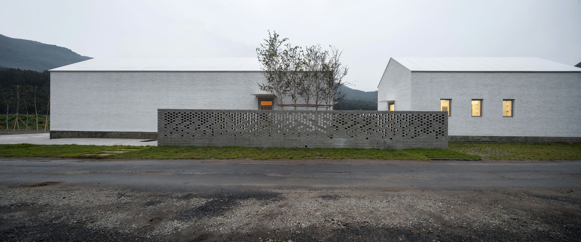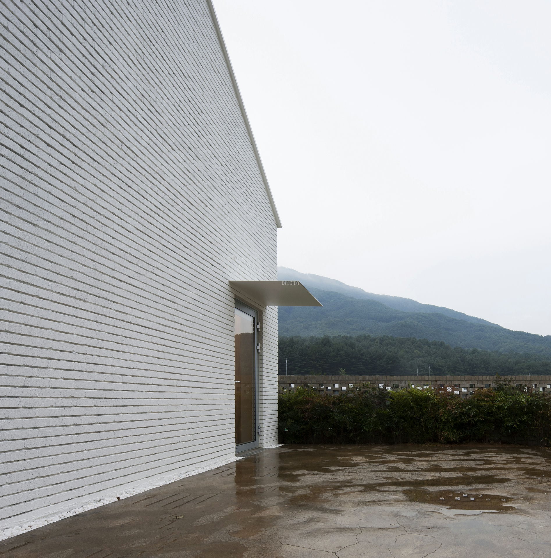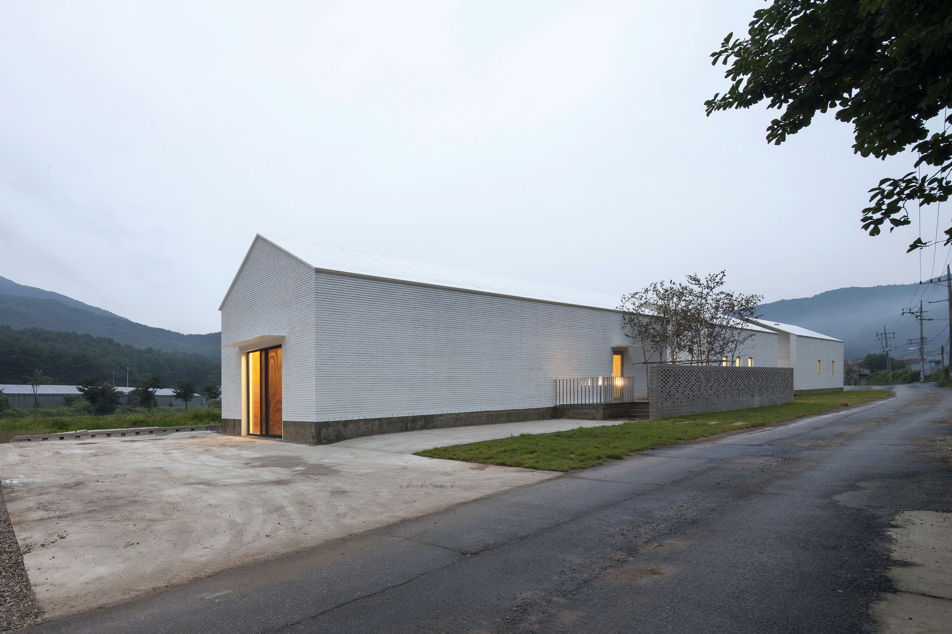 프로젝트 갤러리오피스 ZAINㅣ백에이어소시에이츠 이유라는 단어의 사전적인 의미로는 ‘존재의 기초가 되거나 어떤 사상이 진리라고 할 수 있는 조건,’이라 풀이 된다. 우리는 이 공간을 설계할 때 건축주의 생각을 듣고 그 의미를 표면으로 드러내며 공간의 가치가 되는 이유를 정립하는 과정을 통해서 공간이 어떤 의미를 가져야 하고 어떤 방향으로 나아가야 하는지 생각해야 했다. 한 기업가의 열정적인 눈빛이 인상적이었던 첫 만남에서 우리는 건축주가 가지고 있는 경영 철학과 브랜드의 가치를 높이기 위한 생각에 대해 들을 수 있었다. Keywords 100Aassociates 100A 백에이어소시에이츠 백에이 안광일건축가 박솔하건축가 ZAIN Gallery&Office 갤러리 공간의가치가되는이유 경영철학 브랜드의가치 경기도광주 전시공간 창의적인사고 자연과의소통 휴머니즘 장인정신 체험공간 전시공간 사무실 기숙사 고객과직원의동선분리 공간의연결 전이공간 수평적연계 자연환경과균형 기업에서 직장생활을 하며 꿈꾸었던 독립과 현실을 마주했을 때의 괴리감, 그리고 그 과정을 견뎌낸 자부심이 우리에게 고스란히 전해졌었다. 프로젝트는 공공디자인 및 환경시설물 전문 디자인그룹 Zain의 브랜드 철학을 담은 공간을 구축함으로서 브랜드의 가치를 올릴 수 있도록 기업의 기존 공간과 관계를 형성하는 것부터 출발했다. 경기도 광주에 위치한 제품생산 공장부지 맞은편에 브랜드의 철학과 방향성을 관람할 수 있는 전시공간을 두어 기업의 모토(창의적인 사고, 자연과의 소통, 휴머니즘 그리고 장인정신)를 모두 아우를 수 있는 공간으로 계획했다. 쉽게 말하자면, 이 공간을 소비자가 방문했을 때 기업의 철학과 방향성, 제품의 아이디어와 디자인 그리고 생산과정까지 한번에 체험할 수 있는 공간이 될 수 있도록 계획된 공간이다. 굽이굽이 나 있는 좁은 도로를 따라 마주하는 대지는 낮은 산으로 둘러싸인 좁고 긴 형태로 대지의 형태적 특성을 활용하여 각 공간의 목적에 따라 매스를 분리하되 공간과 공간을 연결해 주는 외부 공간을 두어 수평적으로 연계되어 보이도록 했다. 이는 사방으로 펼쳐진 낮은 산 능선과 같은 흐름을 갖게 함으로써 자연환경과 균형을 이루는 공간이 되기 위함이다. 공간의 구성은 크게 소비자들이 브랜드의 철학과 신제품들을 볼 수 있는 전시공간, 사무실, 기숙사로 나누어지는데 고객과 직원의 동선을 기능적으로 분리하기 위함이다. 박공지붕의 백색매스는 주변 산 능선과 어우러지게 자리 잡고 건물과 같은 축으로 세워진 두 개의 회색매스는 파사드의 리름감과 전이공간으로서의 심리적 안정감을 주고, 분리된 건축의 매스를 연결해주는 역할을 하도록 했다. 결과적으로 좁고 긴 대지의 형태적 취약점을 낮고 긴 건축의 형태를 통해 주변 경관과 어우러질 수 있도록 하고 공간의 목적에 맞게 분리된 공간을 배치함으로써 드라마틱한 효과를 얻은 셈이다. 열과 성을 다 한 프로젝트는 언젠가 끝이 나고 건축주에게 좋은 공간을 선물할 시간을 맞는다. 우리가 프로젝트를 진행하며 느낀 건축주의 생각들이 열과 성을 다 하여 이 공간을 통해 더 많은 사람들에게 전해질 수 있는 단초가 되길 바란다. ZAIN Gallery & Officeㅣ100A associates 2017 위 치 | 경기 광주시 도척면 상림리 Gwangju-si, Gyeonggi-do면 적 | 265.5㎡외 벽 | 벽돌 마감바 닥 | 타일, 에폭시, 데크 마감벽 | 도장, 합판 마감천 정 | 도장 마감설계ㆍ시공 | 백에이어소시에이츠 100A associates대표 건축가 | 안광일 Kwangil An, 박솔하 Solha Park글 | 백에이어소시에이츠 100A associates사진 | 김재윤 Jaeyoun Kim