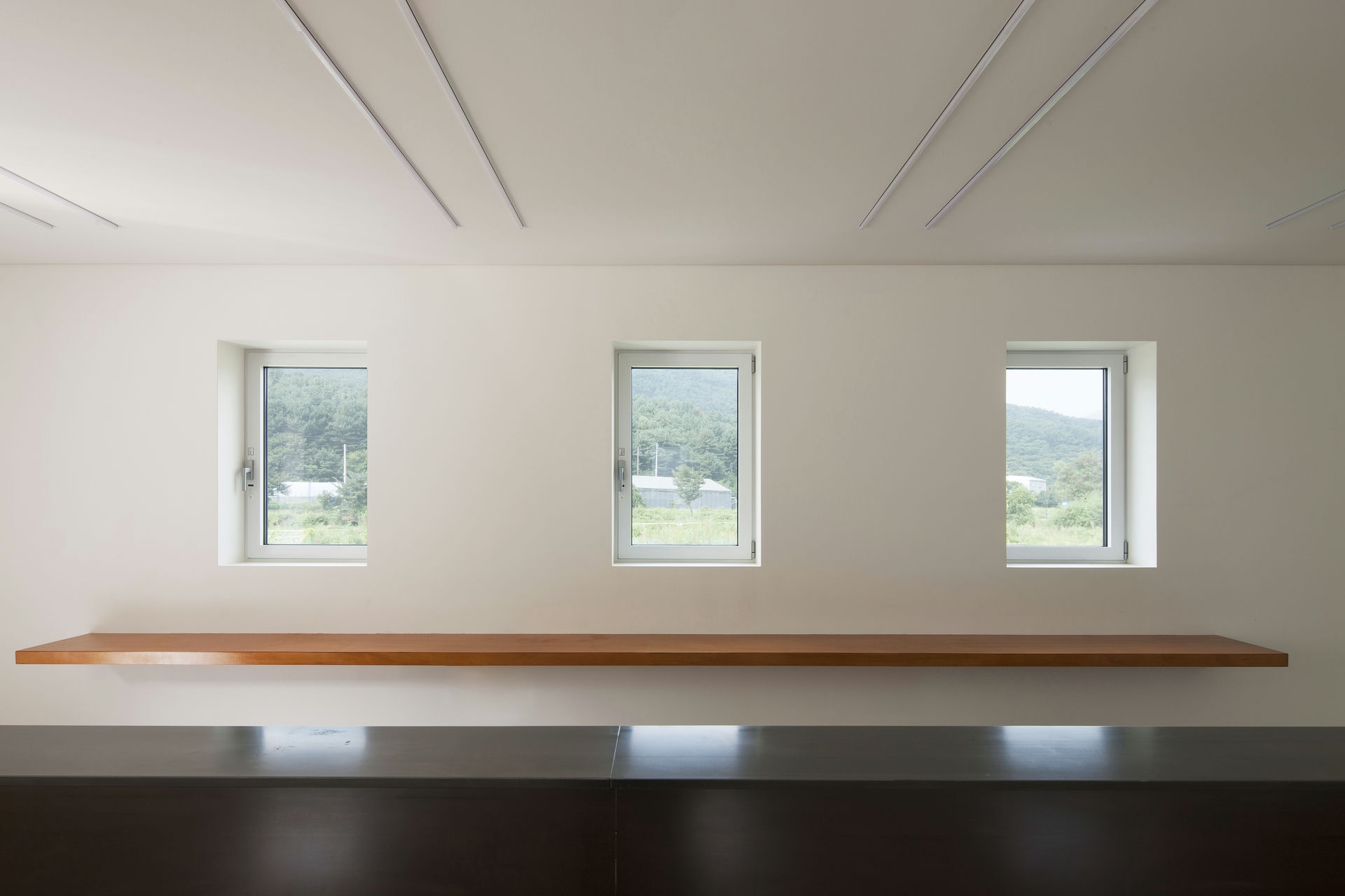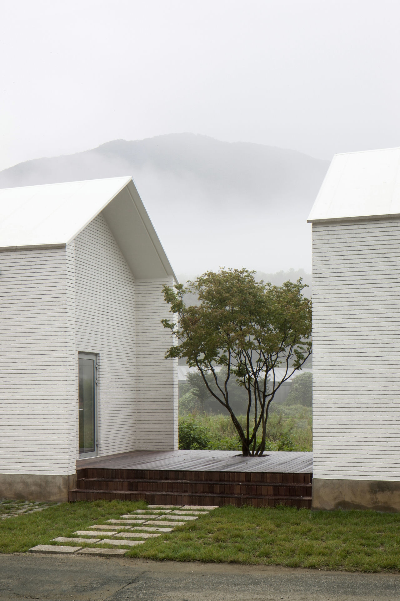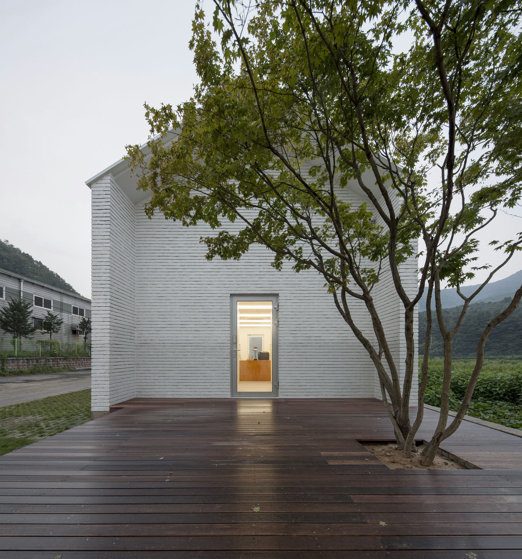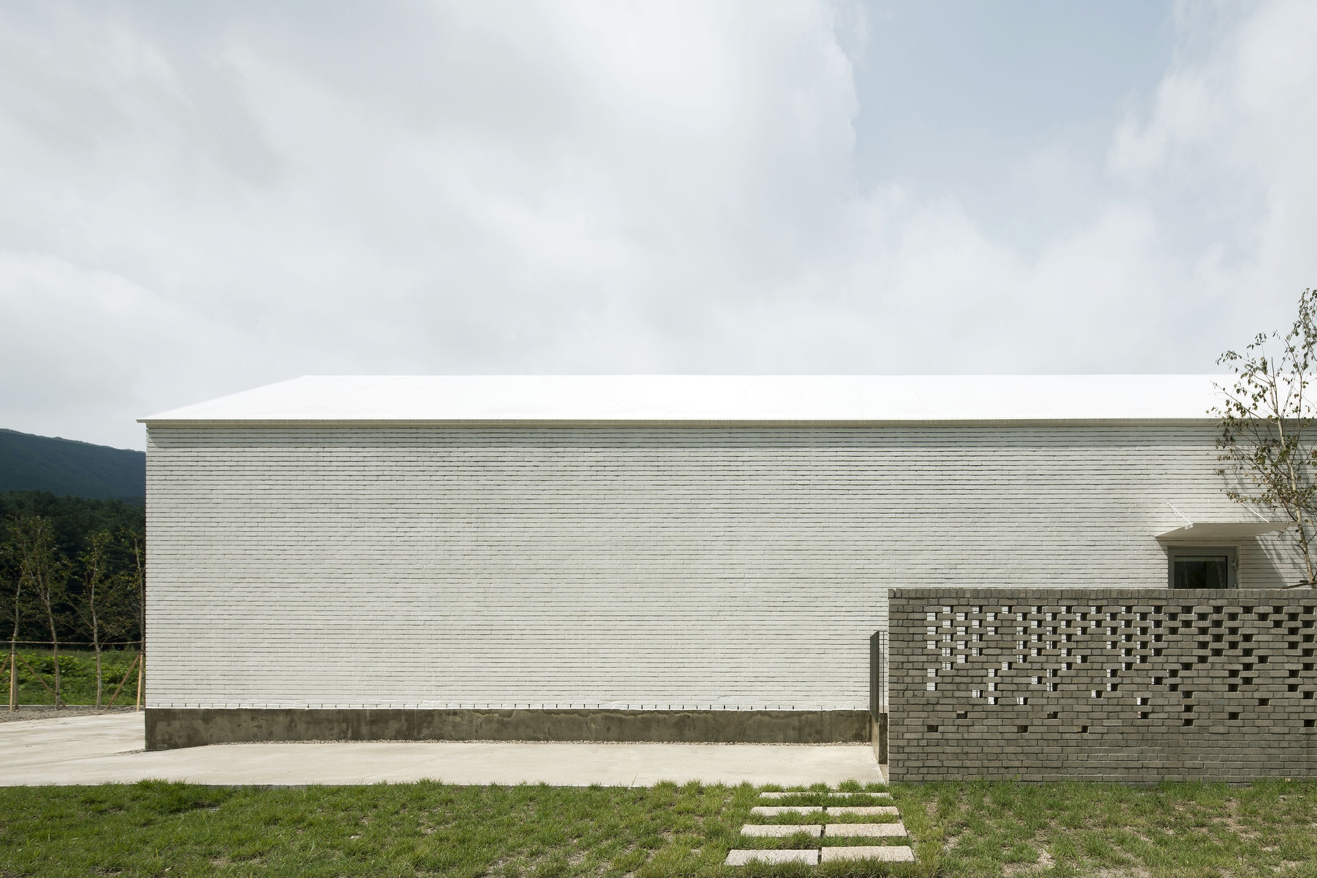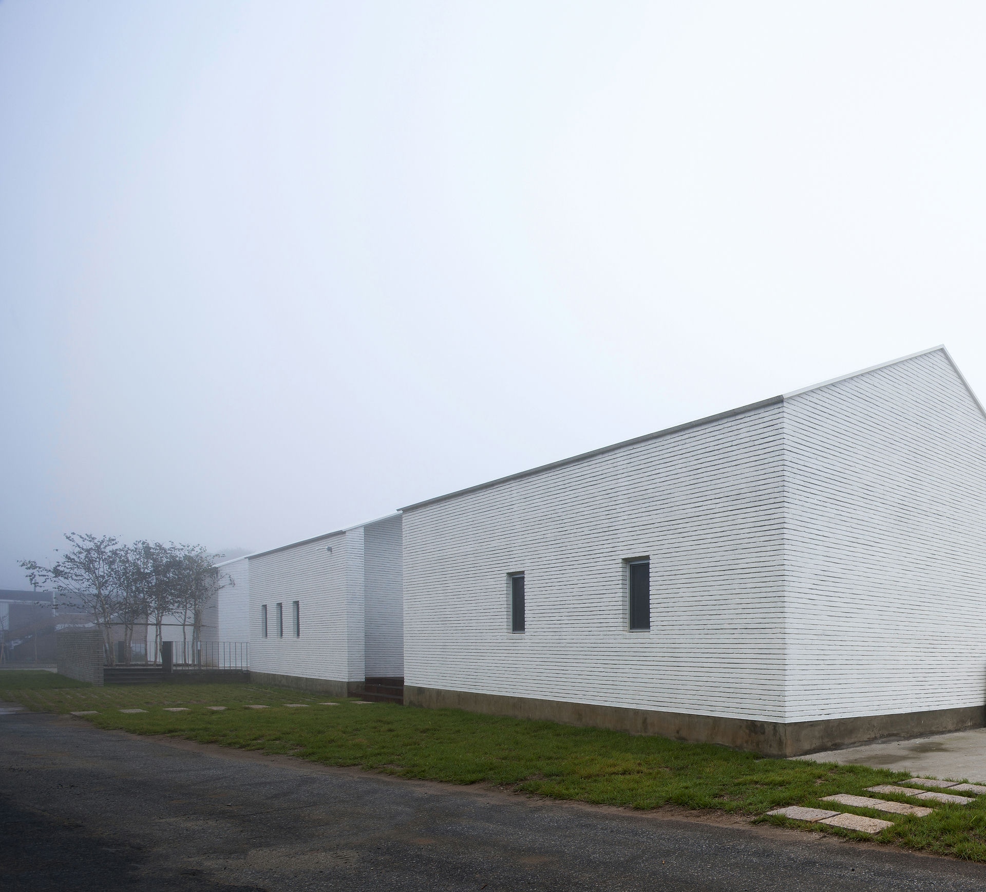 프로젝트 갤러리오피스 ZAINㅣ백에이어소시에이츠 이유라는 단어의 사전적인 의미로는 ‘존재의 기초가 되거나 어떤 사상이 진리라고 할 수 있는 조건,’이라 풀이 된다. 우리는 이 공간을 설계할 때 건축주의 생각을 듣고 그 의미를 표면으로 드러내며 공간의 가치가 되는 이유를 정립하는 과정을 통해서 공간이 어떤 의미를 가져야 하고 어떤 방향으로 나아가야 하는지 생각해야 했다. 한 기업가의 열정적인 눈빛이 인상적이었던 첫 만남에서 우리는 건축주가 가지고 있는 경영 철학과 브랜드의 가치를 높이기 위한 생각에 대해 들을 수 있었다. Keywords 100Aassociates 100A 백에이어소시에이츠 백에이 안광일건축가 박솔하건축가 ZAIN Gallery&Office 갤러리 공간의가치가되는이유 경영철학 브랜드의가치 경기도광주 전시공간 창의적인사고 자연과의소통 휴머니즘 장인정신 체험공간 전시공간 사무실 기숙사 고객과직원의동선분리 공간의연결 전이공간 수평적연계 자연환경과균형 기업에서 직장생활을 하며 꿈꾸었던 독립과 현실을 마주했을 때의 괴리감, 그리고 그 과정을 견뎌낸 자부심이 우리에게 고스란히 전해졌었다. 프로젝트는 공공디자인 및 환경시설물 전문 디자인그룹 Zain의 브랜드 철학을 담은 공간을 구축함으로서 브랜드의 가치를 올릴 수 있도록 기업의 기존 공간과 관계를 형성하는 것부터 출발했다. 경기도 광주에 위치한 제품생산 공장부지 맞은편에 브랜드의 철학과 방향성을 관람할 수 있는 전시공간을 두어 기업의 모토(창의적인 사고, 자연과의 소통, 휴머니즘 그리고 장인정신)를 모두 아우를 수 있는 공간으로 계획했다. 쉽게 말하자면, 이 공간을 소비자가 방문했을 때 기업의 철학과 방향성, 제품의 아이디어와 디자인 그리고 생산과정까지 한번에 체험할 수 있는 공간이 될 수 있도록 계획된 공간이다. 굽이굽이 나 있는 좁은 도로를 따라 마주하는 대지는 낮은 산으로 둘러싸인 좁고 긴 형태로 대지의 형태적 특성을 활용하여 각 공간의 목적에 따라 매스를 분리하되 공간과 공간을 연결해 주는 외부 공간을 두어 수평적으로 연계되어 보이도록 했다. 이는 사방으로 펼쳐진 낮은 산 능선과 같은 흐름을 갖게 함으로써 자연환경과 균형을 이루는 공간이 되기 위함이다. 공간의 구성은 크게 소비자들이 브랜드의 철학과 신제품들을 볼 수 있는 전시공간, 사무실, 기숙사로 나누어지는데 고객과 직원의 동선을 기능적으로 분리하기 위함이다. 박공지붕의 백색매스는 주변 산 능선과 어우러지게 자리 잡고 건물과 같은 축으로 세워진 두 개의 회색매스는 파사드의 리름감과 전이공간으로서의 심리적 안정감을 주고, 분리된 건축의 매스를 연결해주는 역할을 하도록 했다. 결과적으로 좁고 긴 대지의 형태적 취약점을 낮고 긴 건축의 형태를 통해 주변 경관과 어우러질 수 있도록 하고 공간의 목적에 맞게 분리된 공간을 배치함으로써 드라마틱한 효과를 얻은 셈이다. 열과 성을 다 한 프로젝트는 언젠가 끝이 나고 건축주에게 좋은 공간을 선물할 시간을 맞는다. 우리가 프로젝트를 진행하며 느낀 건축주의 생각들이 열과 성을 다 하여 이 공간을 통해 더 많은 사람들에게 전해질 수 있는 단초가 되길 바란다. ZAIN Gallery & Officeㅣ100A associates 2017 위 치 | 경기 광주시 도척면 상림리 Gwangju-si, Gyeonggi-do면 적 | 265.5㎡외 벽 | 벽돌 마감바 닥 | 타일, 에폭시, 데크 마감벽 | 도장, 합판 마감천 정 | 도장 마감설계ㆍ시공 | 백에이어소시에이츠 100A associates대표 건축가 | 안광일 Kwangil An, 박솔하 Solha Park글 | 백에이어소시에이츠 100A associates사진 | 김재윤 Jaeyoun Kim