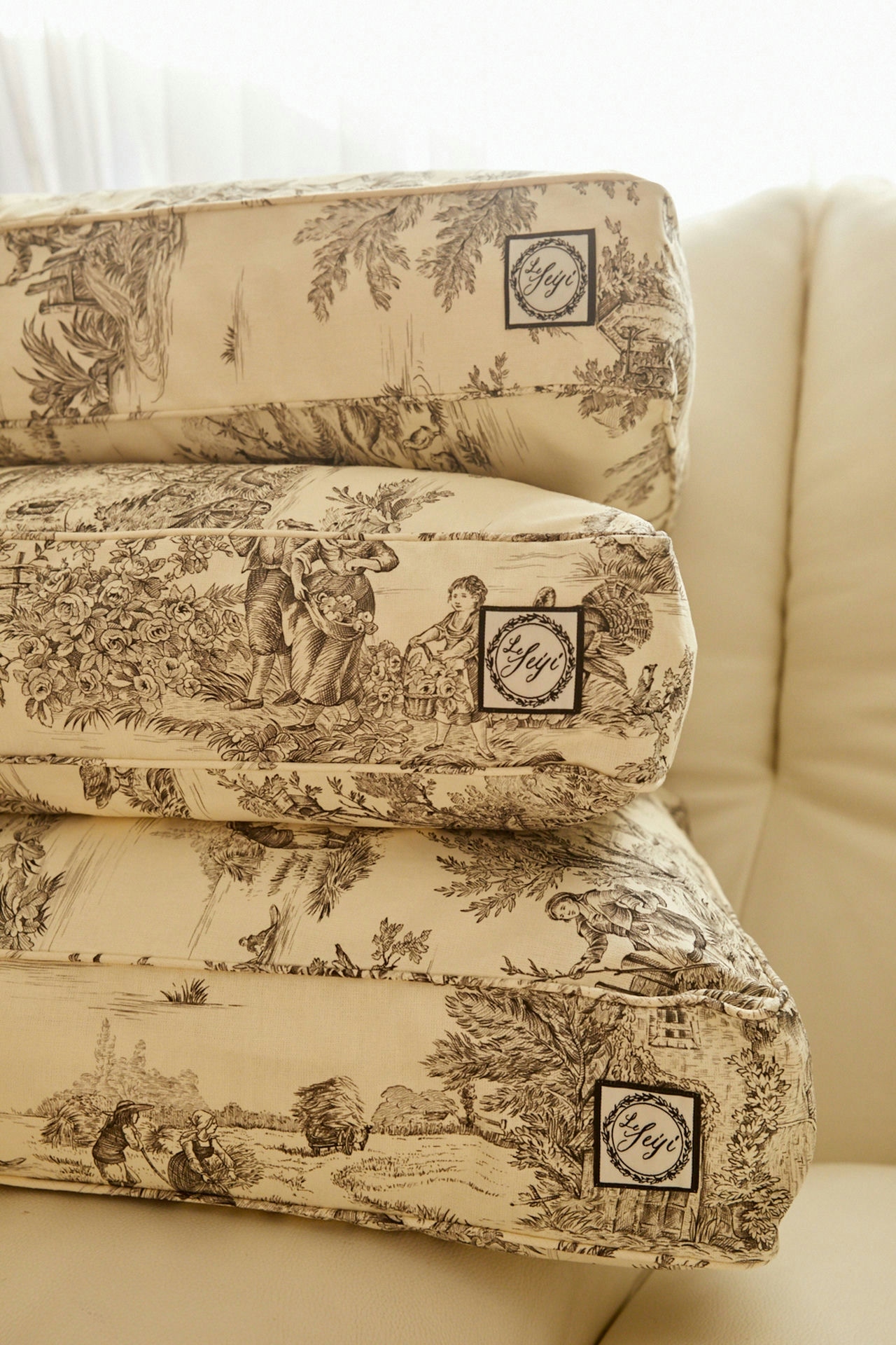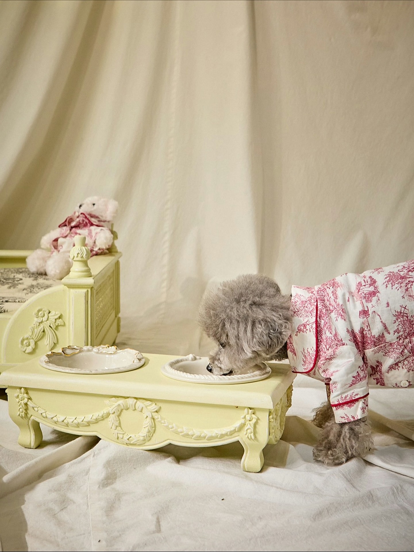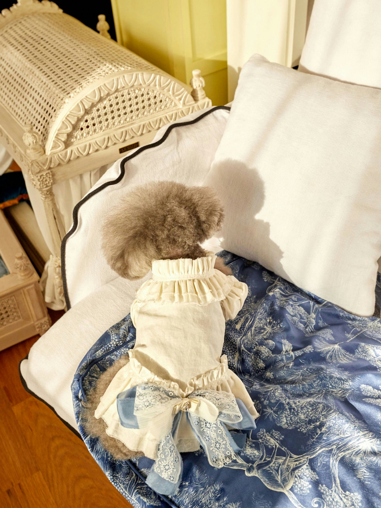 LIVING & FASHION┃LE SEIJI LE SEIJI┃르세이지 LE SEIJI(르세이지)는 반려동물을 위한 프렌치 스타일의 럭셔리 리빙 브랜드입니다. 그 시작은 가족 사진과 반려동물 사진을 기반으로 광고와 패션 화보를 제작해온 Seiji Studio에서 비롯되었습니다. 14세기부터 18세기까지 유럽 왕실의 도그 하우스에서 영감을 받아, LE SEIJI의 대표작인 르세이지 하우스가 탄생했습니다. 왕의 반려견이 머물던 집처럼 최고의 품질을 재현하고자 철저한 연구 끝에 전 세계 어디에도 없는 독창적인 하우스를 완성했습니다. LE SEIJI는 단순한 가구를 넘어, 반려동물과 가족이 조화롭게 살아가는 아름답고 풍요로운 라이프스타일을 제안합니다. 모든 제품은 클래식한 예술성과 현대적인 편안함을 담아내며, 프랑스 장인의 손길로 정교하게 완성되고, 자연을 존중하는 지속 가능한 소재로 만들어집니다. 소중한 반려동물과 함께하는 매일의 순간을 LE SEIJI와 함께 예술로 승화시켜보세요. Keywords LESEIJI 르세이지 반려동물 프렌치스타일 럭셔리리빙브랜드 유럽왕실 도그하우스 LeseijiHouse 르세이지하우스 DînerDeÉléonore 르세이지다이닝테이블 디네드엘레오노르 빈티지스타일 ToileDeJouyCushionCover 뜨왈드주이 쿠션커버 펜화풍경 고전적인감성 살롱아트 SalonArt MiniVelvetTassleCushion 미니벨벳태슬쿠션 RobeDeGenevieve 로브드제네비에브 나이트가운 ToileDeJouyPajama 뜨왈드주이파자마 “르세이지는 고급스럽고 세련된 프렌치 스타일을 바탕으로 편안함과 감각적인 디자인을 추구하는 프리미엄 하이엔드 브랜드입니다. 애견 리빙, 패션, 액세서리를 전문적으로 제작하며, 반려동물과 함께하는 일상을 더욱 럭셔리하게 만들어 드리는 것을 목표로 하고 있습니다. 르세이지의 모든 제품은 반려동물과 보호자 간의 유대감을 강화하고, 함께하는 즐거운 경험을 중요시하며 정성껏 제작되고 있습니다.”DÎNER DE ÉLÉONORE┃르세이지 다이닝 테이블 디네 드 엘레오노르 디네 드 엘레오노르는 르세이지 브랜드의 클래식 다이닝 테이블로, 조용한 아침 햇살 아래 정원의 작은 테이블에서 사랑스러운 친구와 함께 식사를 나누던 따스하고 우아한 풍경에서 영감을 받았습니다. 장인의 정교한 손길로 깎아낸 빈티지 스타일의 테이블과 손으로 직접 구운 프렌치 스타일의 도자기 식기가 한 쌍으로 구성되어 있습니다. 디네 드 엘레오노르는 르세이지 하우스, 아르무아 드 오렐리 클로젯과 함께 페어링하여 반려동물의 공간을 더욱 럭셔리하고 아름답게 꾸밀 수 있습니다. 네 가지 사랑스럽고 클래식한 디자인으로 준비된 도자기 식기는 반려동물의 식사 시간을 한층 우아하게 만들어 줄 것입니다. Size : Wood Table W 410mm x D 210mm x H 120mm 1.5kg Ceramic Bowl W 165mm x H 65mm 500gTOILE DE JOUY CUSHION COVER | 르세이지 뜨왈 드 주이 쿠션 커버 르세이지 하우스의 뜨왈 드 주이 쿠션 커버는 프랑스 본고장에서 수입한 정통 TOILE DE JOUY 패브릭으로 완성되었습니다. 18세기 유럽의 섬세한 펜화 풍경과 고전적인 감성이 어우러진 이 텍스타일 위에 르세이지만의 절제된 우아함을 더해 공간에 품격을 더합니다. 단순한 패브릭이 아닌 하나의 살롱 아트(SALON ART)로서, 르세이지 하우스와 완벽한 조화를 이루어 당신과 반려동물에게 가장 어울리는 특별한 패브릭 선택을 제안합니다.MINI VELVET TASSLE CUSHION | 르세이지 미니 벨벳 태슬 쿠션르세이지 미니 벨벳 태슬 쿠션은 르세이지 하우스를 위한 전용 액세서리 쿠션 시리즈입니다. 작지만 완벽하고 섬세한 감각으로 반려가족의 니즈를 반영했습니다. 15cm 정사각형의 아담한 크기로 반려동물의 목을 편안하게 받쳐주는 최적의 높이와 푹신함을 선사합니다. 벨벳 소재와 태슬 디테일이 르세이지 하우스와 완벽하게 어우러지며, 8가지 감각적인 컬러로 공간에 세련된 포인트를 더합니다.ROBE DE GENEVIEVE┃르세이지 드레스 로브 드 제네비에브르세이지의 로브 드 제네비에브는 17~19세기 프랑스 왕실과 귀족들이 사랑한 나이트 가운에서 영감을 받아 제작된 독특한 린넨 드레스입니다. 반려견에게 고귀하고 우아한 외모를 선사하는 이 드레스는, 전통적인 기법으로 손수 세심하게 주름과 화려한 프릴을 완성하여 마치 예술 작품과 같은 가치를 더합니다. 프랑스에서 수입한 최고급 레이스 리본은 세련된 감각을 더하며, 내추럴한 린넨 소재가 반려견의 피부를 부드럽고 편안하게 감싸줍니다. 로브 드 제네비에브는 특별한 날뿐만 아니라 일상 속에서도 반려견의 매일을 더욱 특별하고 우아하게 만들어 줍니다.Size : S / M / LTOILE DE JOUY PAJAMA┃르세이지 뜨왈드주이 파자마 최고급 프랑스 패브릭으로 만들어 클래식한 뜨왈 드 주이(Toile de Jouy) 패턴이 돋보이는 르세이지의 반려견용 파자마입니다. 고전미와 세련미를 동시에 선사하며 편안한 착용감과 우아한 실루엣이 돋보입니다. 또왈 드 주이 파자마 오리지널(Original)은 그레이, 블루, 레드 세 가지 컬러와 S, M, L 세 가지 사이즈로 구성되어 있으며, 목이 길고 가슴둘레가 작은 체형의 반려견에게 잘 맞습니다. 싱글 카라, 노포켓, 라운드형 등끝단 디자인으로 간결하고 깔끔한 스타일입니다. 또왈 드 주이 파자마 베르시옹 레뒤트(Version Réduite)는 