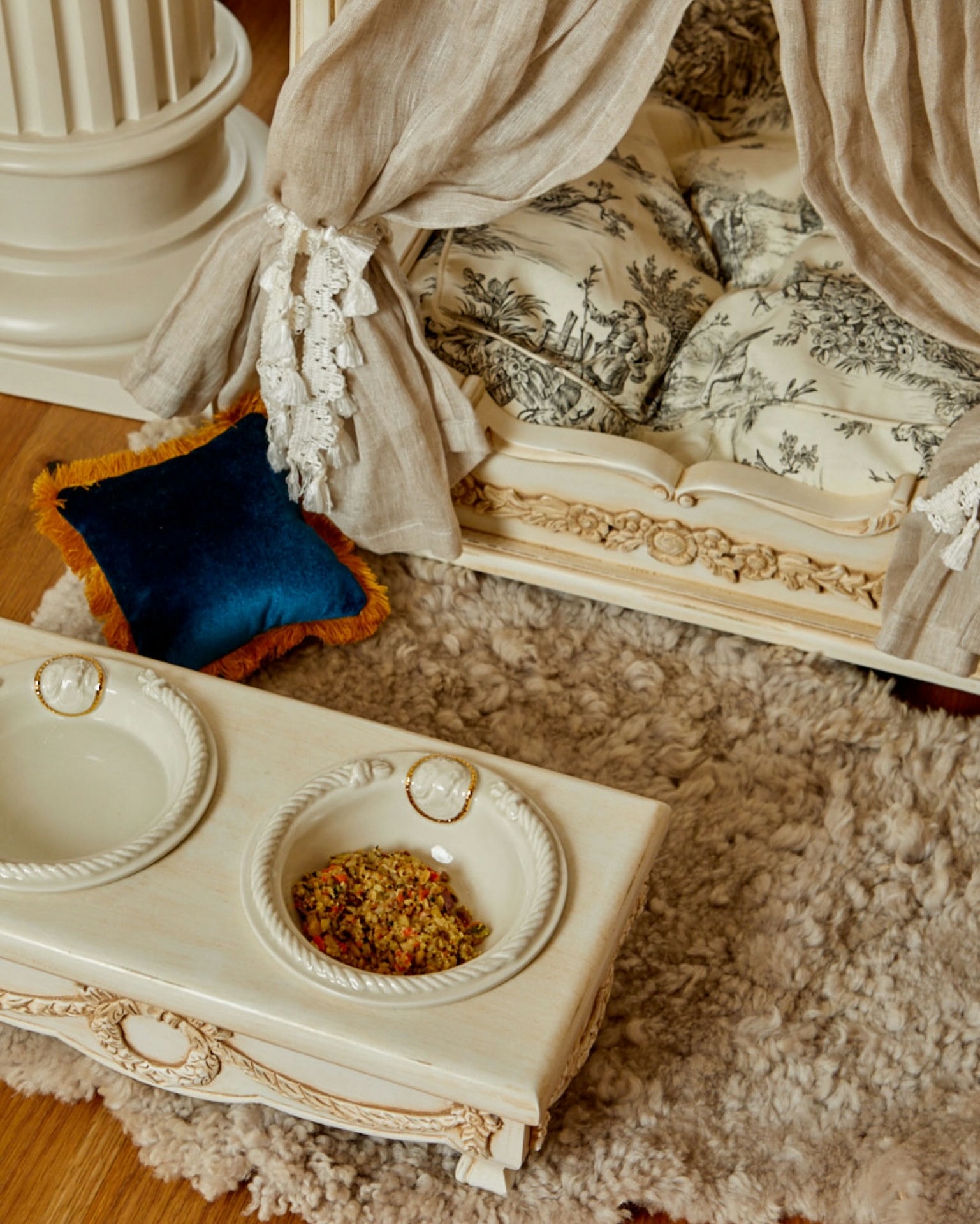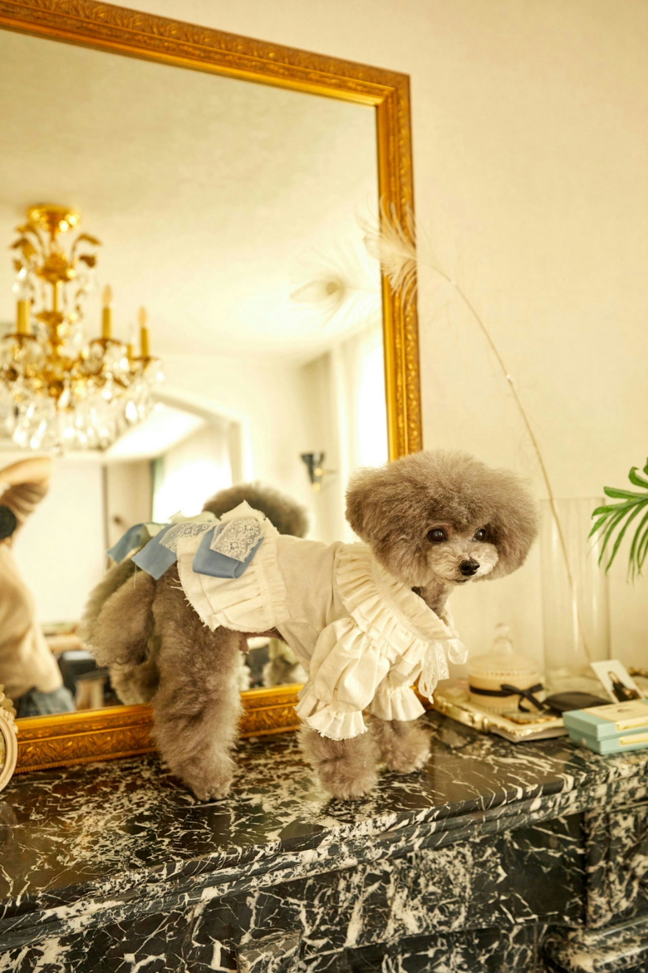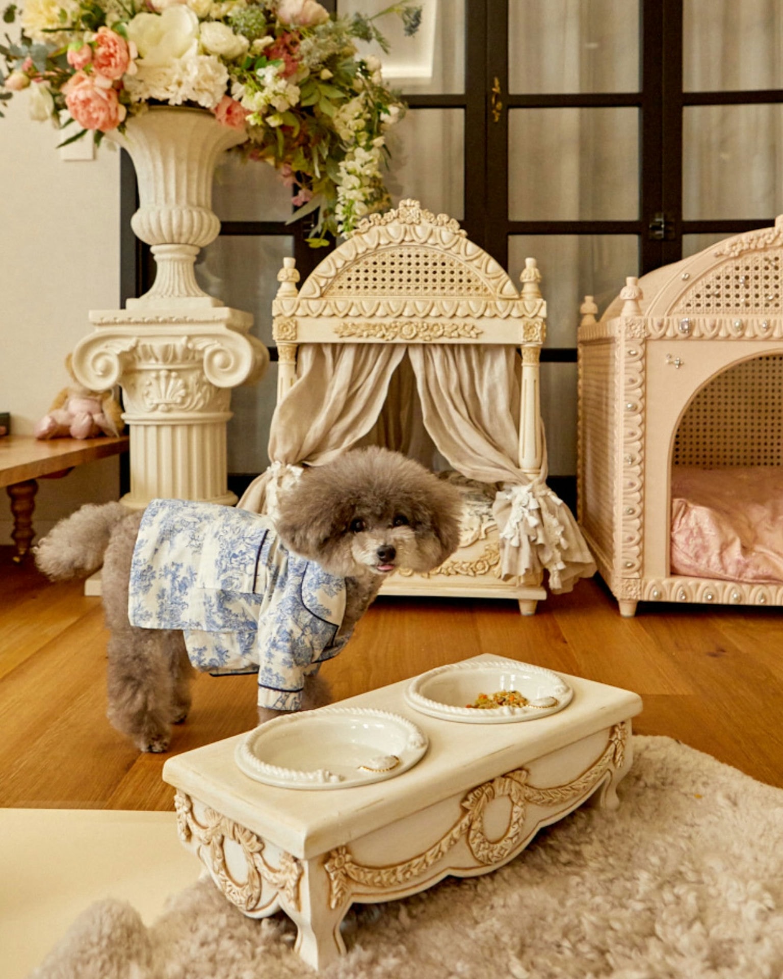 LIVING & FASHION┃LE SEIJI LE SEIJI┃르세이지 LE SEIJI(르세이지)는 반려동물을 위한 프렌치 스타일의 럭셔리 리빙 브랜드입니다. 그 시작은 가족 사진과 반려동물 사진을 기반으로 광고와 패션 화보를 제작해온 Seiji Studio에서 비롯되었습니다. 14세기부터 18세기까지 유럽 왕실의 도그 하우스에서 영감을 받아, LE SEIJI의 대표작인 르세이지 하우스가 탄생했습니다. 왕의 반려견이 머물던 집처럼 최고의 품질을 재현하고자 철저한 연구 끝에 전 세계 어디에도 없는 독창적인 하우스를 완성했습니다. LE SEIJI는 단순한 가구를 넘어, 반려동물과 가족이 조화롭게 살아가는 아름답고 풍요로운 라이프스타일을 제안합니다. 모든 제품은 클래식한 예술성과 현대적인 편안함을 담아내며, 프랑스 장인의 손길로 정교하게 완성되고, 자연을 존중하는 지속 가능한 소재로 만들어집니다. 소중한 반려동물과 함께하는 매일의 순간을 LE SEIJI와 함께 예술로 승화시켜보세요. Keywords LESEIJI 르세이지 반려동물 프렌치스타일 럭셔리리빙브랜드 유럽왕실 도그하우스 LeseijiHouse 르세이지하우스 DînerDeÉléonore 르세이지다이닝테이블 디네드엘레오노르 빈티지스타일 ToileDeJouyCushionCover 뜨왈드주이 쿠션커버 펜화풍경 고전적인감성 살롱아트 SalonArt MiniVelvetTassleCushion 미니벨벳태슬쿠션 RobeDeGenevieve 로브드제네비에브 나이트가운 ToileDeJouyPajama 뜨왈드주이파자마 “르세이지는 고급스럽고 세련된 프렌치 스타일을 바탕으로 편안함과 감각적인 디자인을 추구하는 프리미엄 하이엔드 브랜드입니다. 애견 리빙, 패션, 액세서리를 전문적으로 제작하며, 반려동물과 함께하는 일상을 더욱 럭셔리하게 만들어 드리는 것을 목표로 하고 있습니다. 르세이지의 모든 제품은 반려동물과 보호자 간의 유대감을 강화하고, 함께하는 즐거운 경험을 중요시하며 정성껏 제작되고 있습니다.”DÎNER DE ÉLÉONORE┃르세이지 다이닝 테이블 디네 드 엘레오노르 디네 드 엘레오노르는 르세이지 브랜드의 클래식 다이닝 테이블로, 조용한 아침 햇살 아래 정원의 작은 테이블에서 사랑스러운 친구와 함께 식사를 나누던 따스하고 우아한 풍경에서 영감을 받았습니다. 장인의 정교한 손길로 깎아낸 빈티지 스타일의 테이블과 손으로 직접 구운 프렌치 스타일의 도자기 식기가 한 쌍으로 구성되어 있습니다. 디네 드 엘레오노르는 르세이지 하우스, 아르무아 드 오렐리 클로젯과 함께 페어링하여 반려동물의 공간을 더욱 럭셔리하고 아름답게 꾸밀 수 있습니다. 네 가지 사랑스럽고 클래식한 디자인으로 준비된 도자기 식기는 반려동물의 식사 시간을 한층 우아하게 만들어 줄 것입니다. Size : Wood Table W 410mm x D 210mm x H 120mm 1.5kg Ceramic Bowl W 165mm x H 65mm 500gTOILE DE JOUY CUSHION COVER | 르세이지 뜨왈 드 주이 쿠션 커버 르세이지 하우스의 뜨왈 드 주이 쿠션 커버는 프랑스 본고장에서 수입한 정통 TOILE DE JOUY 패브릭으로 완성되었습니다. 18세기 유럽의 섬세한 펜화 풍경과 고전적인 감성이 어우러진 이 텍스타일 위에 르세이지만의 절제된 우아함을 더해 공간에 품격을 더합니다. 단순한 패브릭이 아닌 하나의 살롱 아트(SALON ART)로서, 르세이지 하우스와 완벽한 조화를 이루어 당신과 반려동물에게 가장 어울리는 특별한 패브릭 선택을 제안합니다.MINI VELVET TASSLE CUSHION | 르세이지 미니 벨벳 태슬 쿠션르세이지 미니 벨벳 태슬 쿠션은 르세이지 하우스를 위한 전용 액세서리 쿠션 시리즈입니다. 작지만 완벽하고 섬세한 감각으로 반려가족의 니즈를 반영했습니다. 15cm 정사각형의 아담한 크기로 반려동물의 목을 편안하게 받쳐주는 최적의 높이와 푹신함을 선사합니다. 벨벳 소재와 태슬 디테일이 르세이지 하우스와 완벽하게 어우러지며, 8가지 감각적인 컬러로 공간에 세련된 포인트를 더합니다.ROBE DE GENEVIEVE┃르세이지 드레스 로브 드 제네비에브르세이지의 로브 드 제네비에브는 17~19세기 프랑스 왕실과 귀족들이 사랑한 나이트 가운에서 영감을 받아 제작된 독특한 린넨 드레스입니다. 반려견에게 고귀하고 우아한 외모를 선사하는 이 드레스는, 전통적인 기법으로 손수 세심하게 주름과 화려한 프릴을 완성하여 마치 예술 작품과 같은 가치를 더합니다. 프랑스에서 수입한 최고급 레이스 리본은 세련된 감각을 더하며, 내추럴한 린넨 소재가 반려견의 피부를 부드럽고 편안하게 감싸줍니다. 로브 드 제네비에브는 특별한 날뿐만 아니라 일상 속에서도 반려견의 매일을 더욱 특별하고 우아하게 만들어 줍니다.Size : S / M / LTOILE DE JOUY PAJAMA┃르세이지 뜨왈드주이 파자마 최고급 프랑스 패브릭으로 만들어 클래식한 뜨왈 드 주이(Toile de Jouy) 패턴이 돋보이는 르세이지의 반려견용 파자마입니다. 고전미와 세련미를 동시에 선사하며 편안한 착용감과 우아한 실루엣이 돋보입니다. 또왈 드 주이 파자마 오리지널(Original)은 그레이, 블루, 레드 세 가지 컬러와 S, M, L 세 가지 사이즈로 구성되어 있으며, 목이 길고 가슴둘레가 작은 체형의 반려견에게 잘 맞습니다. 싱글 카라, 노포켓, 라운드형 등끝단 디자인으로 간결하고 깔끔한 스타일입니다. 또왈 드 주이 파자마 베르시옹 레뒤트(Version Réduite)는 
