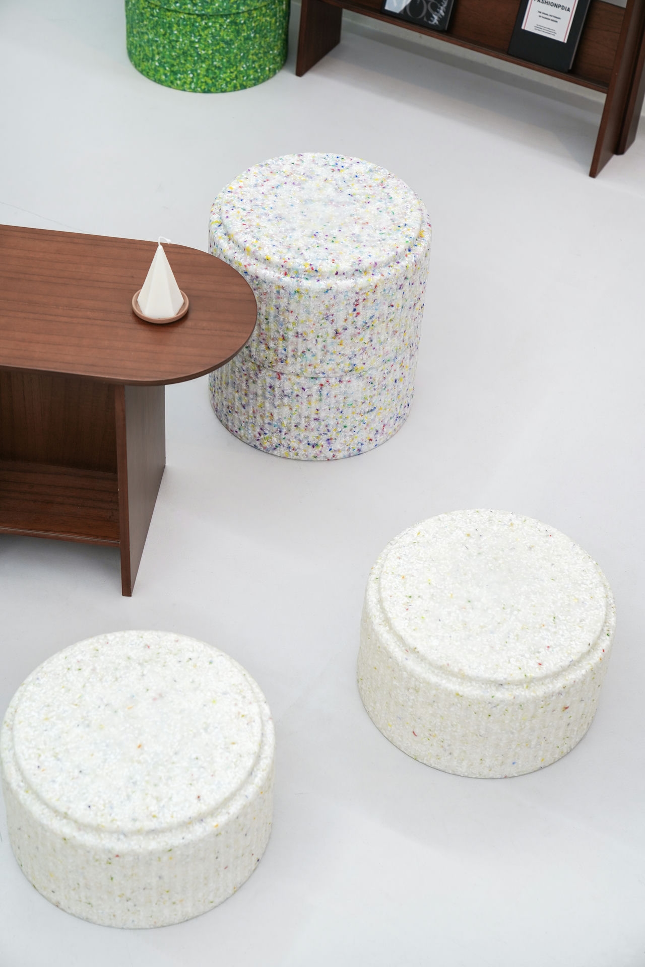 Projects #1┃Lowlit Collective LOWLIT COLLECTIVE┃로우리트 콜렉티브 로우리트 콜렉티브는 버려진 플라스틱, 특히 선별장에서 재활용되지 못한 작은 병뚜껑 같은 ‘티끌 플라스틱’을 활용하여 새로운 가치를 창출하는 리퍼포징(Repurposing) 스튜디오입니다. '레스 플라스틱(Less Plastic)', '로컬 커뮤니티(Local Community)', '롱 라이프 디자인(Long-Life Design)'이라는 세 가지 핵심 철학을 바탕으로, 폐플라스틱을 대안적인 인테리어 자재, 가구, 홈리빙 제품, 오브제 등으로 리퍼포징하며 지속 가능한 순환 구조를 구축하고자 합니다. 로우리트 콜렉티브는 버려지는 것에서 가치를 찾아 얼핏 동떨어진 점들을 연결하며 뜻밖의 페어링을 선보이며, 사용자가 유대감을 맺을 수 있는 고유한 제품으로 재구성합니다. 또한, 현대미술 작가와 산업 디자이너의 협업 및 지역사회와의 플라스틱 수거/분류 협력을 통해 제품의 시각적 매력과 독창성을 강조하고, 소비자 라이프스타일에 새로운 가치를 부여합니다. Keywords LowlitCollective 로우리트콜렉티브 일생에서시작하는의미있는변화 재활용플라스틱 병뚜껑 티끌플라스틱 리퍼포징스튜디오 Repurposing 새로운가치 순환경제 VentAgeChandelier 벤트에이지샹들리에 VeccaSeries 베카시리즈 TaesanBench 태산벤치 RestInPiecesChair 레스트인피스체어 CappieBlock 캐피블럭 “로우리트 콜렉티브는 '일생에서 시작하는 의미 있는 변화'를 통해 버려지는 물질에 새로운 삶을 부여합니다. 공간과 물질을 탐구하며 팝업, 설치미술, 건축적 실험으로 새로운 공간 경험을 제안합니다. 공예적 시선으로 재료의 물성을 재치 있게 사용하며 생명력 있고 인간적인 공간을 만드는 데 주력합니다.”CAPPIE BLOCK┃캐피 블럭CAPPIE BLOCK은 100% 재활용 플라스틱으로 만든 조립형 모듈 가구입니다. 다양한 브랜드 공간에서 테이블, 스툴, 진열대, 의자로 반복 사용할 수 있으며, 폐자원 수거부터 제작, 설치까지 완결형 솔루션을 통해 의미 있는 공간으로 전환을 경험할 수 있습니다. 올해 CAPPIE BLOCK은 한국디자인진흥원 굿디자인어워드 선정작으로 뽑혔으며, 리빙디자인페어와 더메종에서 완판을 기록하며 그 가치를 입증했습니다. 플라스틱 병뚜껑 형태를 본따 100% 폐 플라스틱으로 제작된 이 모듈 블록은 여러 층을 쌓아 올림으로써 커피 테이블부터 스툴, 전시대에 이르기까지 다양한 공간 구성이 가능합니다. Size(mm) : W 404 x D 404 x H 230 / 3.05kg병뚜껑 2,000개로 만든 블록 하나에는 수많은 손길이 깃든 이야기가 담겨 있습니다. 가볍고 견고하며, 브랜드의 개성을 담아낼 수도 있습니다. 다양한 색상과 패턴, 원하는 조합으로 커스터마이징이 가능해 공간과 캠페인 콘셉트에 맞춰 유연하게 활용됩니다. 툭 놓기만 해도 공간을 바꾸고, 쌓아두면 오브제처럼, 필요할 땐 든든한 가구로 공간에 리듬을 더하는 모듈형 블록 가구, CAPPIE BLOCK을 지금 만나보세요!VENT-AGE CHANDELIER┃벤트에이지 샹들리에VENT-AGE는 로우리트 콜렉티브가 폐기된 볼보 자동차 부품과 재활용 플라스틱 소재로 제작한 샹들리에입니다. 소재가 주는 산업적이고 현대적인 느낌과 대조적으로, 샹들리에의 본체는 정교한 목공예 기법을 통해 클래식한 곡선을 표현한 것이 특징입니다. VENT-AGE는 신선함, 모던함, 빈티지, 클래식 요소를 예술적으로 결합하여, 재활용과 지속 가능성을 추구하는 로우리트의 철학을 공간에 구현하며 독특한 조명 경험을 선사합니다.VECCA SERIES┃베카 시리즈LA 기반 디자이너 앤디박과 협업한 VECCA는 전 세계에서 볼 수 있는 고대 거석 구조물인 고인돌에서 영감을 받아 탄생한 가구 시리즈입니다. VECCA의 디자인은 고인돌의 시대를 초월하는 기념비적인 특성을 담아내는 동시에, 현대적이고 지속 가능한 재활용 플라스틱 소재를 적극적으로 활용했습니다. VECCA 가구의 다리는 상판의 무게를 우아하고 안정적으로 지지하며, 전체적인 균형과 조화를 이끌어냅니다. 특히 U자형 다리는 고인돌과 고전 그리스 건축을 연상시키는 독특하면서도 현대적인 실루엣을 연출합니다. 이처럼 전통과 현대 요소를 결합한 VECCA는 오래된 것에 새로운 생명과 목적을 부여한다는 철학을 반영합니다.TAESAN BENCH┃태산 벤치TAESAN 벤치는 로우리트 콜렉티브의 스트리트 가구 시리즈 중 첫 작품으로, 2023년 iF 디자인 어워드 공공디자인 부문에서 본상을 수상했습니다. 이 벤치는 순환 경제의 담론을 일상생활에 접목하고, 지속가능성을 위한 협력과 노력을 장려하는 접점을 만들고자 디자인되었습니다. 디자인은 한국의 산세와 전통 수묵화에서 영감을 받았습니다. '티끌 모아 태산'이라는 속담처럼, 재활용되지 않는 작은 티끌 플라스틱 조각들이 모여 거대한 산을 이루는 모습에서 상징성을 도출했습니다. 수묵화의 담대한 붓 터치로 표현된 북한산의 풍경을 그라데이션 회색 계층과 상단의 화강암 시트로 재해석하여 벤치에 구현했습니다. 청계천 일대에 10대의 태산 벤치가 설치되어 있으니, 그 특별함을 직접 확인해 보실 수 있습니다.REST IN PIECES CHAIR┃레스트 인 피스 체어REST IN PIECES 체어는 건설 현장과 가정에서 흔히 폐기되는 풀 스레드 볼트와 플라스틱을 활용하여 제작된 독창적인 의자입
